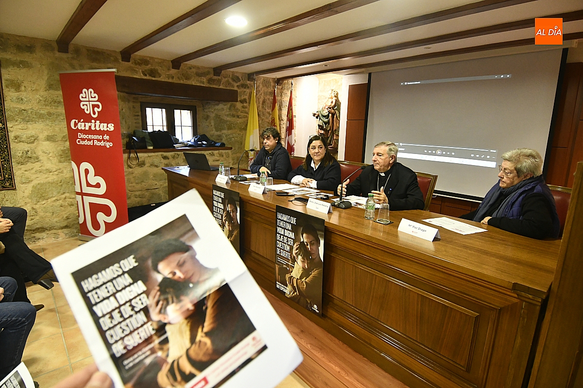 Cáritas Diocesana de Ciudad Rodrigo presentó en la mañana del jueves su campaña de Navidad bajo el lema “Hagamos que tener una vida digna deje de ser cuestión de suerte”. El acto contó con la participación del obispo de Ciudad Rodrigo–Salamanca, José Luis Retana; la directora de Cáritas Ciudad Rodrigo, María del Mar Manzano; el secretario de la entidad, Domingo Matías, y la delegada episcopal, María Paz Diago.