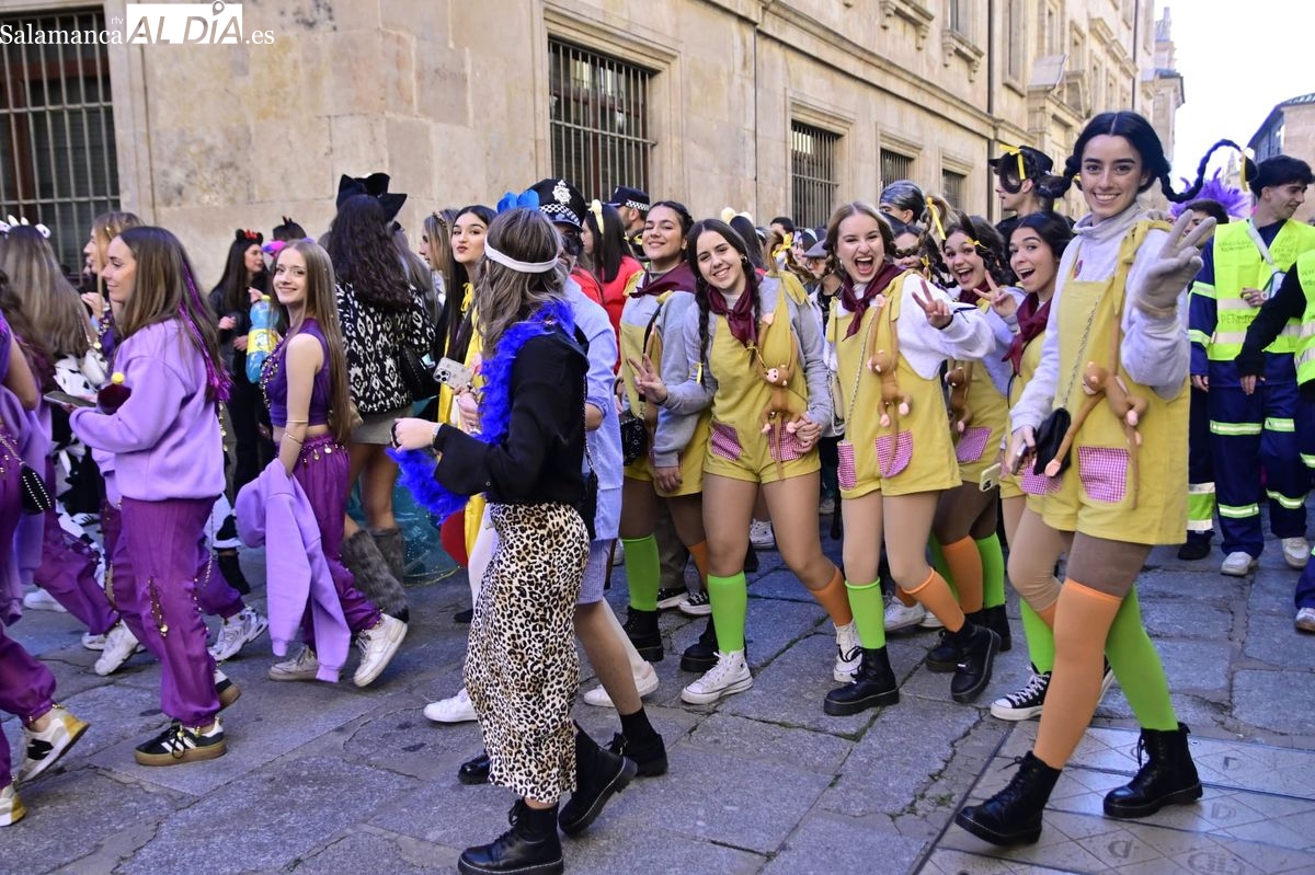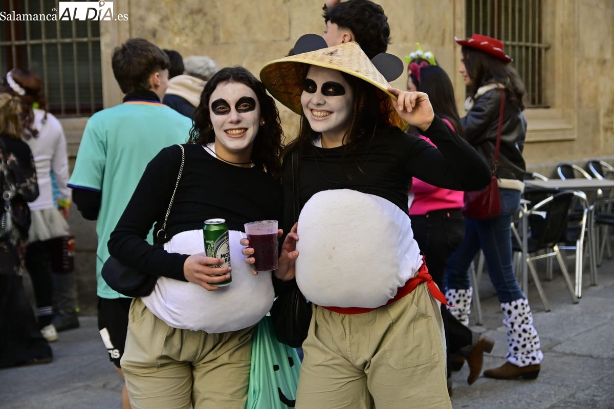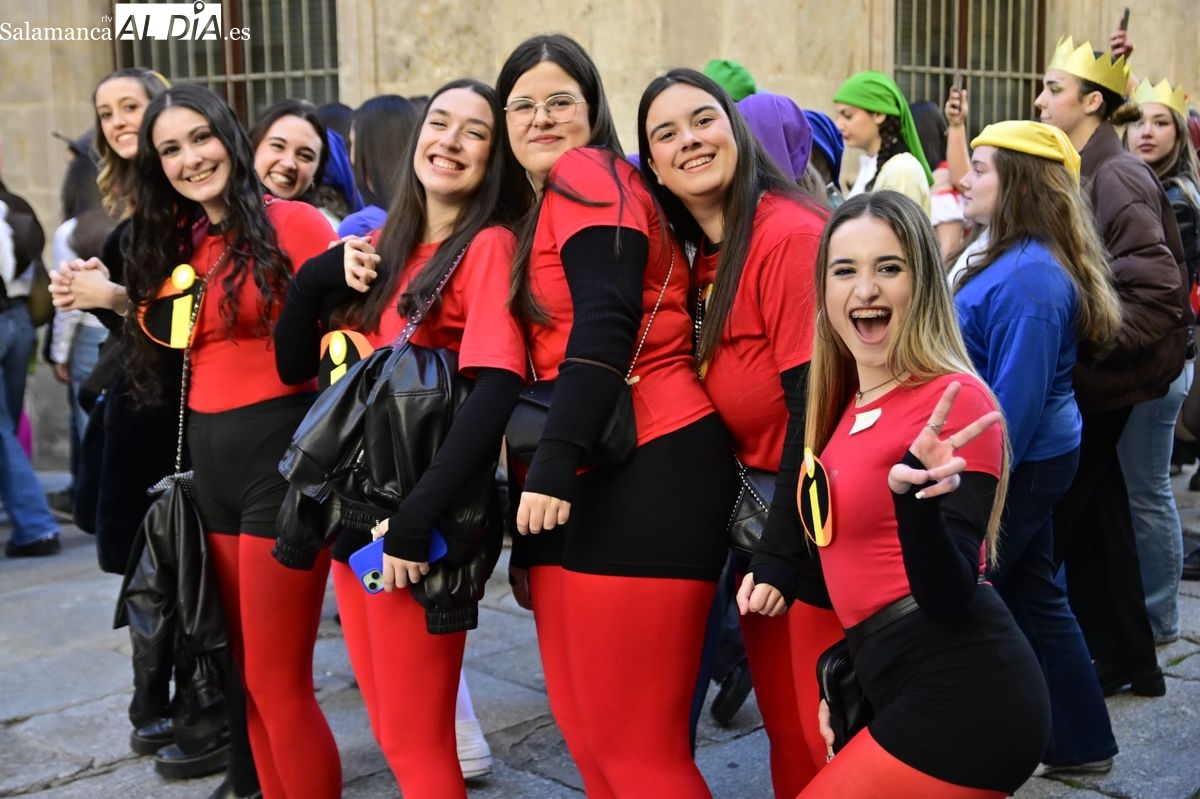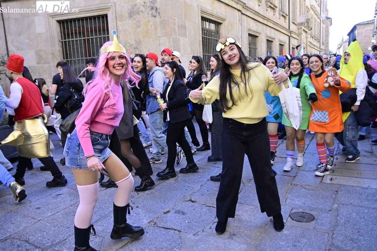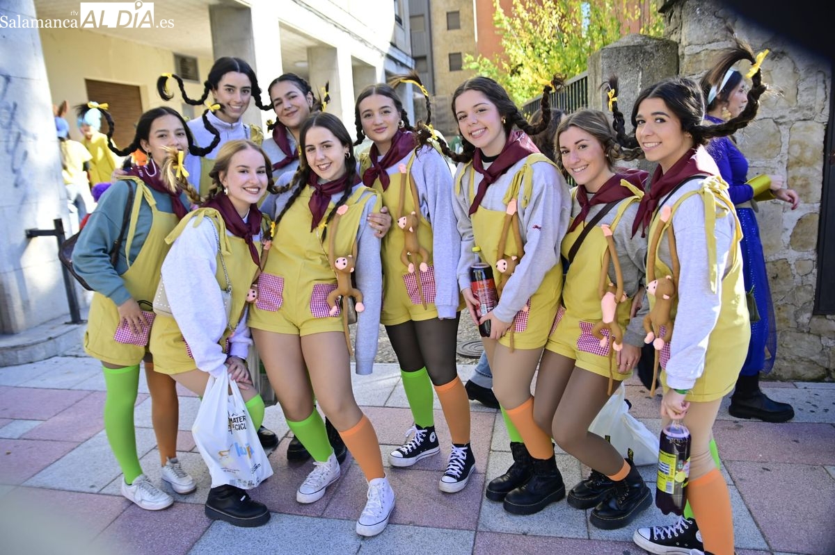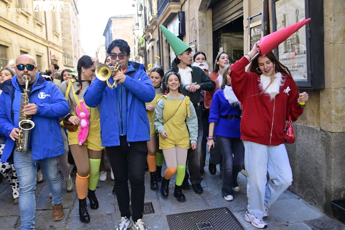 Los estudiantes de la Facultad de Educación de la Universidad de Salamanca (USAL) han celebrado hoy la jornada principal de sus festividades universitarias. El ambiente festivo se ha trasladado desde las aulas hasta las calles del casco histórico, donde grupos de alumnos han protagonizado el tradicional recorrido acompañados por la música de una charanga y ataviados con disfraces de diversas temáticas.