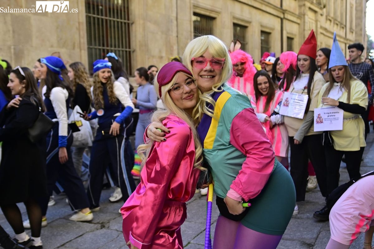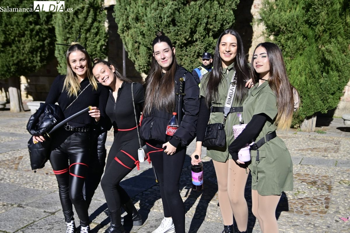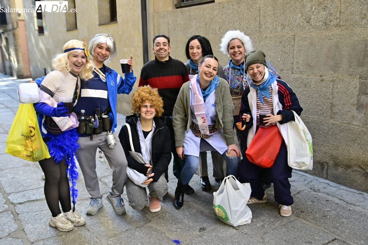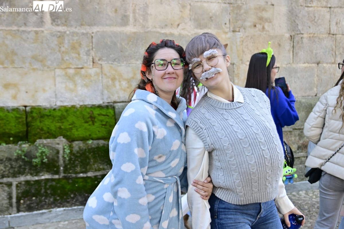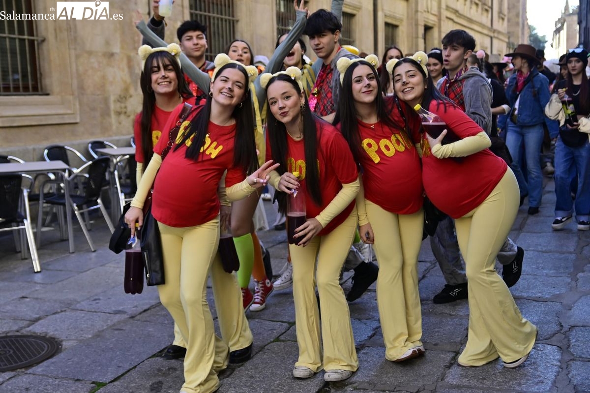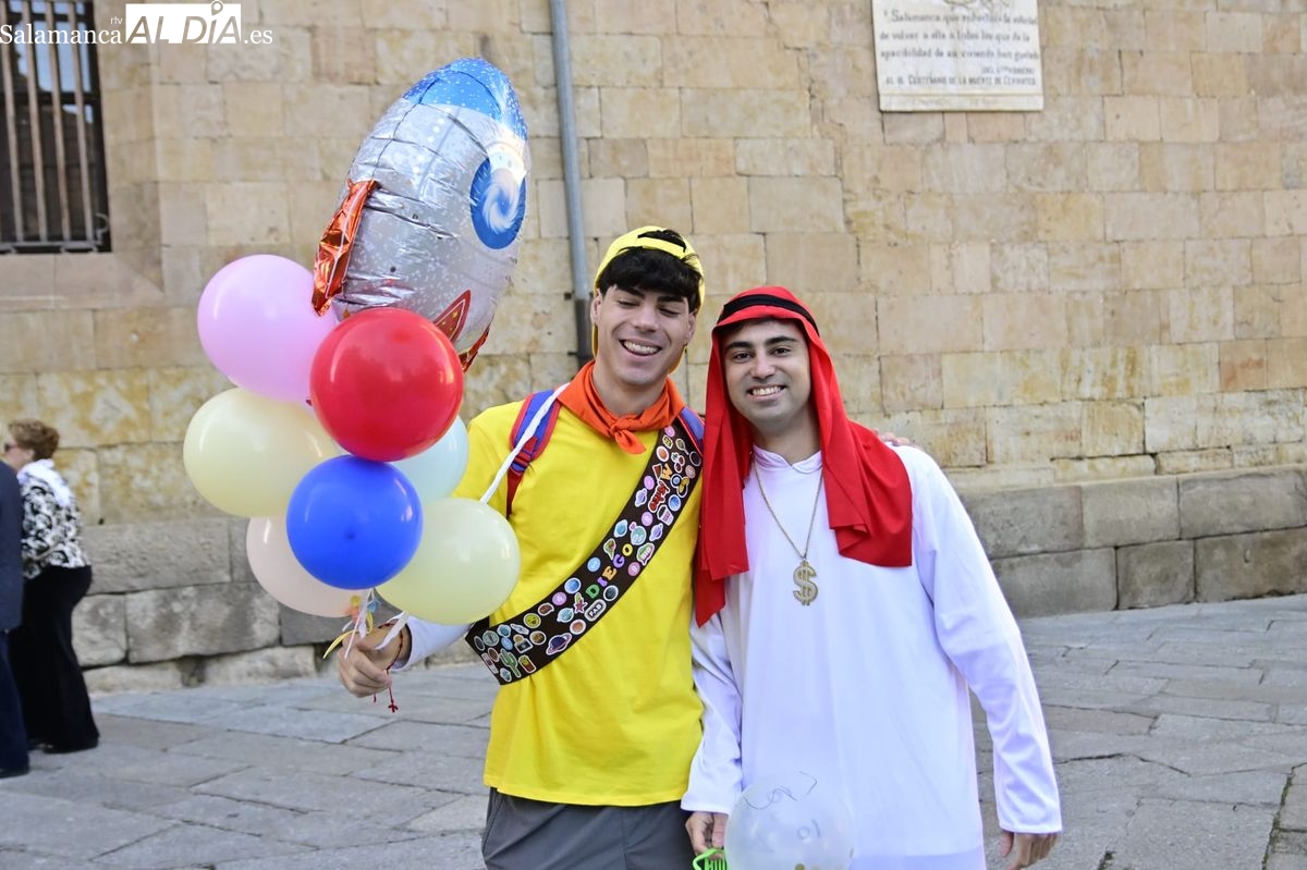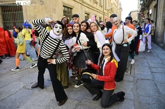 Los estudiantes de la Facultad de Educación de la Universidad de Salamanca (USAL) han celebrado hoy la jornada principal de sus festividades universitarias. El ambiente festivo se ha trasladado desde las aulas hasta las calles del casco histórico, donde grupos de alumnos han protagonizado el tradicional recorrido acompañados por la música de una charanga y ataviados con disfraces de diversas temáticas.