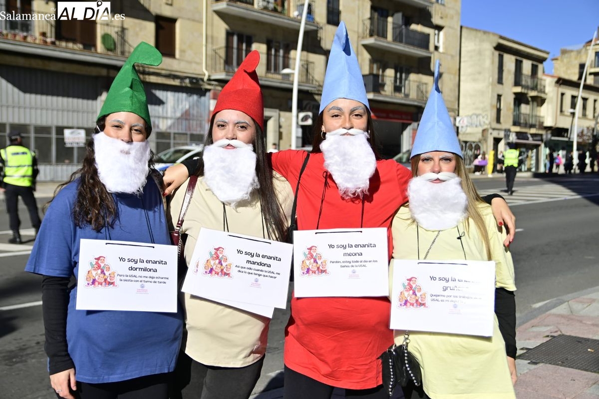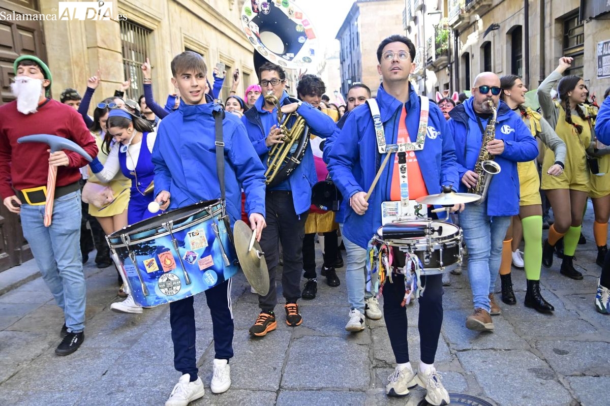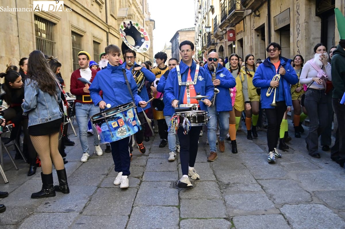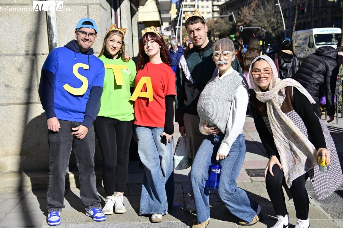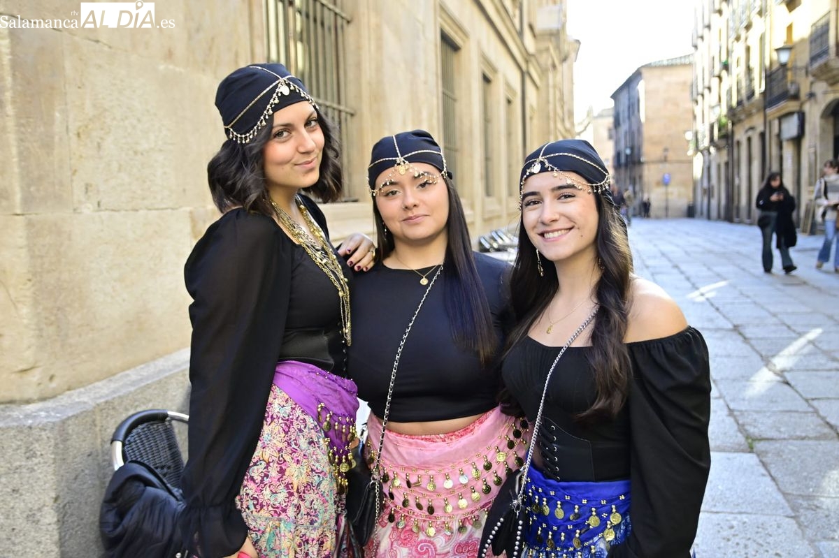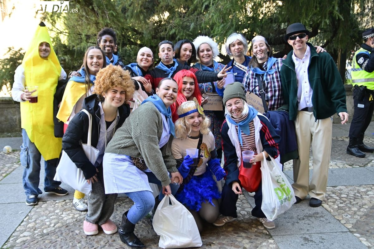 Los estudiantes de la Facultad de Educación de la Universidad de Salamanca (USAL) han celebrado hoy la jornada principal de sus festividades universitarias. El ambiente festivo se ha trasladado desde las aulas hasta las calles del casco histórico, donde grupos de alumnos han protagonizado el tradicional recorrido acompañados por la música de una charanga y ataviados con disfraces de diversas temáticas.