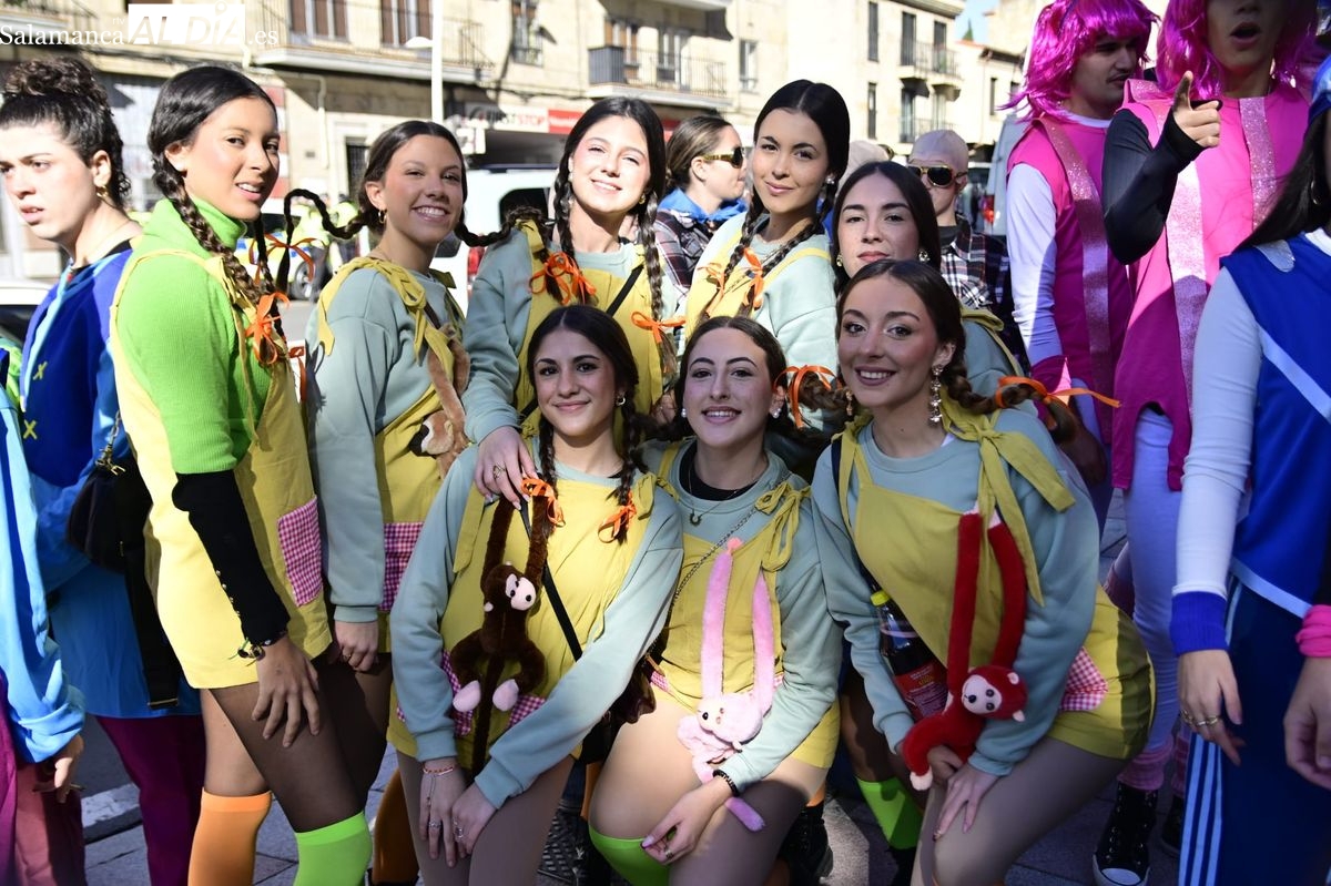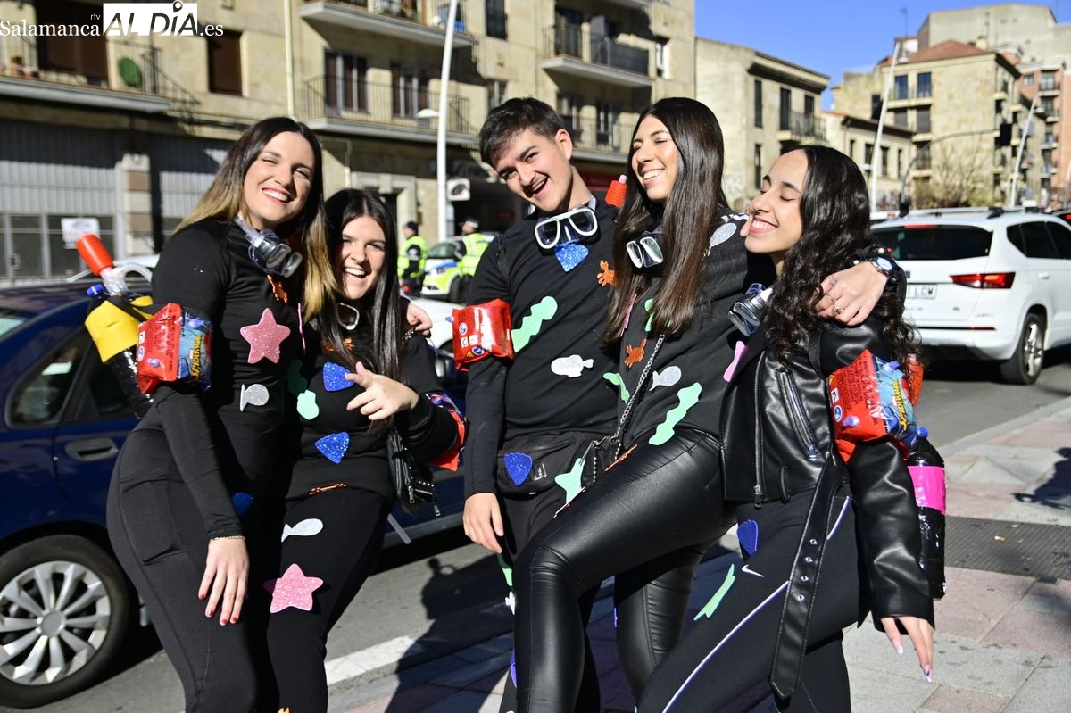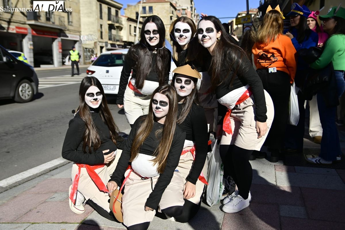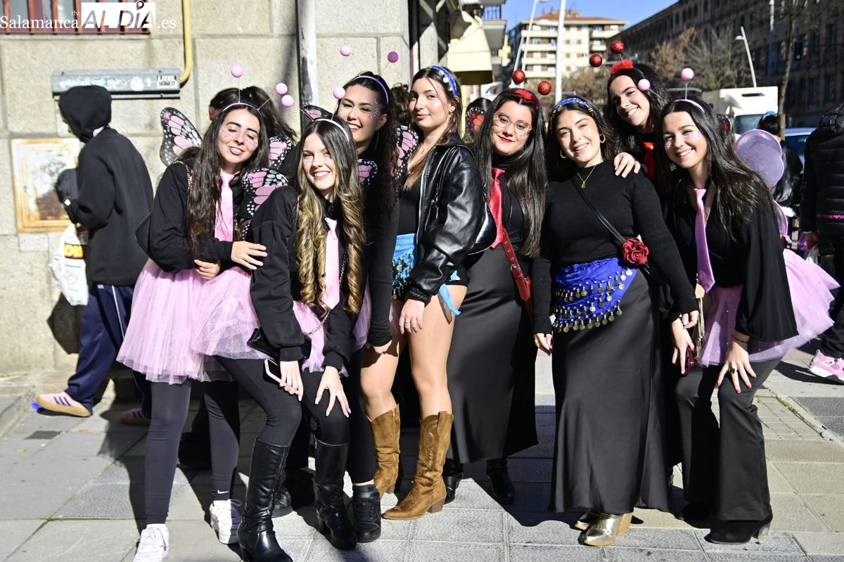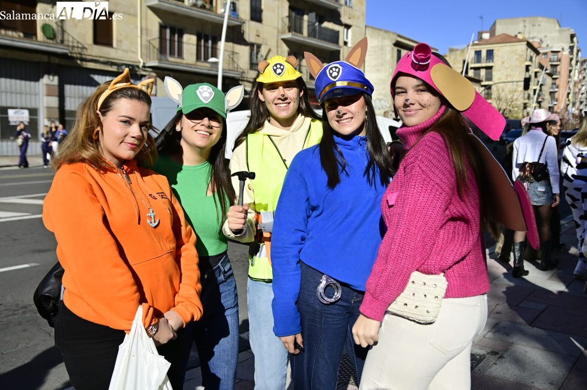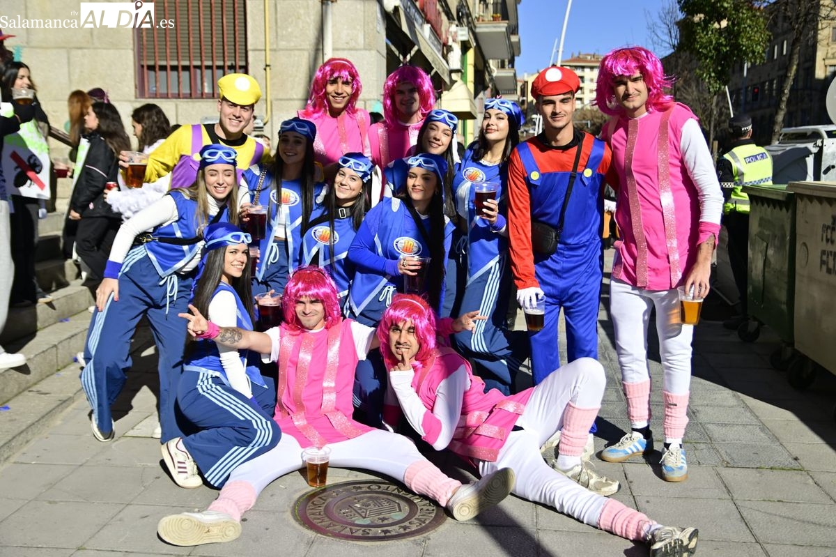 Los estudiantes de la Facultad de Educación de la Universidad de Salamanca (USAL) han celebrado hoy la jornada principal de sus festividades universitarias. El ambiente festivo se ha trasladado desde las aulas hasta las calles del casco histórico, donde grupos de alumnos han protagonizado el tradicional recorrido acompañados por la música de una charanga y ataviados con disfraces de diversas temáticas.