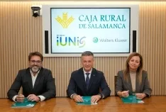La firma del convenio ha tenido lugar en la sede de la entidad salmantina y ha contado con la participación del director comercial de Caja Rural de Salamanca, Carlos Marino Pérez; el director general de Management de Wolters Kluwer Tax & Accounting España, David Ollé; y la CO-CEO de iUNiS Digital Group, Alicia Rodríguez.