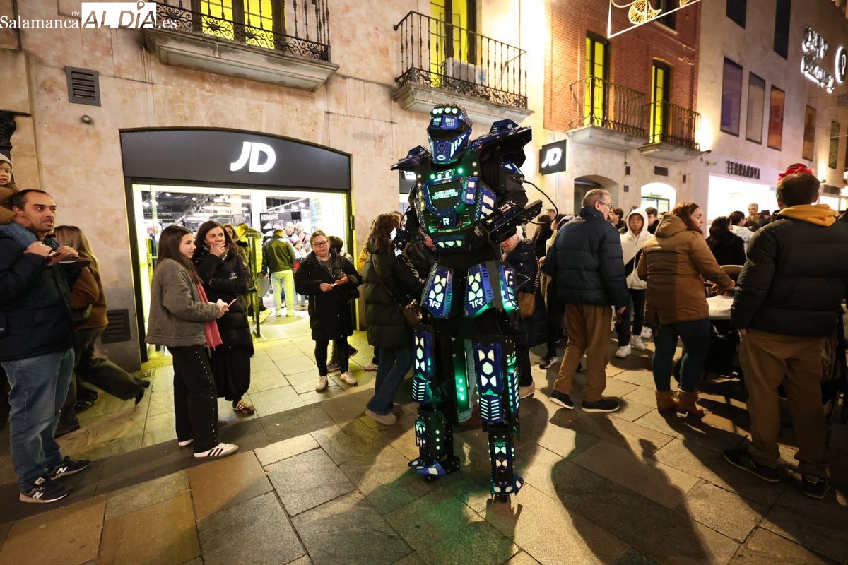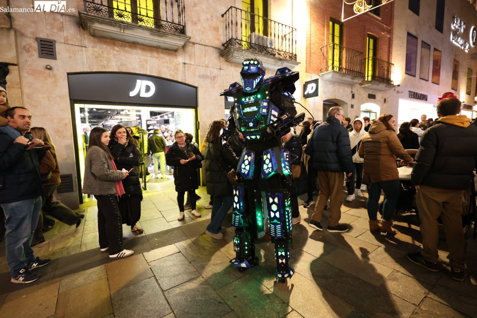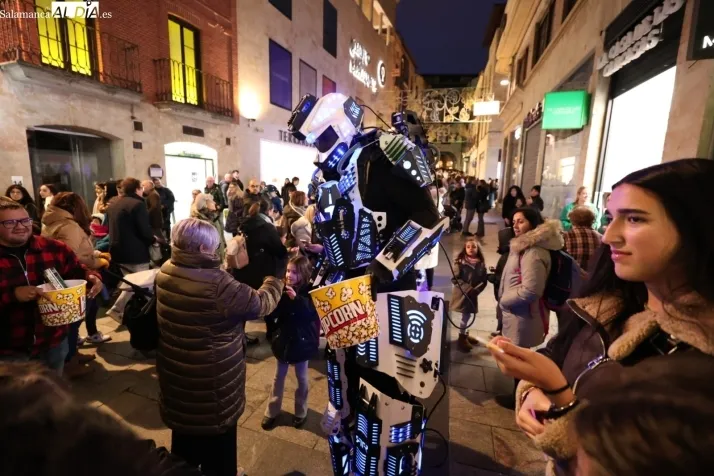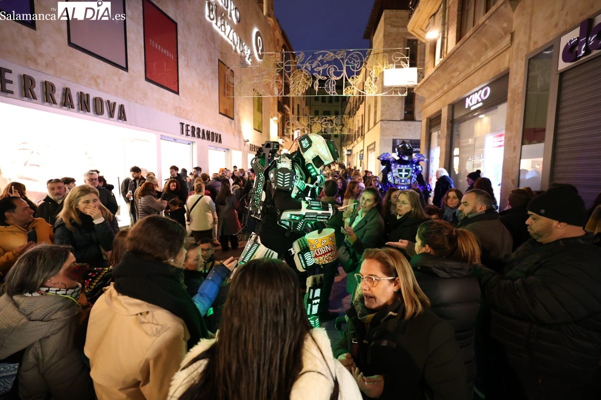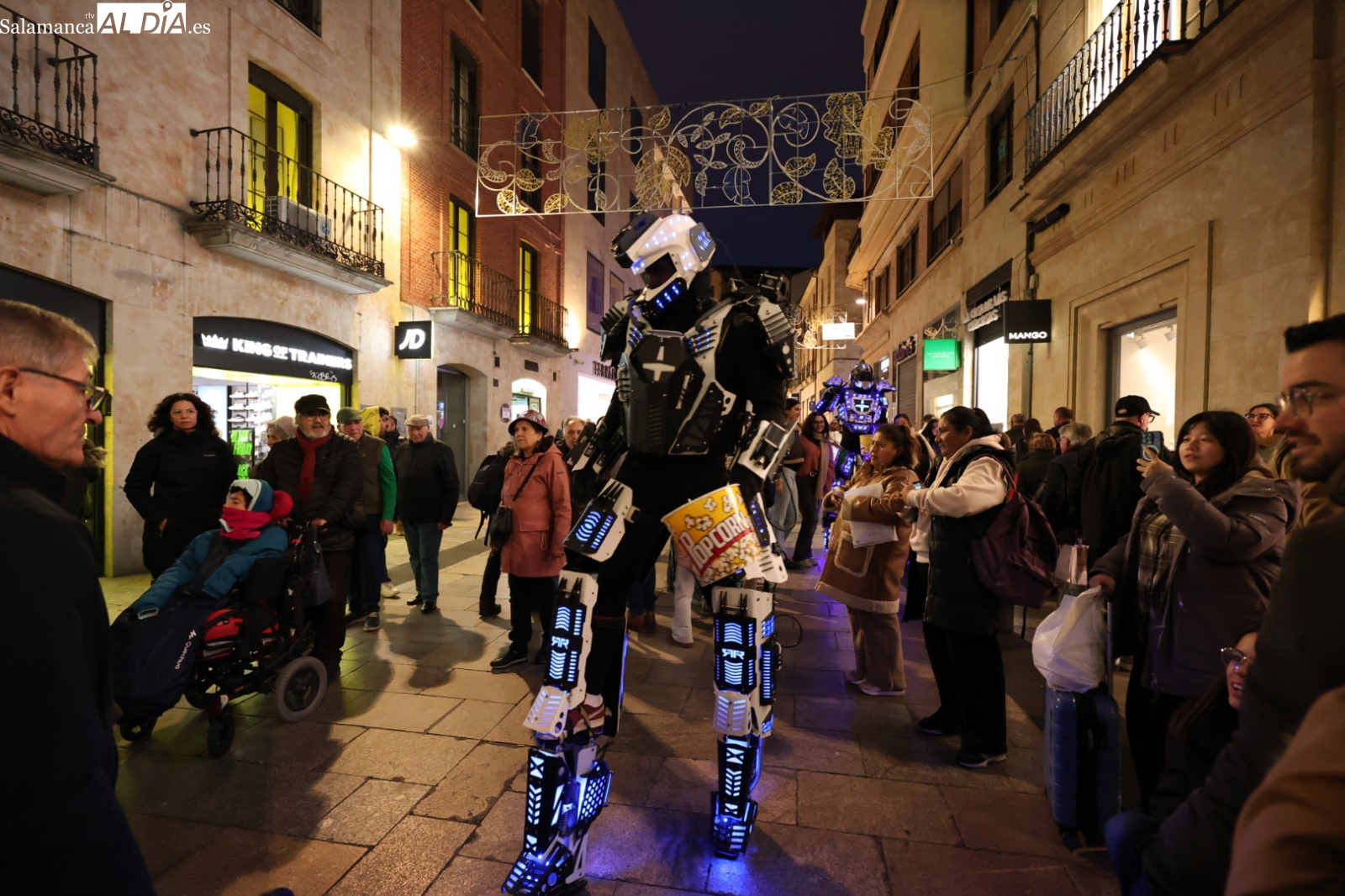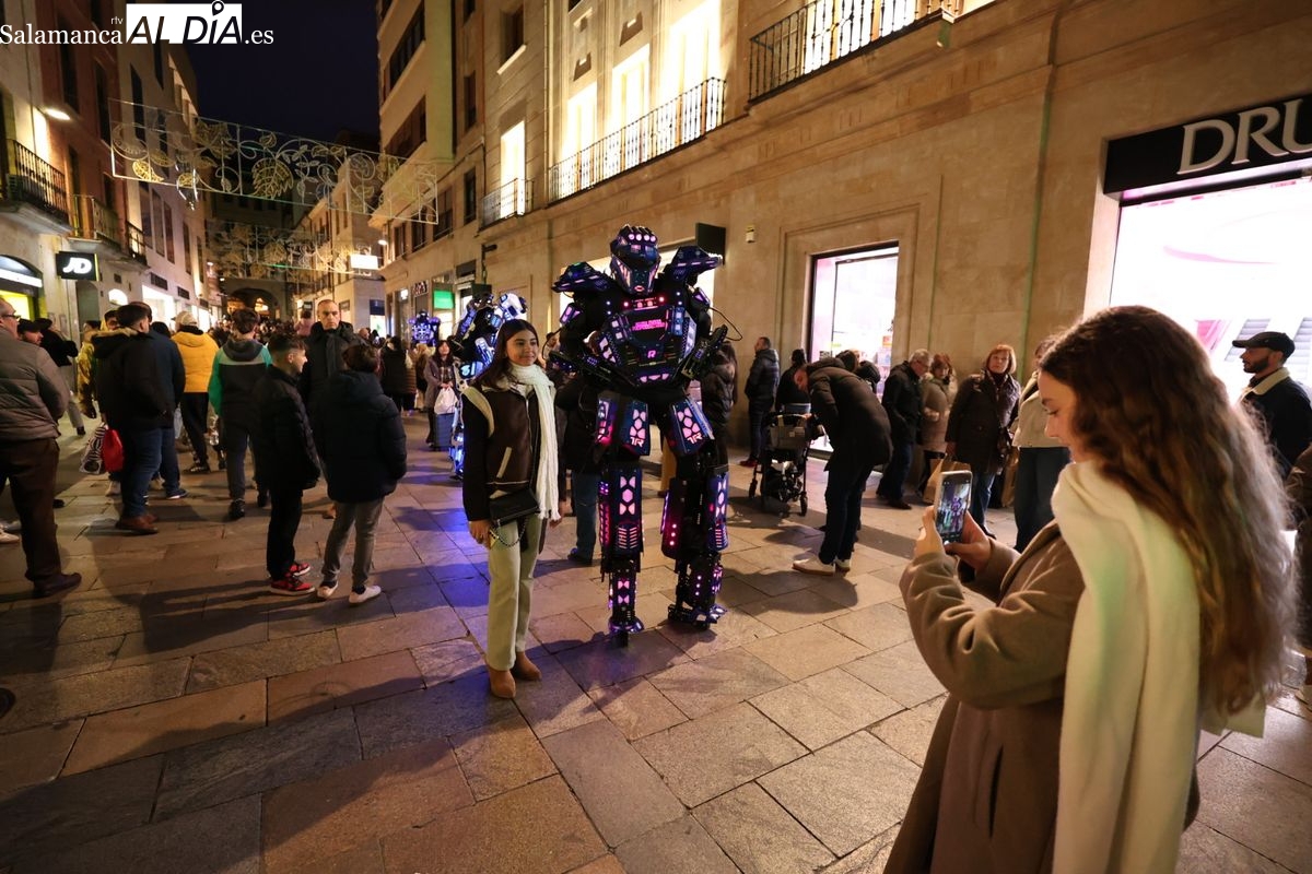 Las calles más céntricas de la capital del Tormes han acogido una actividad de dinamización diseñada para incentivar las compras y aportar color al ambiente urbano. Se trata de un pasacalles protagonizado por robots con tecnología LED, una propuesta visual que recorrerá los principales ejes comerciales y turísticos de Salamanca.