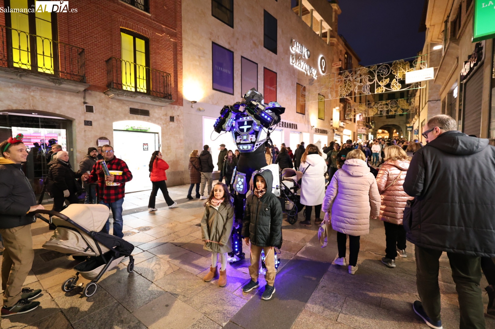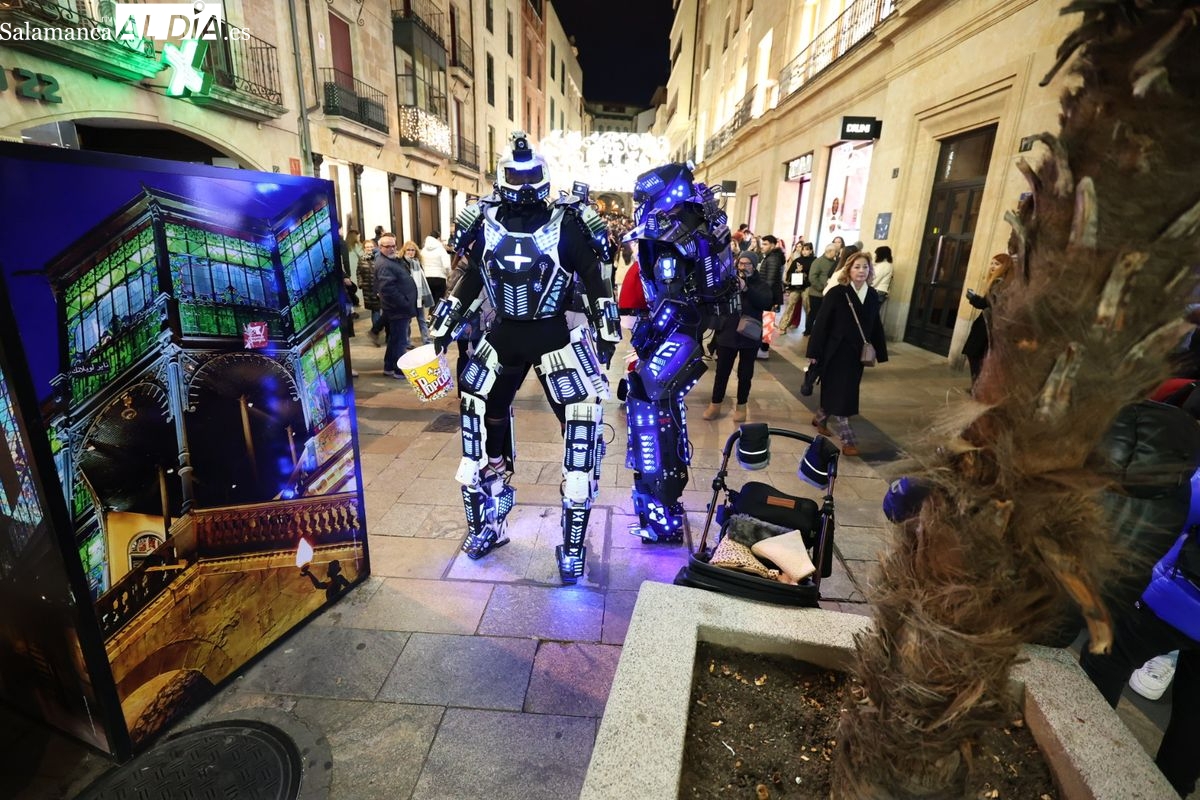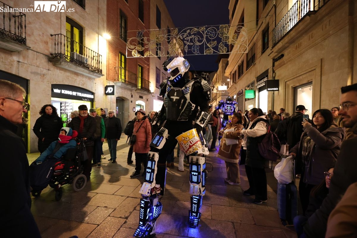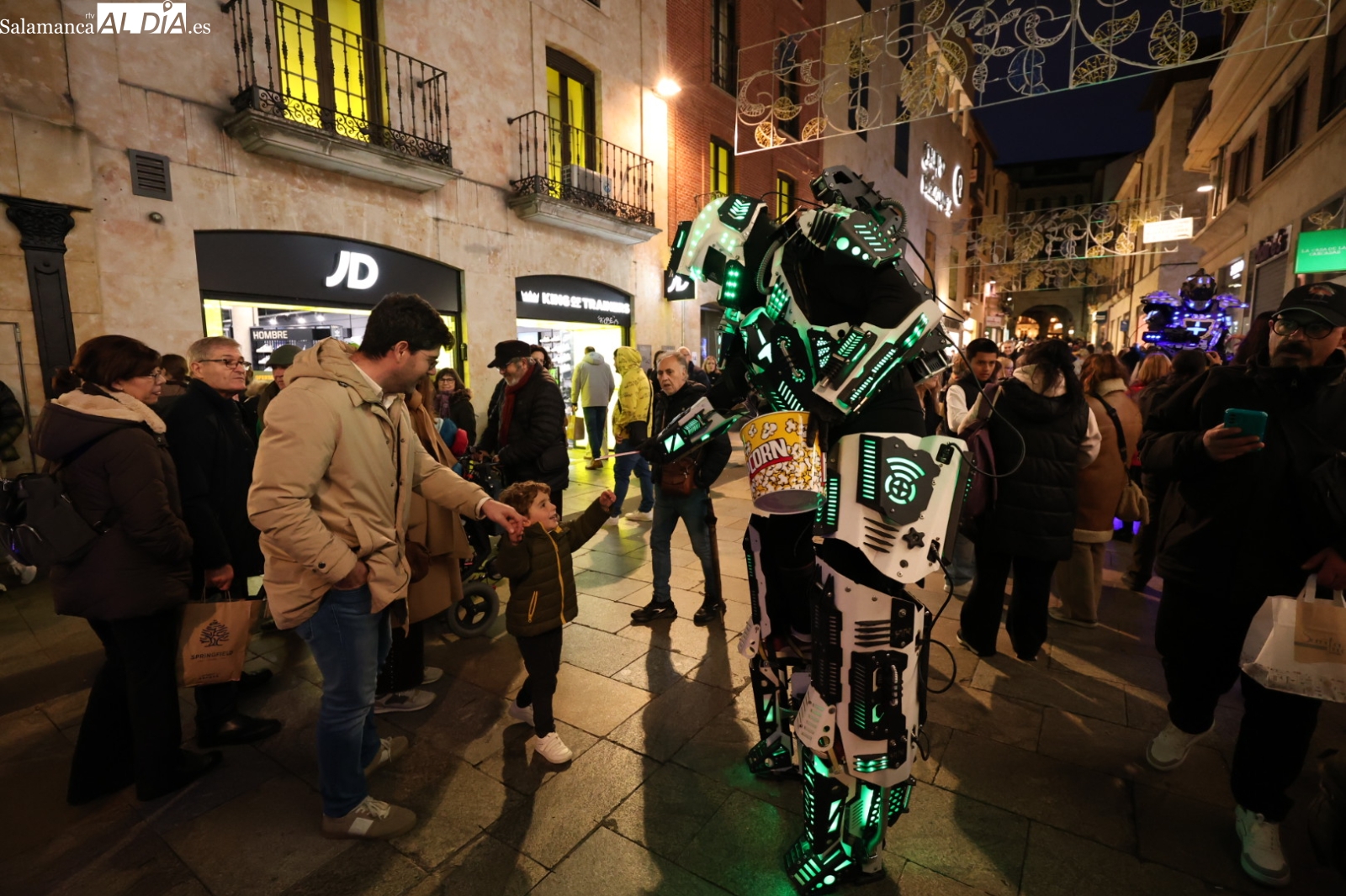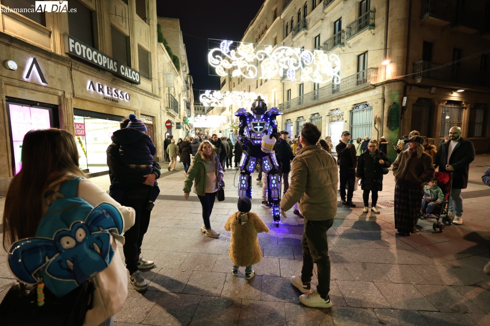 Las calles más céntricas de la capital del Tormes han acogido una actividad de dinamización diseñada para incentivar las compras y aportar color al ambiente urbano. Se trata de un pasacalles protagonizado por robots con tecnología LED, una propuesta visual que recorrerá los principales ejes comerciales y turísticos de Salamanca.