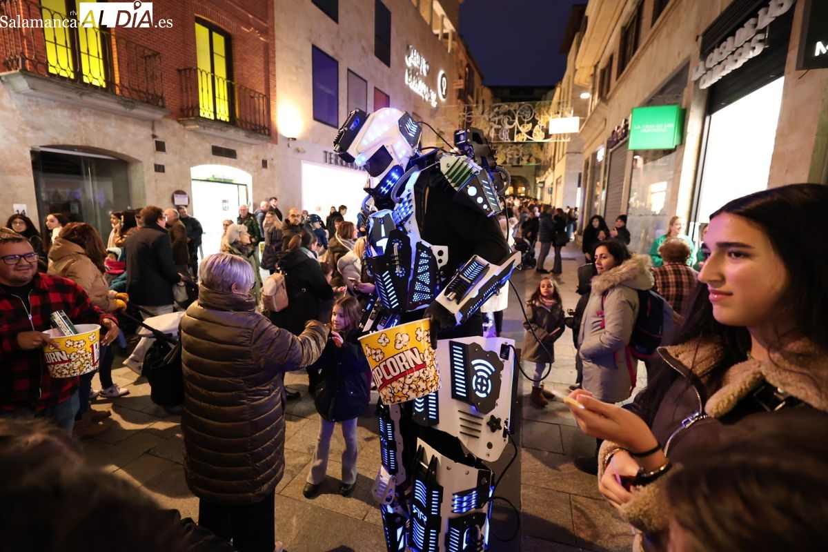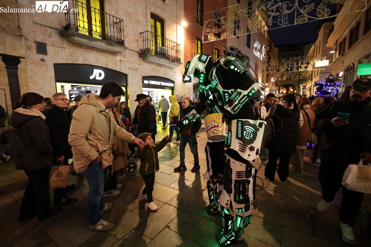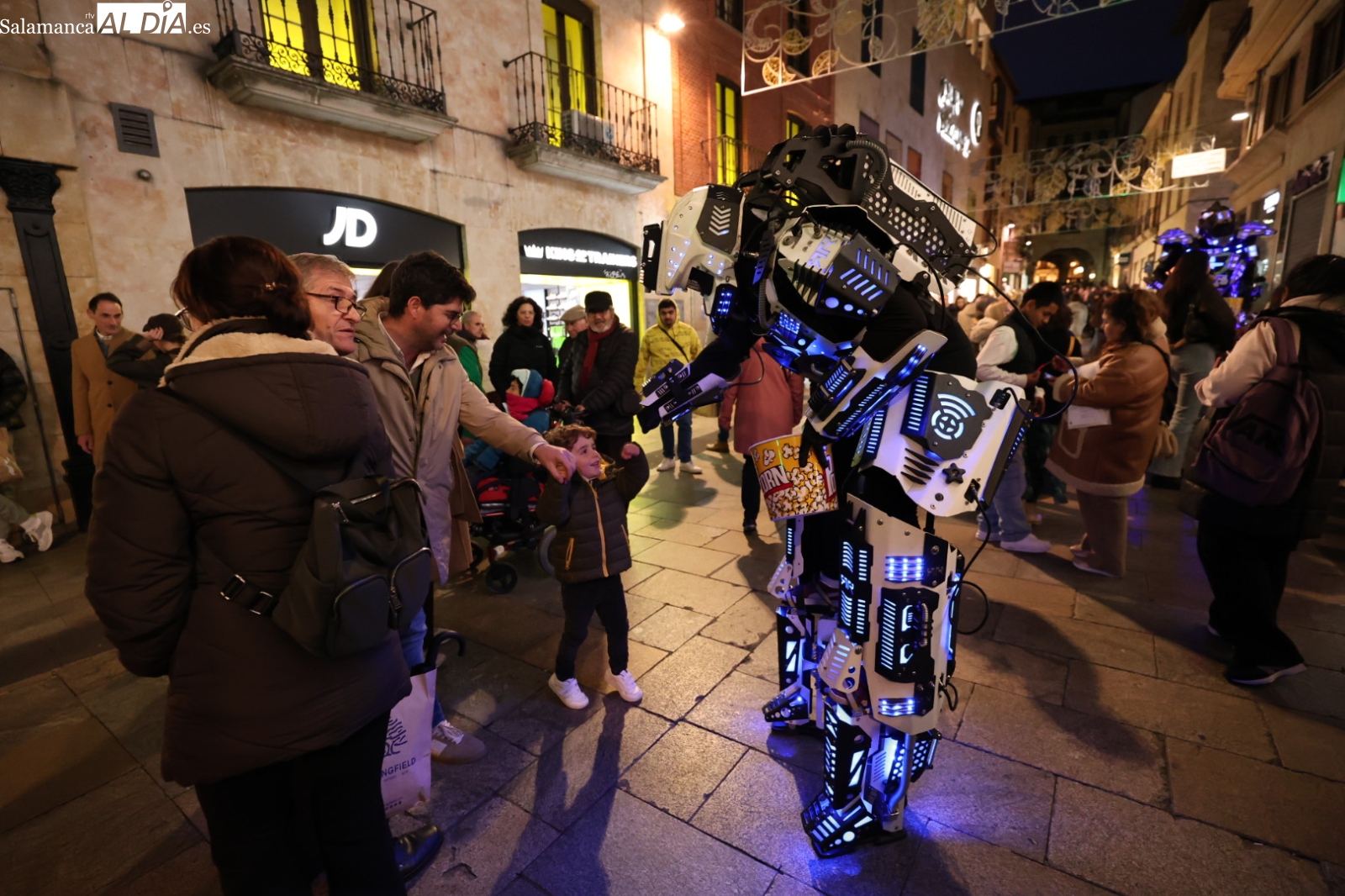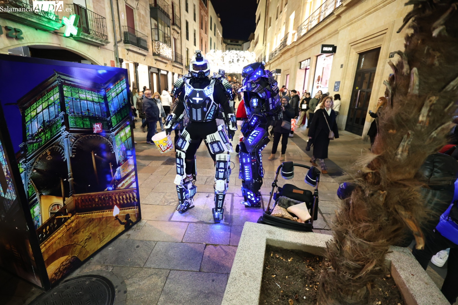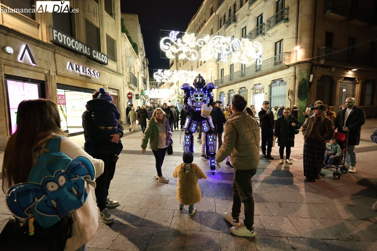 Las calles más céntricas de la capital del Tormes han acogido una actividad de dinamización diseñada para incentivar las compras y aportar color al ambiente urbano. Se trata de un pasacalles protagonizado por robots con tecnología LED, una propuesta visual que recorrerá los principales ejes comerciales y turísticos de Salamanca.