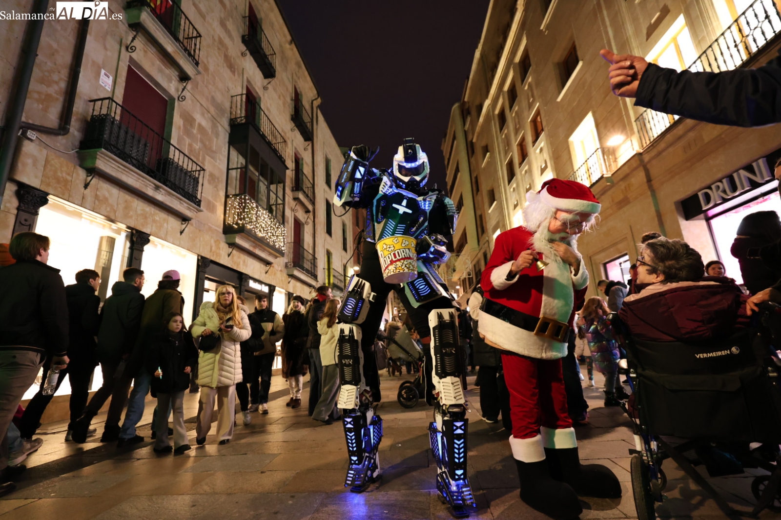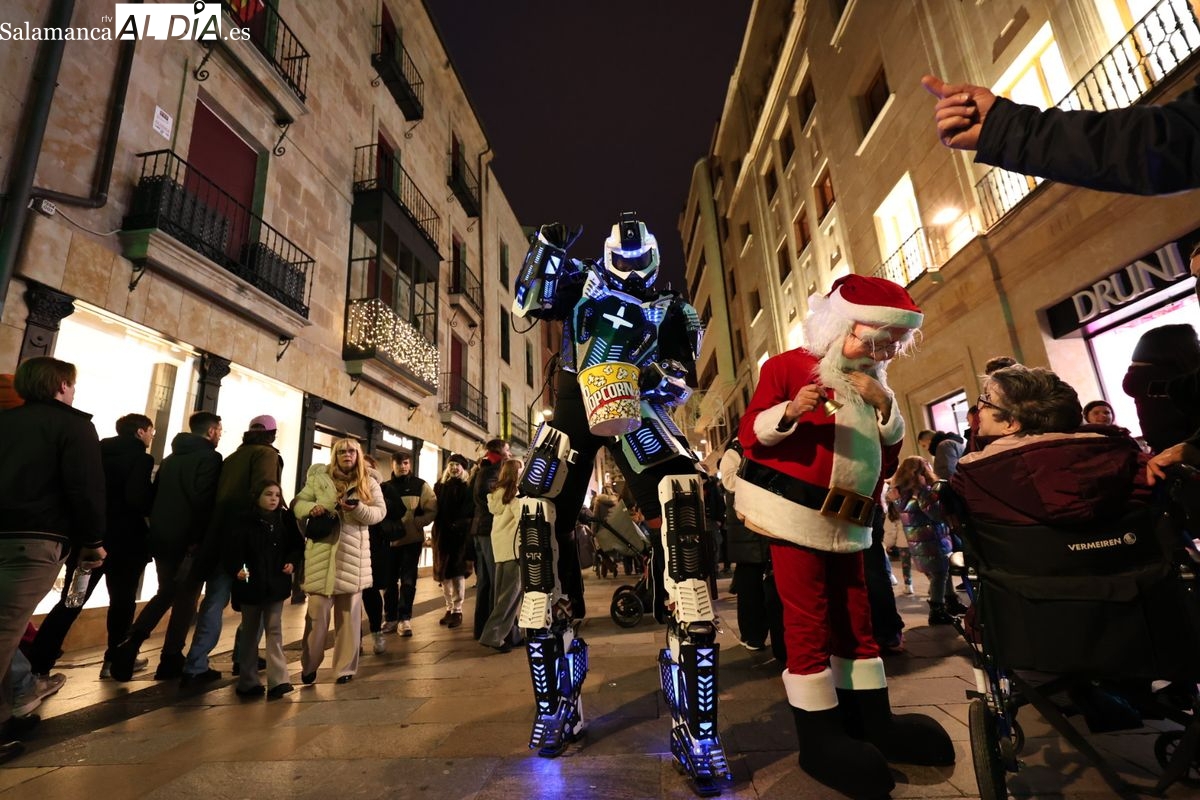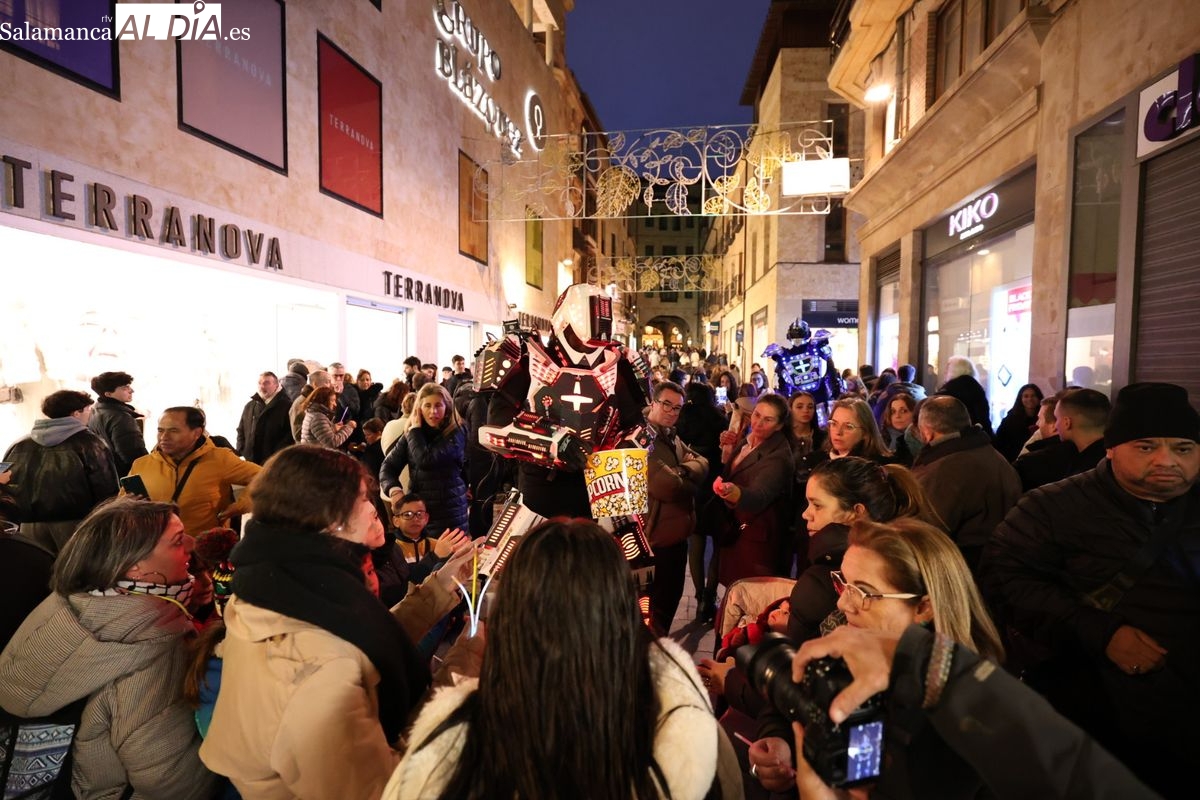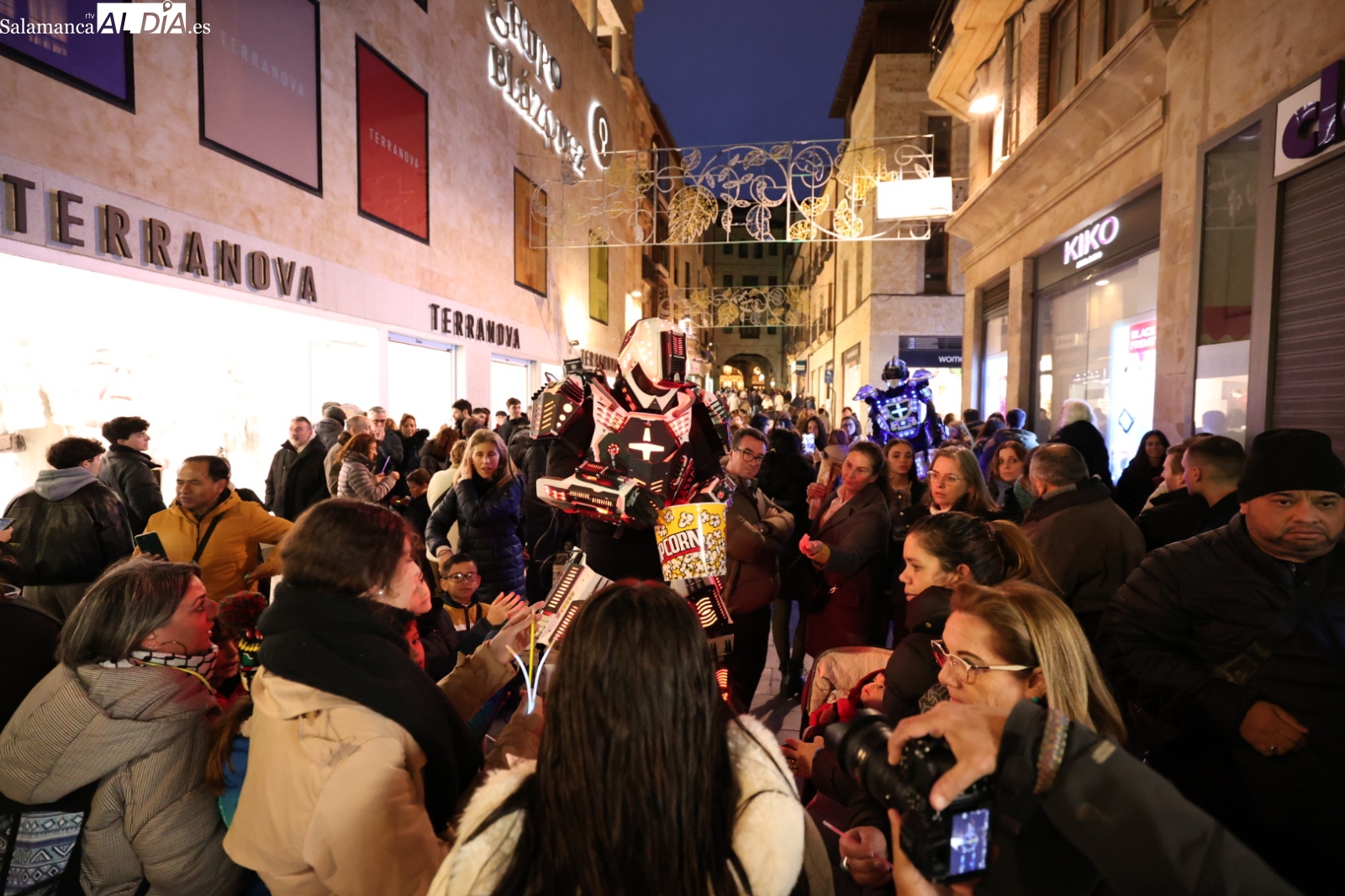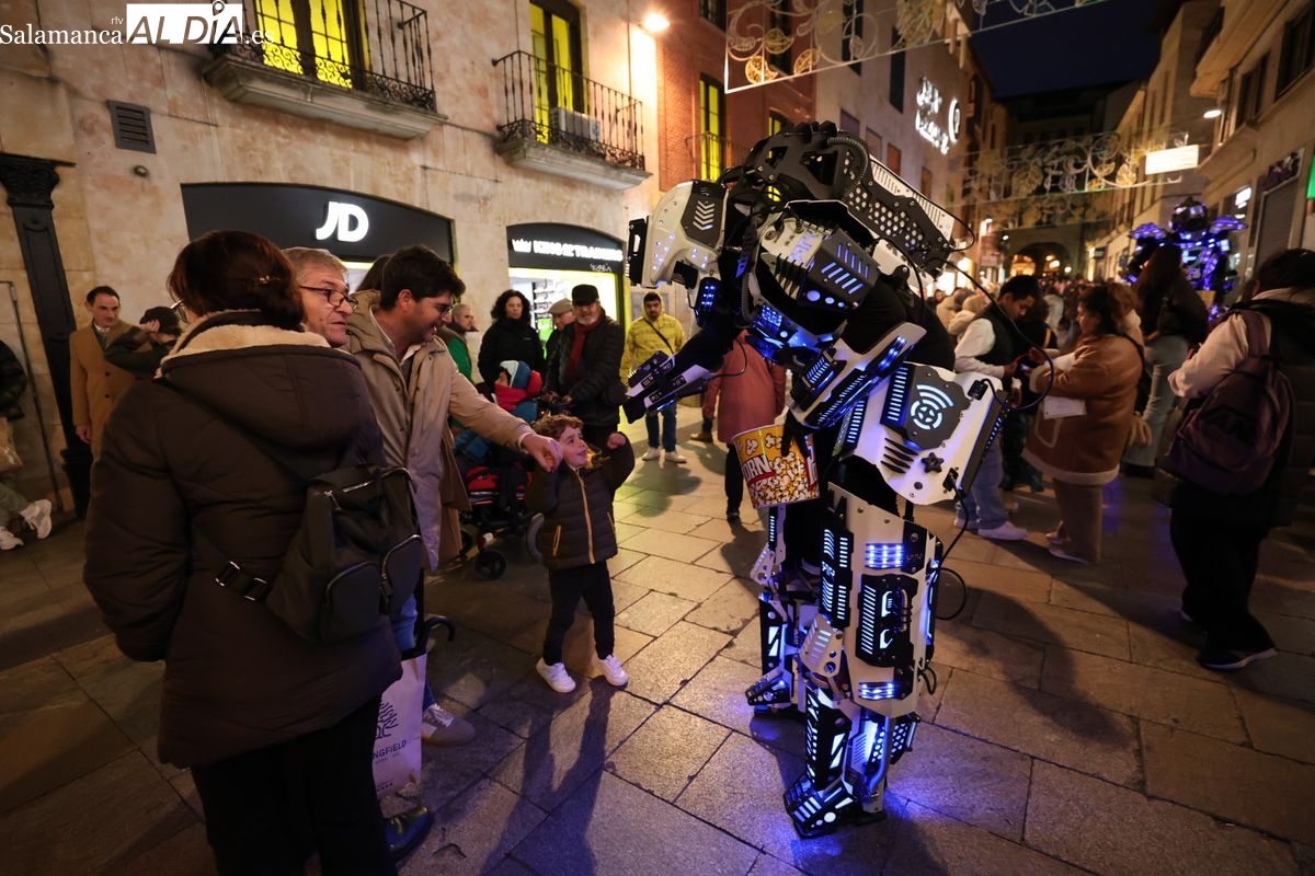 Las calles más céntricas de la capital del Tormes han acogido una actividad de dinamización diseñada para incentivar las compras y aportar color al ambiente urbano. Se trata de un pasacalles protagonizado por robots con tecnología LED, una propuesta visual que recorrerá los principales ejes comerciales y turísticos de Salamanca.