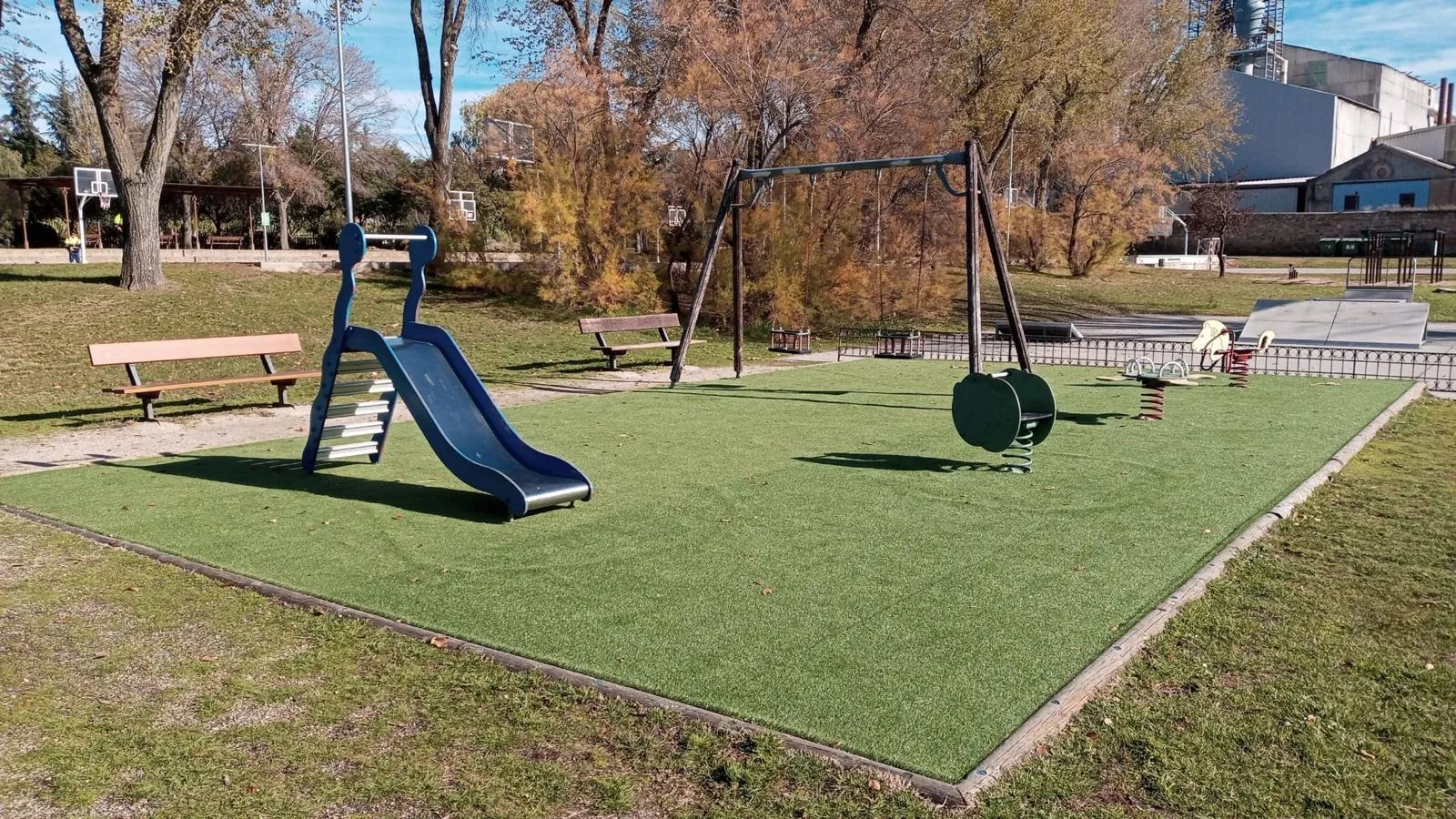 En lo que respecta al parque de los Jesuitas, las mejoras se distribuyen en tres espacios diferenciados para optimizar su uso. En la zona de mayor tamaño, de 1.600 metros cuadrados y anexa a la vía férrea, se instalarán nuevos elementos dinámicos como una red piramidal de madera y un columpio cuádruple, mientras que en el área contigua se sustituirá la estructura actual por un gran 'combi' con capacidad para 28 niños. Asimismo, en el recinto próximo a las pistas deportivas se ha procedido a la renovación del suelo con base amortiguante y acabado de césped sintético.