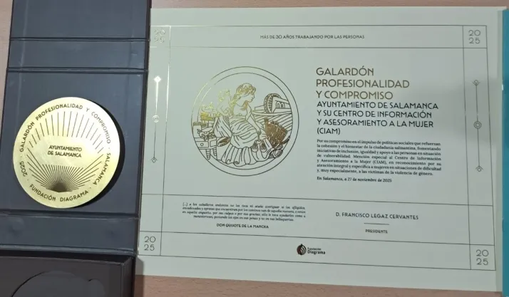 La Fundación Diagrama Intervención Psicosocial ha hecho entrega de uno de sus Galardones 'Profesionalidad y Compromiso' al Centro de Información y Asesoramiento a la Mujer (CIAM) del Ayuntamiento de Salamanca. Esta distinción tiene como objetivo reconocer públicamente la "profesionalidad, dedicación, esfuerzo, responsabilidad y compromiso social" del servicio municipal.
