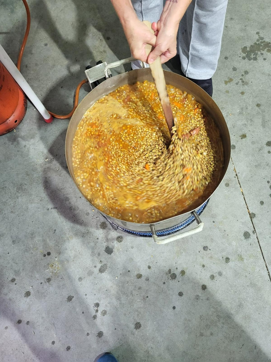Las cocineras colaboradoras, piezas fundamentales en el éxito de estas convocatorias en Gejo de los Reyes, prepararon unas lentejas estofadas que recibieron el elogio unánime de los comensales. El menú se completó con lomo adobado, un producto esencial en la cultura matancera, preparado con el adobo característico que pasa de generación en generación.