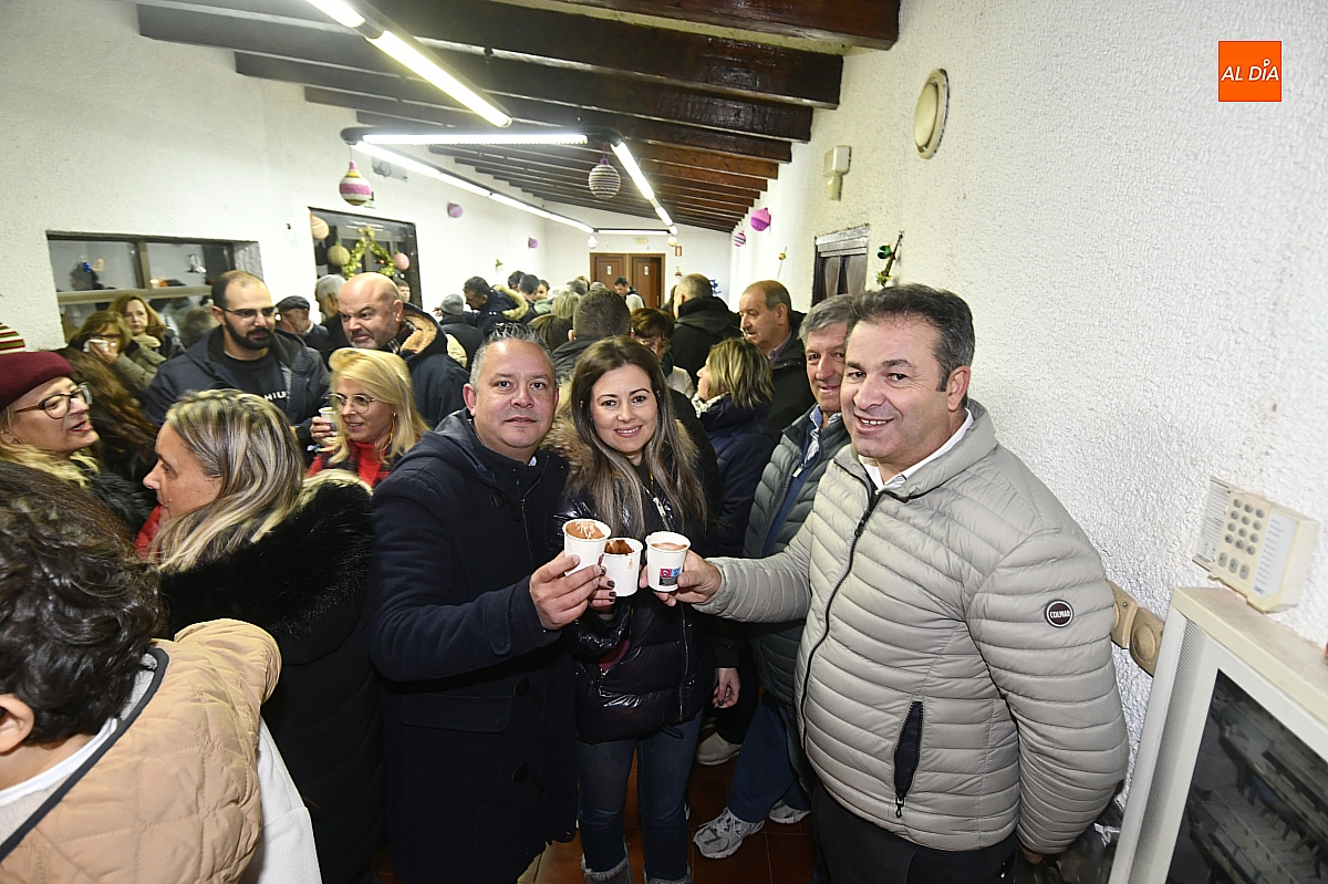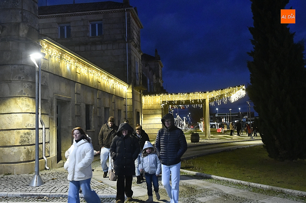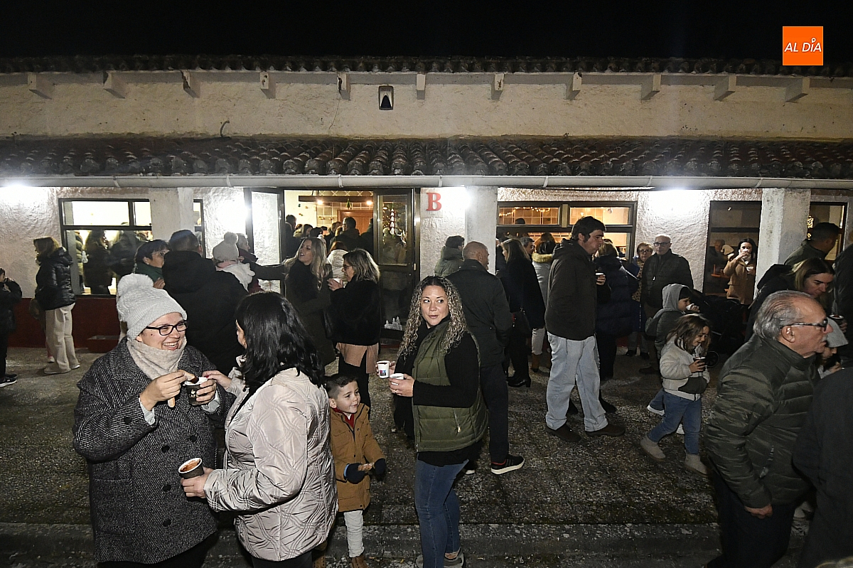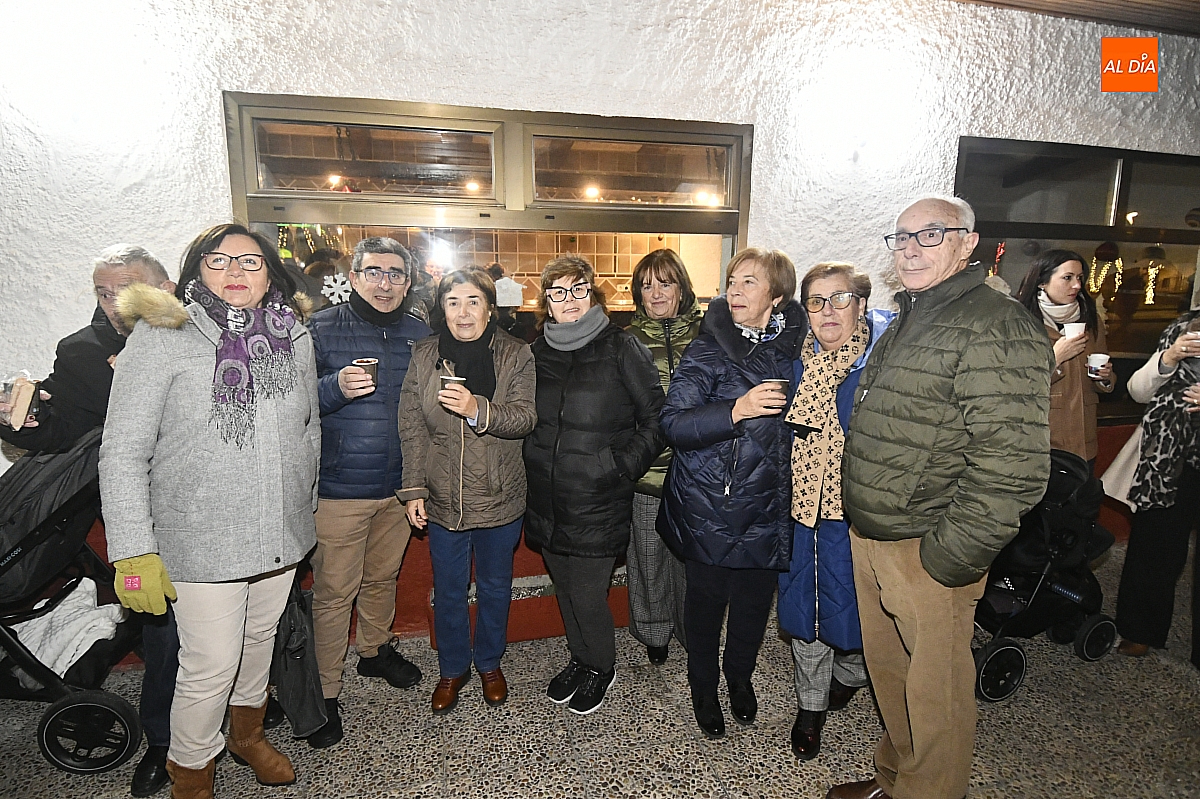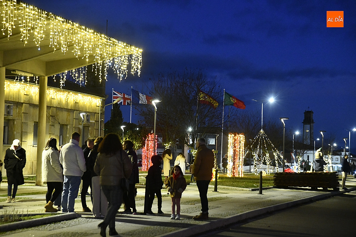 Ni el frío característico de esa franja fronteriza logró desanimar a las familias que acudieron con sus hijos para disfrutar del encendido. La tradicional chocolatada, organizada por la Asociación de Vecinos Santa Bárbara, sirvió para templar la noche: en el antiguo mesón repartieron generosas tazas de chocolate caliente a todos los que quisieron acercarse.