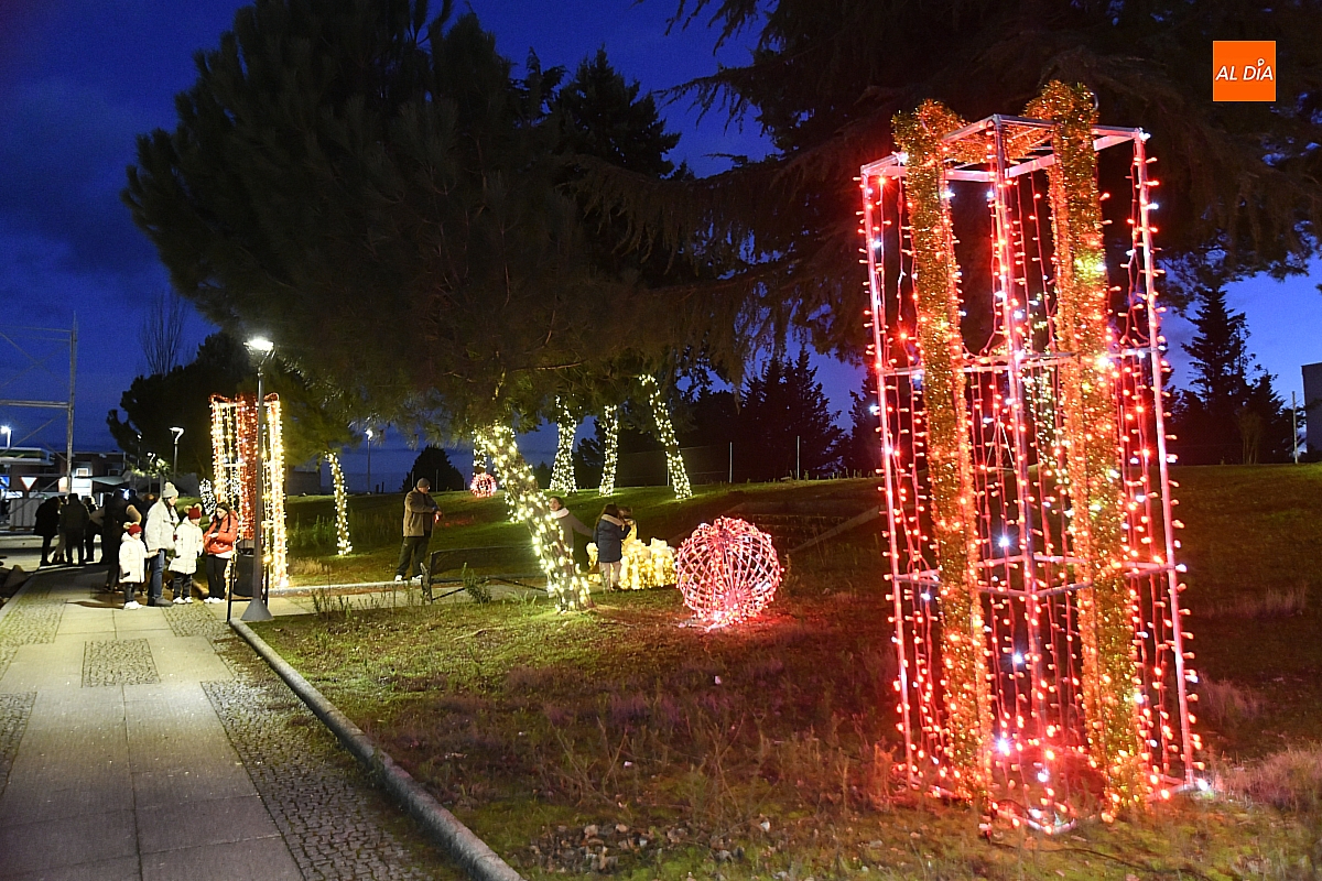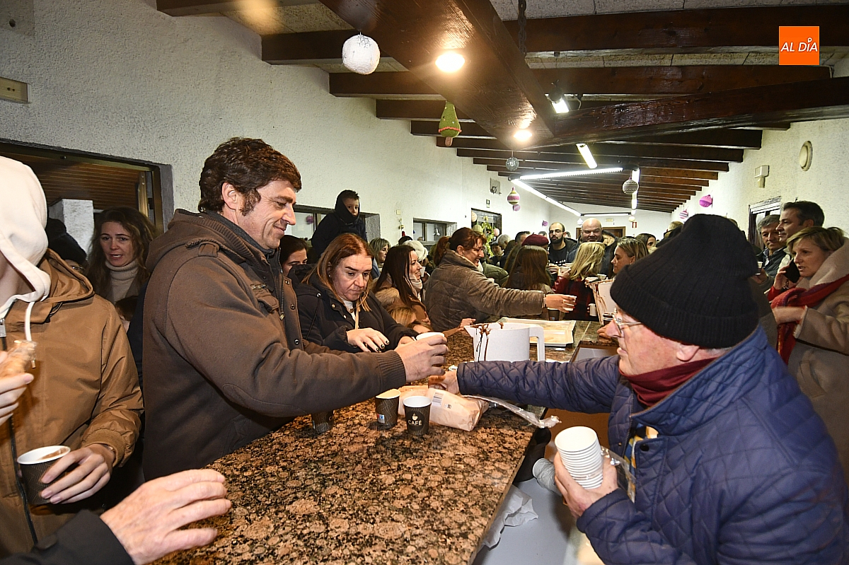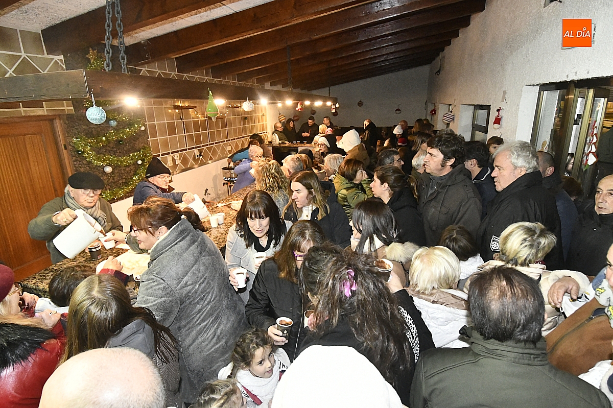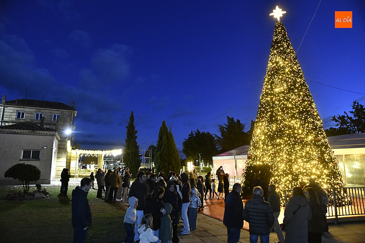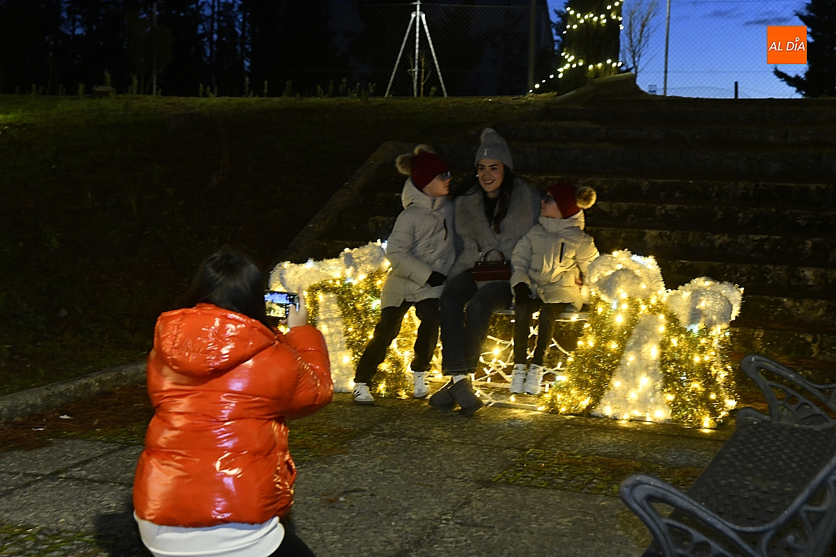 Ni el frío característico de esa franja fronteriza logró desanimar a las familias que acudieron con sus hijos para disfrutar del encendido. La tradicional chocolatada, organizada por la Asociación de Vecinos Santa Bárbara, sirvió para templar la noche: en el antiguo mesón repartieron generosas tazas de chocolate caliente a todos los que quisieron acercarse.