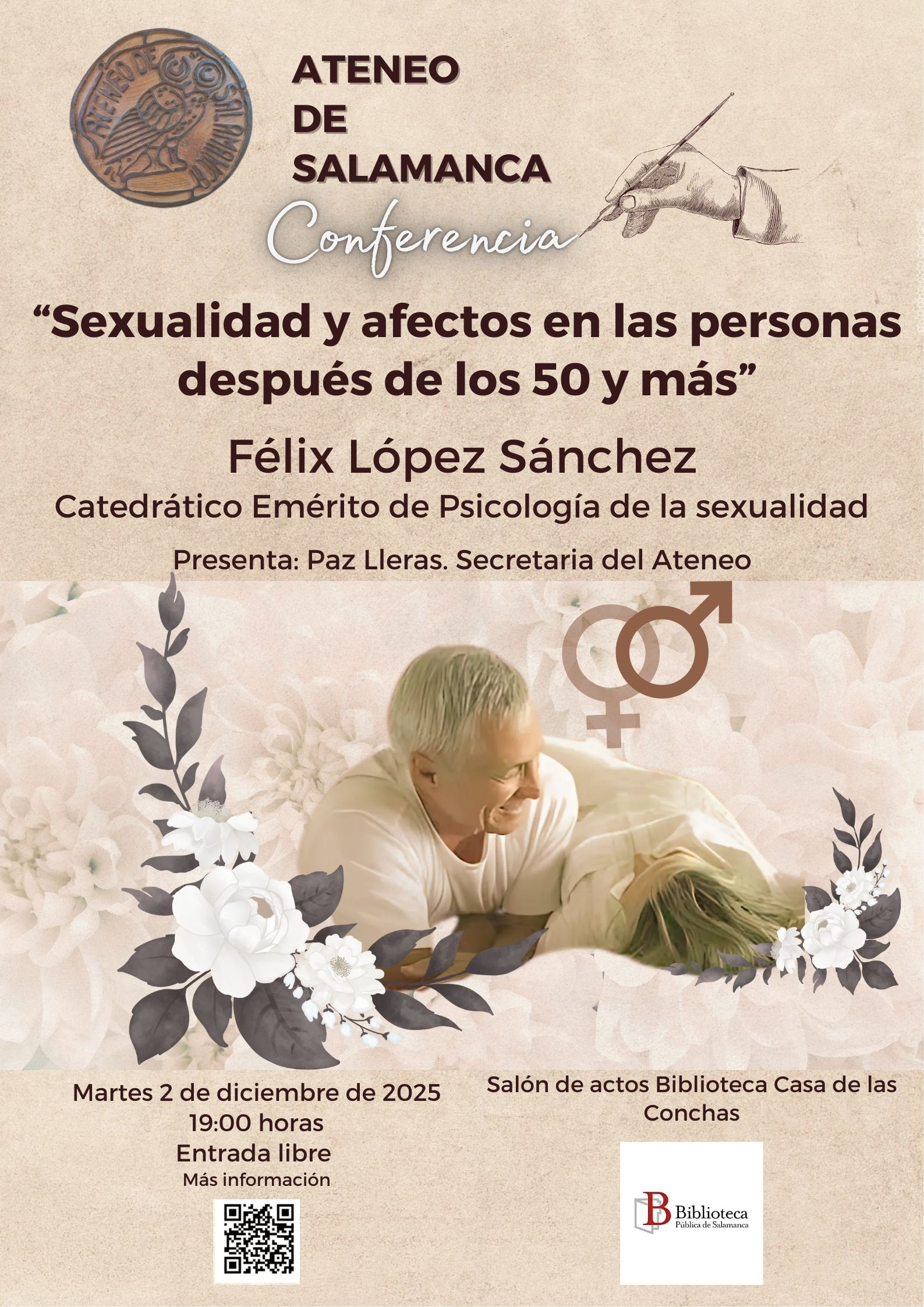 El salón de actos de la Casa de las Conchas acogerá el próximo martes, 2 de diciembre, una nueva actividad cultural organizada por el Ateneo de Salamanca. La cita, programada para las 19:00 horas, abordará una temática de gran relevancia social y personal bajo el título "Sexualidad y afectos en las personas después de los 50 y más".