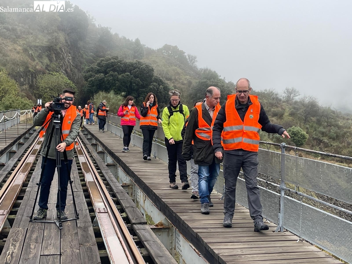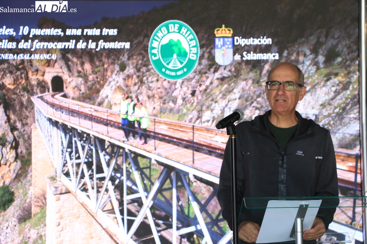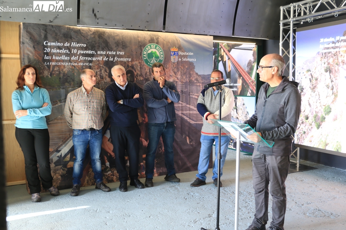 El acto ha estado presidido por el presidente de la Diputación, Javier Iglesias, quien, antes de la presentación oficial, ha recorrido el nuevo trazado junto a los diputados de Turismo, Juan Carlos Zaballos; de Proyectos Estratégicos, Pilar Sánchez; de Proyectos Generales, Carlos García. A la comitiva se han sumado periodistas de varios medios de comunicación y un grupo de antiguos ferroviarios, verdaderos guardianes de la memoria de la línea, que han aportado una profunda carga emotiva a la jornada. También se sumaron minutos más tarde el diputado de Deportes y Carreteras, Jesús María Ortiz, y los alcaldes de La Fregeneda, Manuel Alonso, y de Hinojosa de Duero, Jesús Pata,