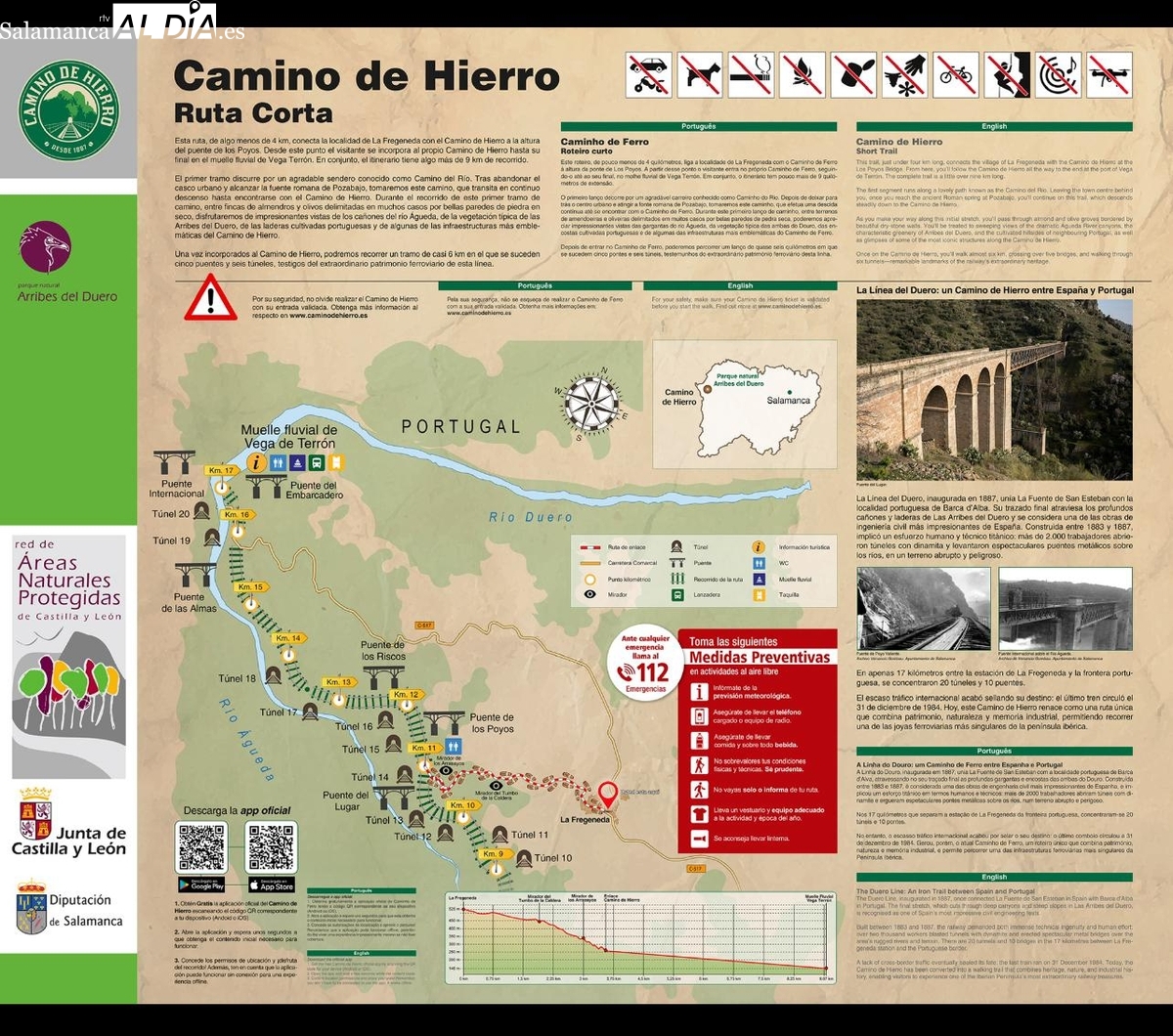 El nuevo tramo, que parte desde el propio municipio de La Fregeneda, culmina en el espectacular Mirador del Tumbo de la Caldera, con vistas privilegiadas sobre el cañón del Águeda, antes de unirse al recorrido oficial. Para el presidente de la Diputación, esta alternativa “integra de manera plena a La Fregeneda en el Camino de Hierro, ofreciendo nuevas oportunidades para la hostelería, el comercio y los alojamientos del municipio”. Tras la presentación, se proyectó un vídeo promocional de Camino de Hierro. La jornada concluiría con una excelente comida compartida en el restautante 'Tal vez', de Hinojosa de Duero.