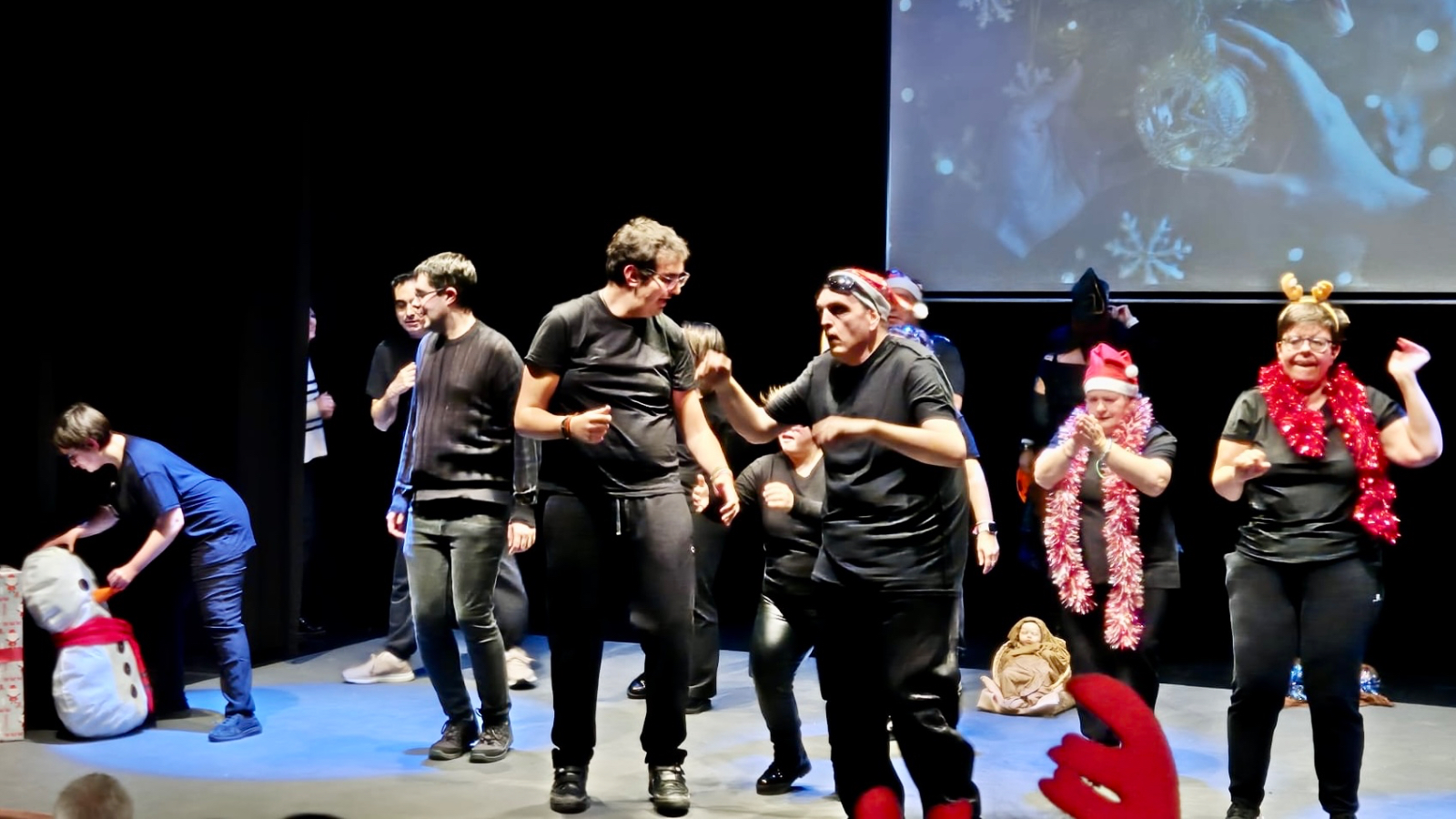 La idea nació con la naturalidad de las cosas auténticas. Tras el éxito de un taller de verano, una pequeña escena sobre el mercadillo de Peñaranda resonó con tanta fuerza que el equipo supo que aquel era solo el comienzo. Con la Navidad aproximándose, el proyecto tomó forma casi por sí mismo. El proceso creativo, profundamente participativo, comenzó con una pregunta sencilla y luminosa: ¿qué es lo que más nos gusta de estas fechas? La respuesta llegó clara y unánime. “Todos coincidieron en que lo que más disfrutaban era estar con su gente, con quienes quieren. De ahí salió Eso que tú me das”, explica Patricia Sánchez, subrayando que el título recoge el sentir común del grupo.