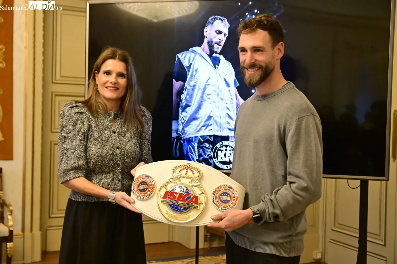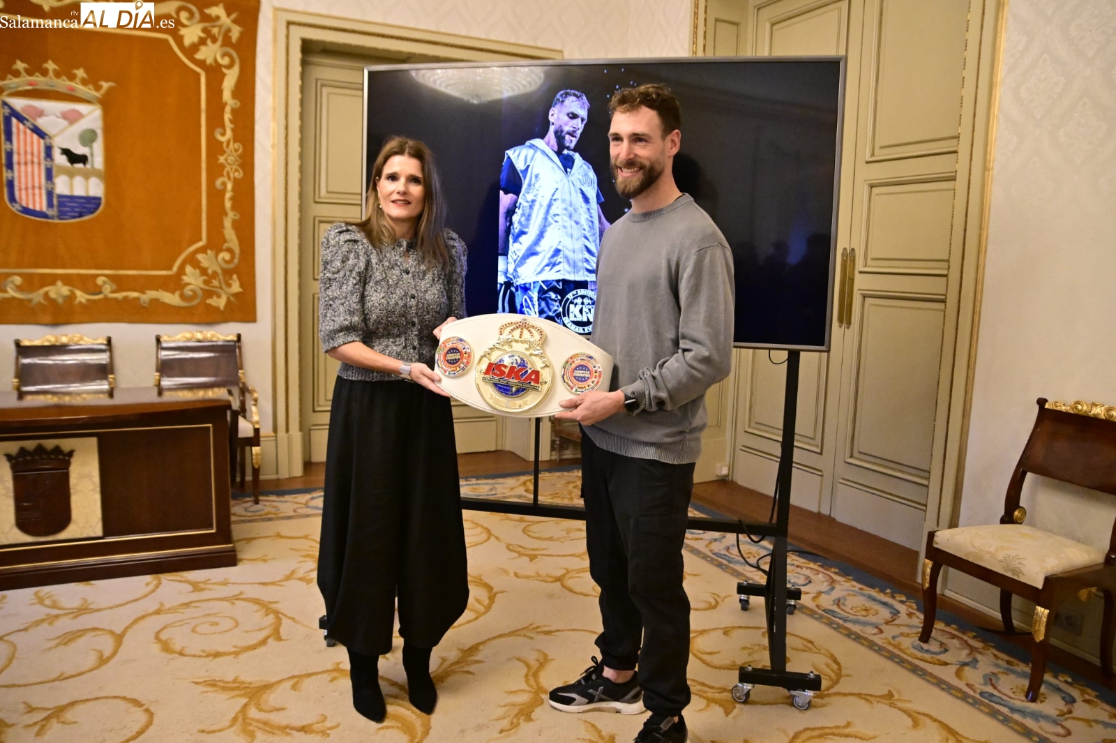 Andrés Bernabé Campero, campeón de Europa Profesional ISKA de Full Contact -81kg, ha sido homenajeado en el Ayuntamiento de Salamanca por parte de Almudena Parres, la concejala de Deportes, con todos los honores por el gran logro cosechado en kickboxing.