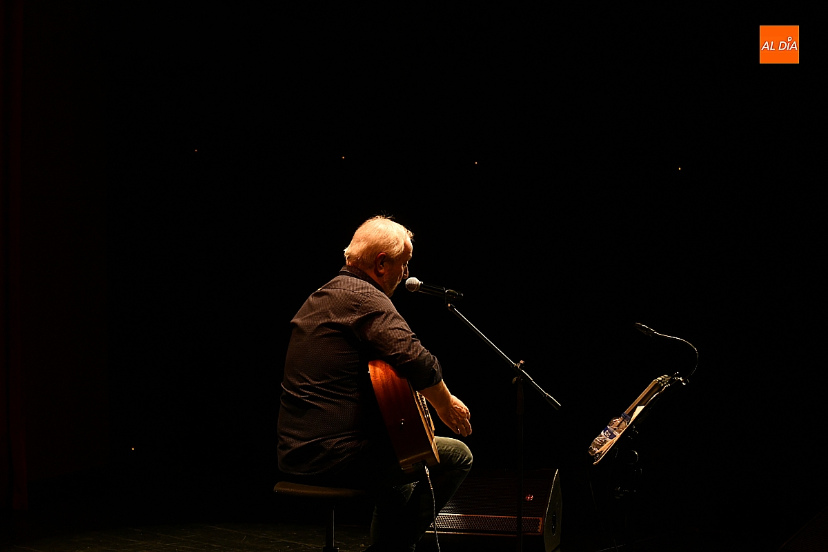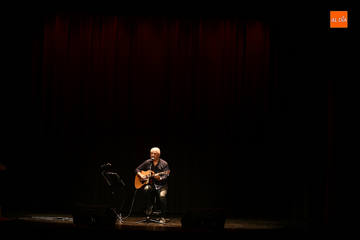 La segunda parte del recital estuvo dedicada a Mundi, amante declarado de la guitarra y de las melodías de Joaquín Sabina o Mark Knopfler, el legendario guitarrista de Dire Straits. Sus interpretaciones, pulcras y sentidas, fueron desgranándose con una profesionalidad que conmovió a los asistentes, atentos al diálogo íntimo entre la voz, las cuerdas y el eco cálido del teatro.