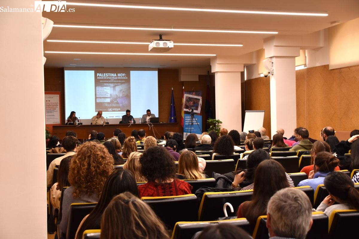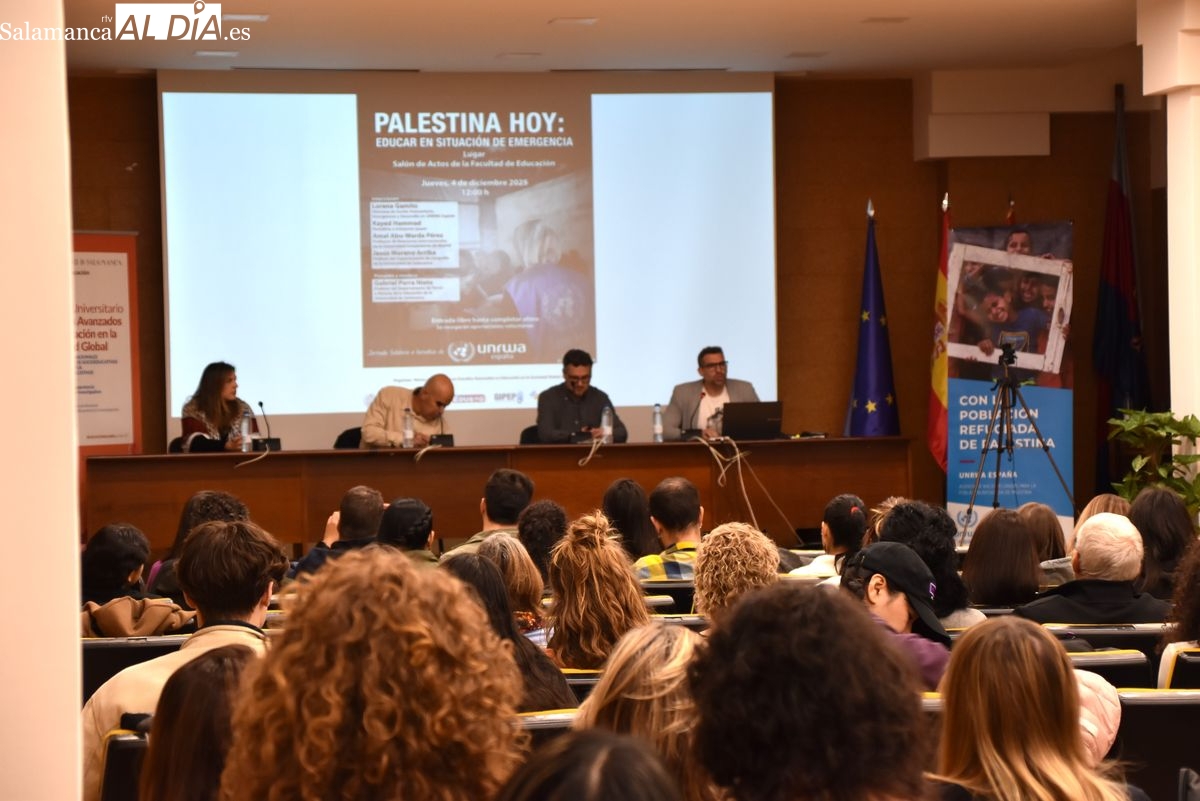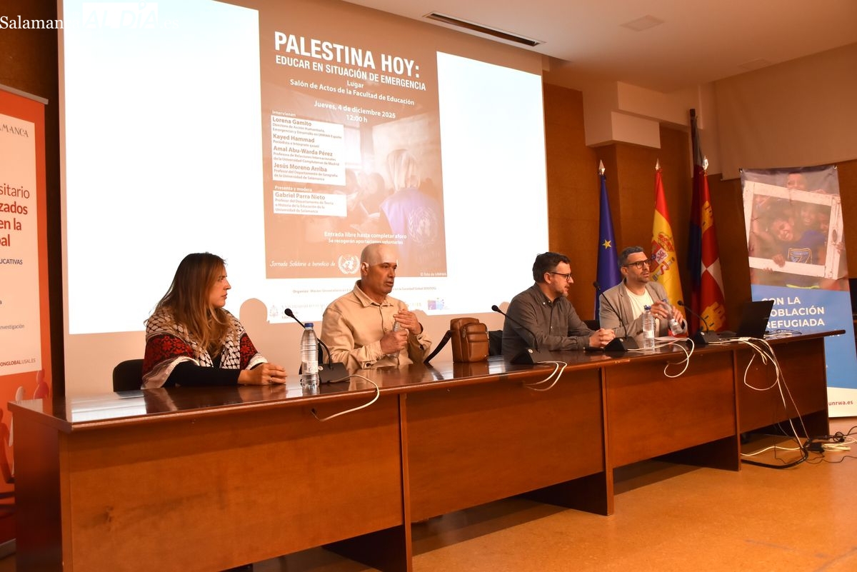 La Facultad de Educación de la Universidad de Salamanca ha acogido esta mañana la jornada 'Palestina hoy: Educar en situación de emergencia', un espacio de reflexión que ha contado con un testimonio de excepción. Kayed Hammad, periodista e intérprete gazatí, ha compartido su experiencia tras haber logrado salir de la Franja de Gaza hace apenas cinco meses, después de haber permanecido 21 meses en el epicentro del conflicto.