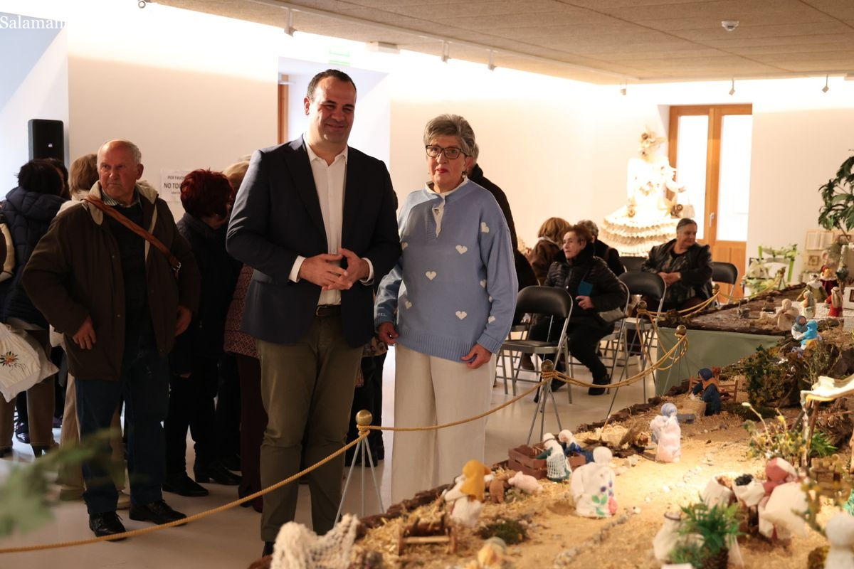 El diputado de Cultura, David Mingo, ha inaugurado en el Instituto de las Identidades un belén sostenible realizado por la Agrupación de Mujeres Damajuanas de Fuenteguinaldo.