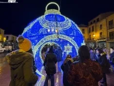 El montaje principal se encuentra instalado en la Plaza de la Constitución, presidida este año por una bola gigante luminosa de Navidad, a la que acompañan tres figuras propias de estas fechas y también de luz.