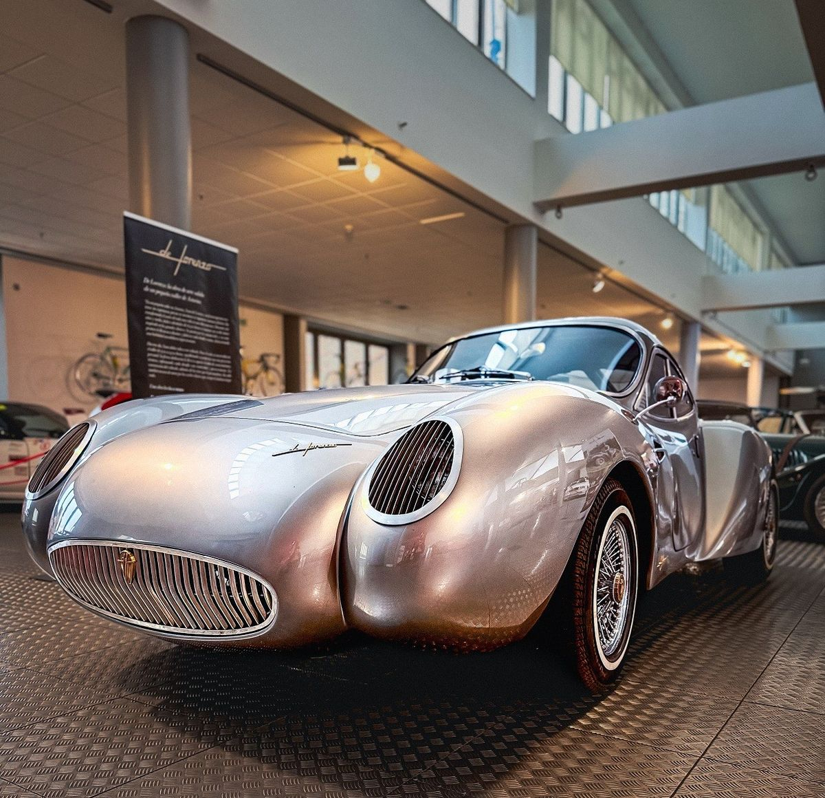 Como sello de identidad, el coche luce un logotipo original elaborado en bronce: la partícula 'de' junto a una bandera de España. Perteneciente a la Colección Xuan De Lorenzo, el automóvil se presenta en Salamanca como una visión romántica y moderna del automovilismo del siglo XX.