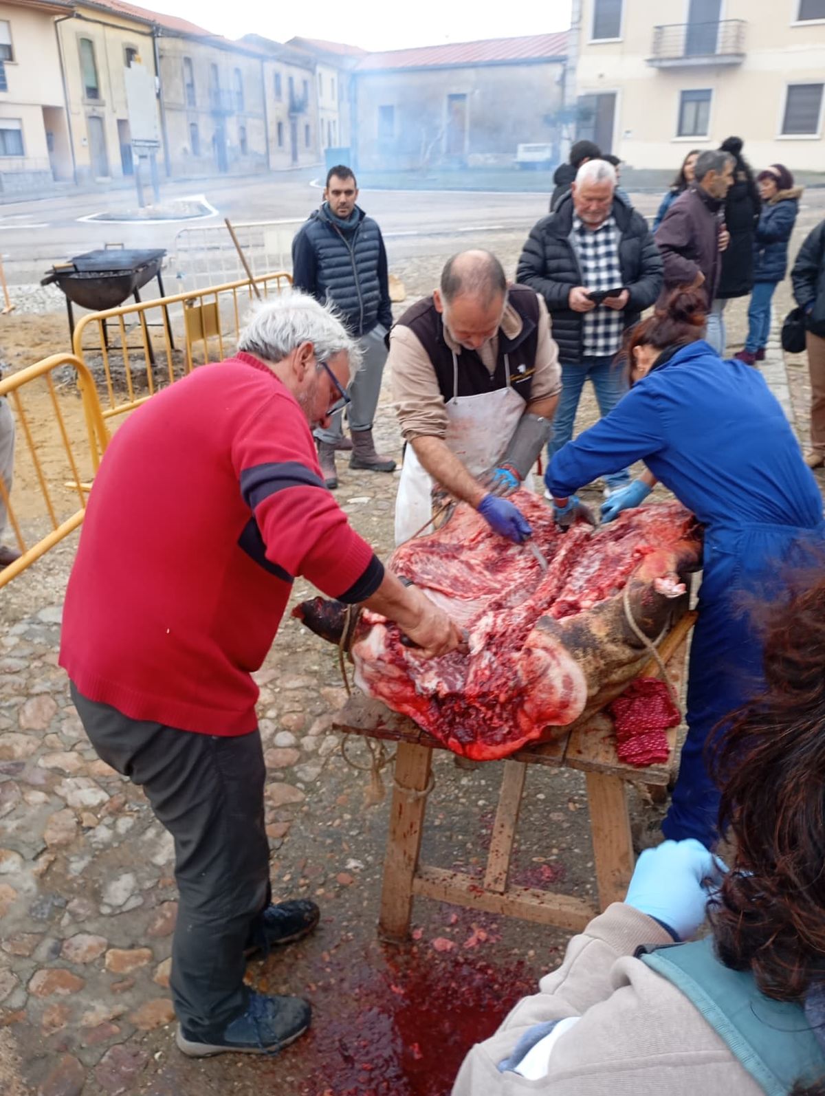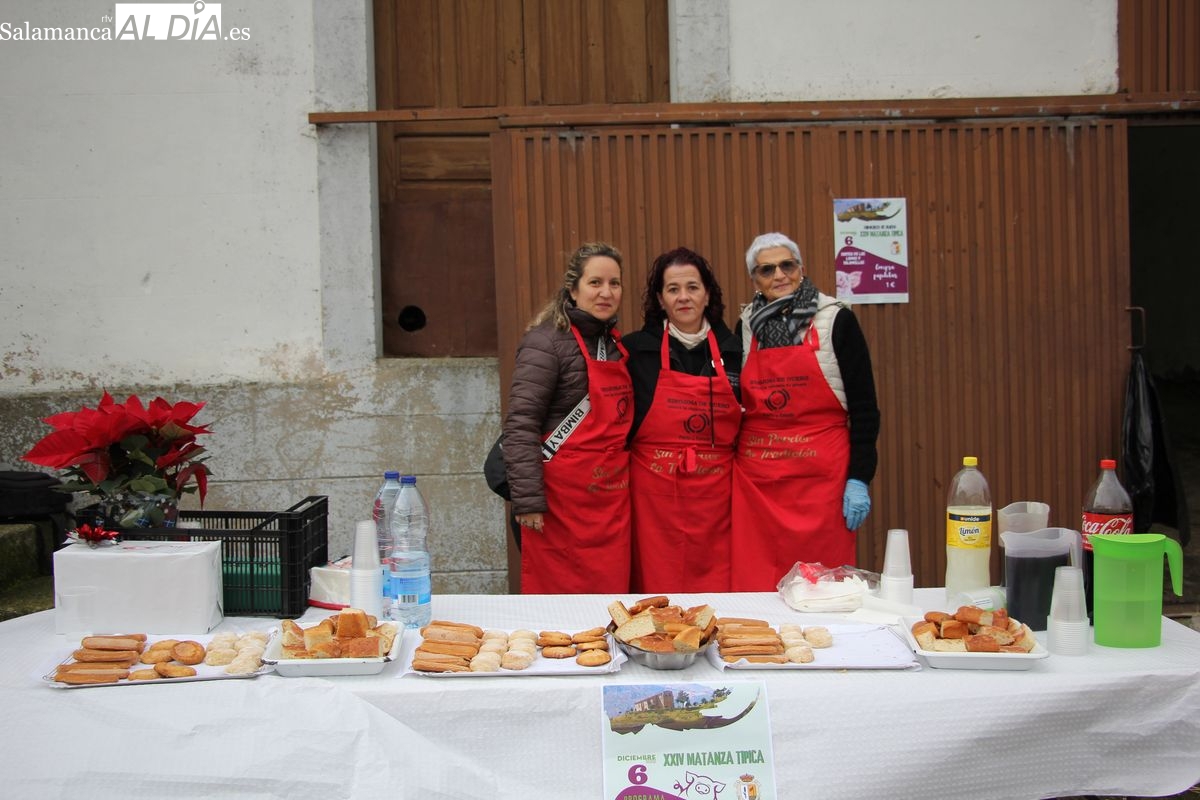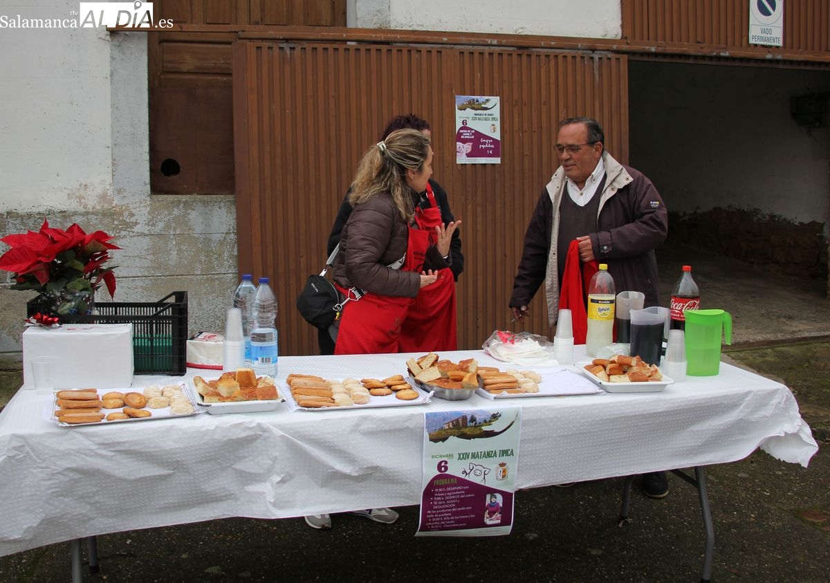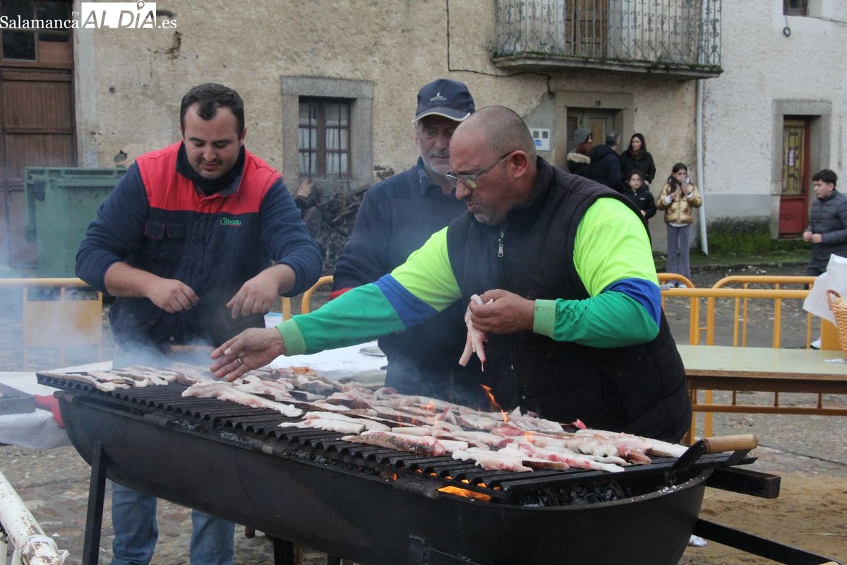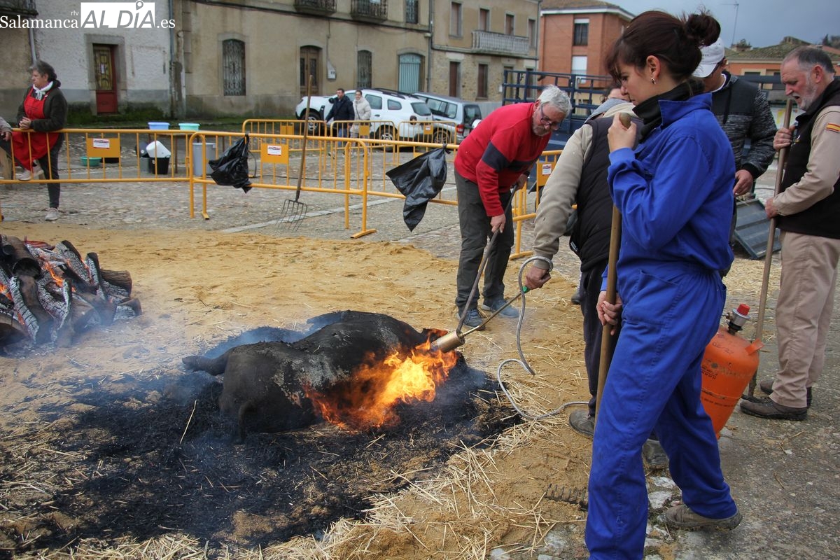De este modo, la jornada comenzaba con un desayuno a base de dulces y aguardiente para dar la bienvenida a los participantes y prepararlos para el frío de la mañana. El acto central era el despiece del cebón, un momento que tenía como protagonista a Nerea Caballero y a un grupo de voluntarios, que daban cuenta del cebón para llevar las carnes a los varardeles.