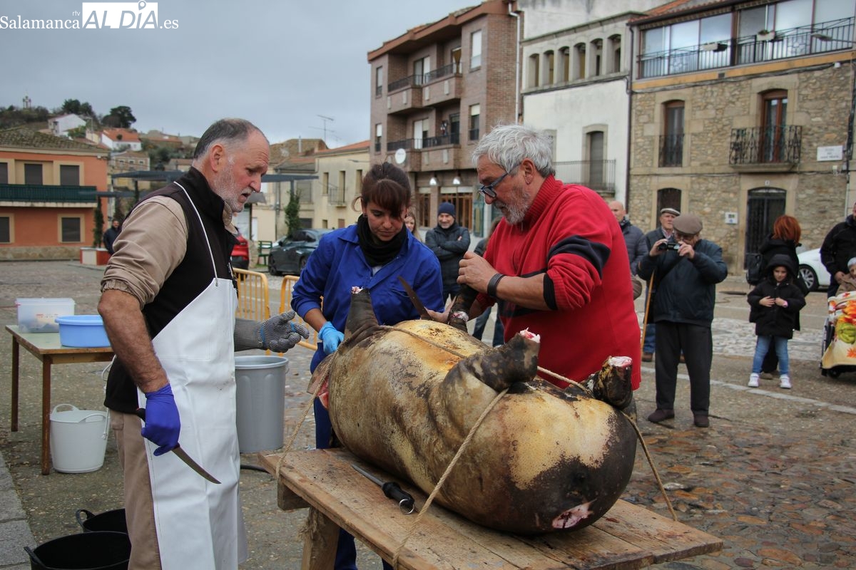 Hinojosa de Duero vivía este sábado una de sus tradiciones más arraigadas, concretamente la XXIV Matanza Típica, evento que se ha consolidado como una cita ineludible en el calendario festivo del municipio durante el puente festivo de la Constitución y que este año tenía como principal protagonista a Nerea Caballero Gajate, que ejercía como Matancera de Honor.