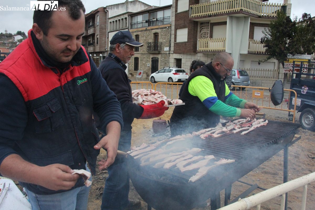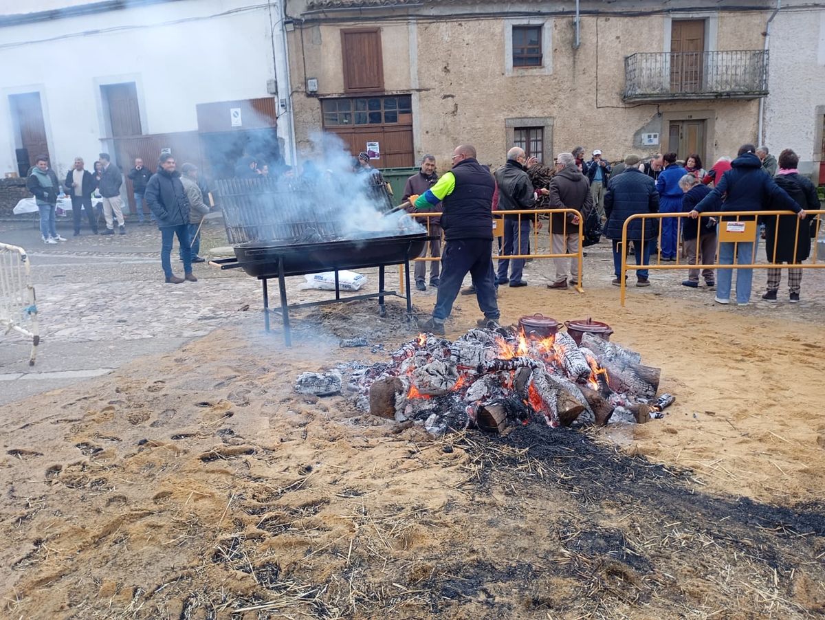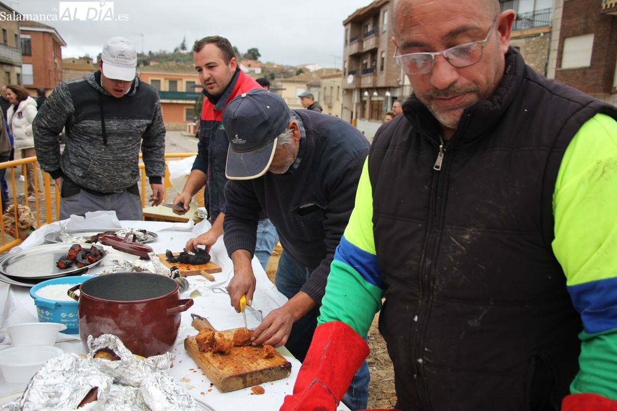 Finalizado el despiece, integrantes de la Asociación de Mujeres de Hinojosa y de la Asociación de Mayores Fenyosa, preparaban la comida para su reparto posterior entre el público asistente, carnes del cerdo asada a la lumbre, además de un rico café de puchero. En estas labores también estuvo inmerso el alcalde de Hinojosa, Jesús Pata, junto con varios de los concejales.
