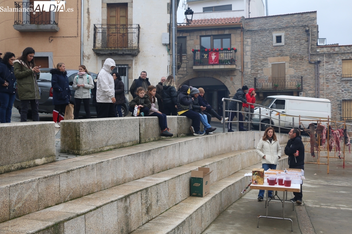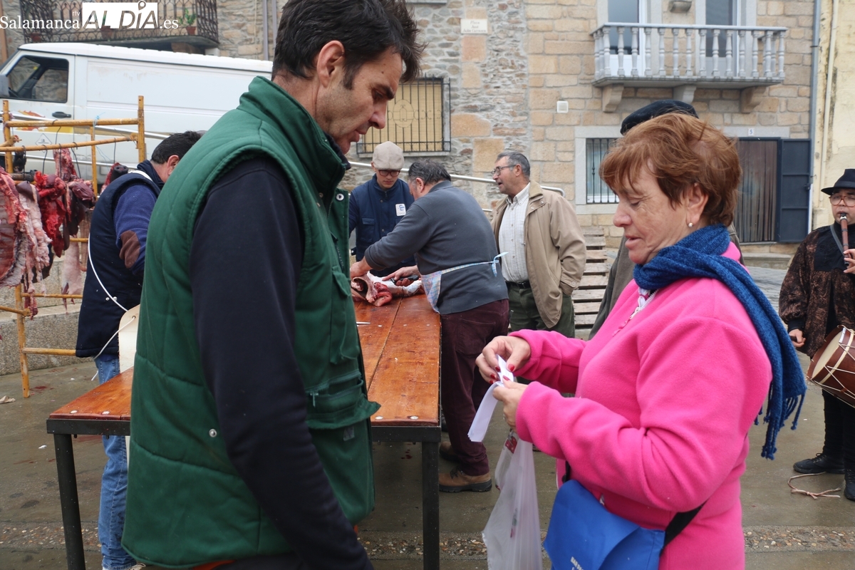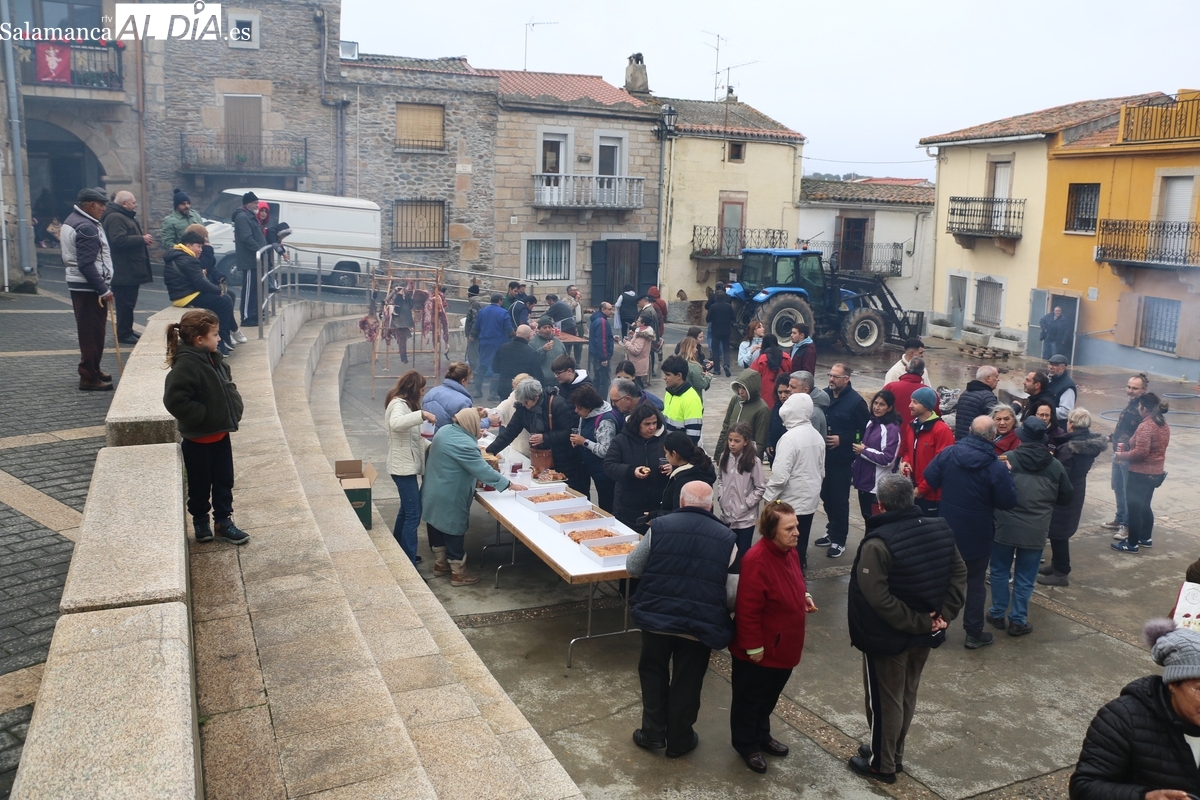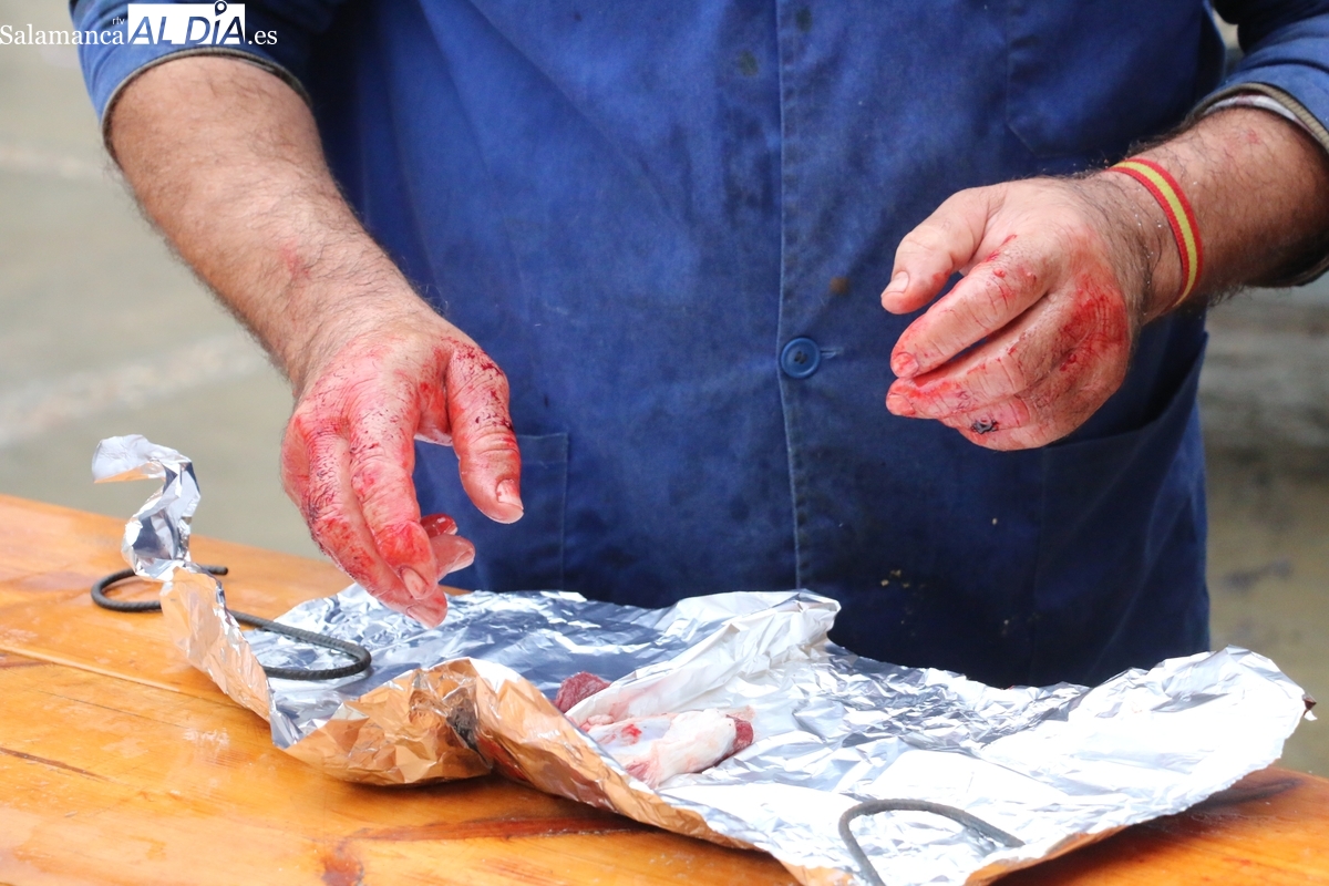 No faltó la degustación de carnes de distintas partes del cerdo, todo amenizado por los sones de la gaita y el tamboril de Diego Rengel y animado por un maestro de ceremonias de la Diputación de Salamanca