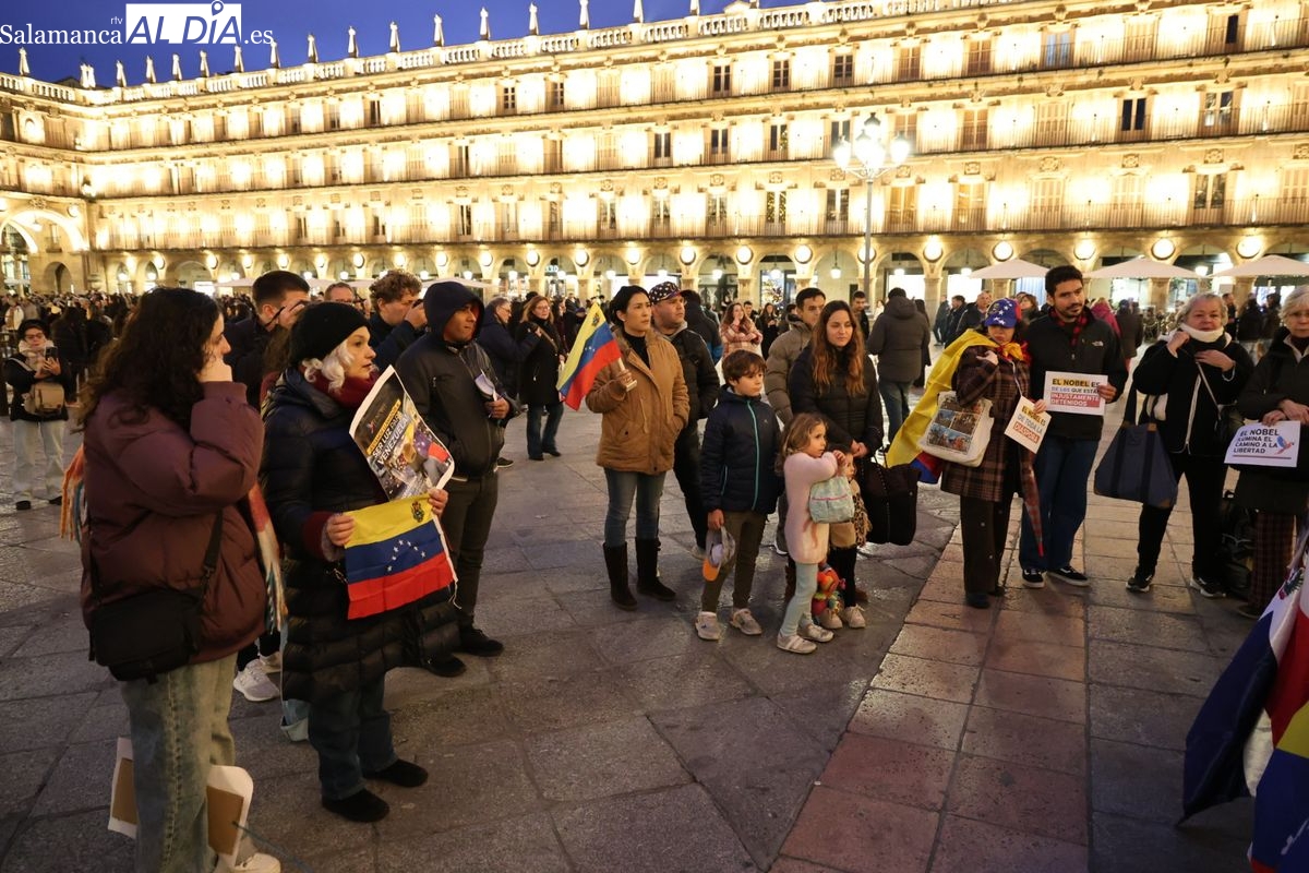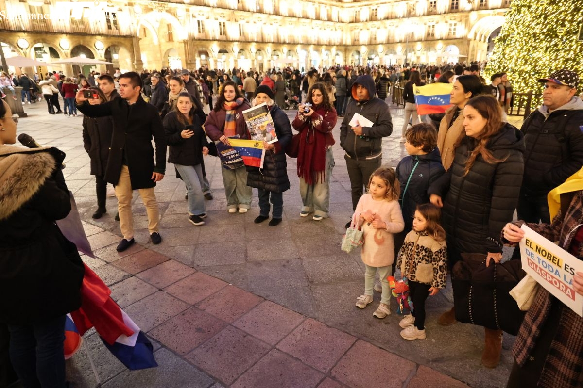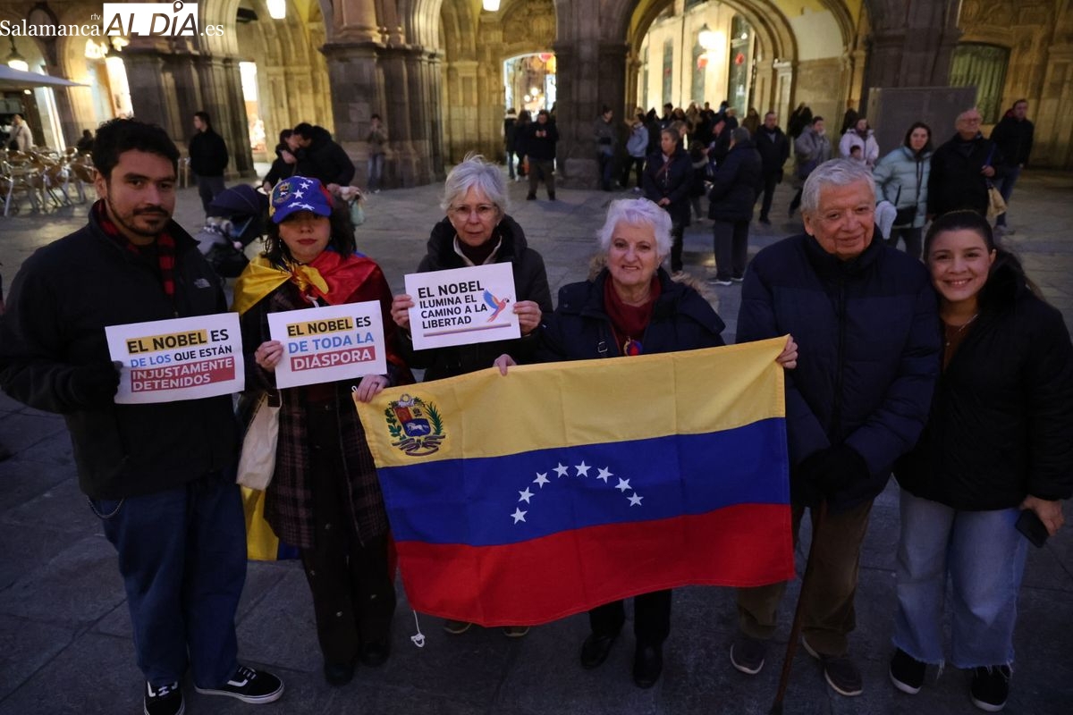 VÍDEO Y FOTOS | La comunidad venezolana se concentra en Salamanca para celebrar el Nobel de la Paz a María Corina Machado