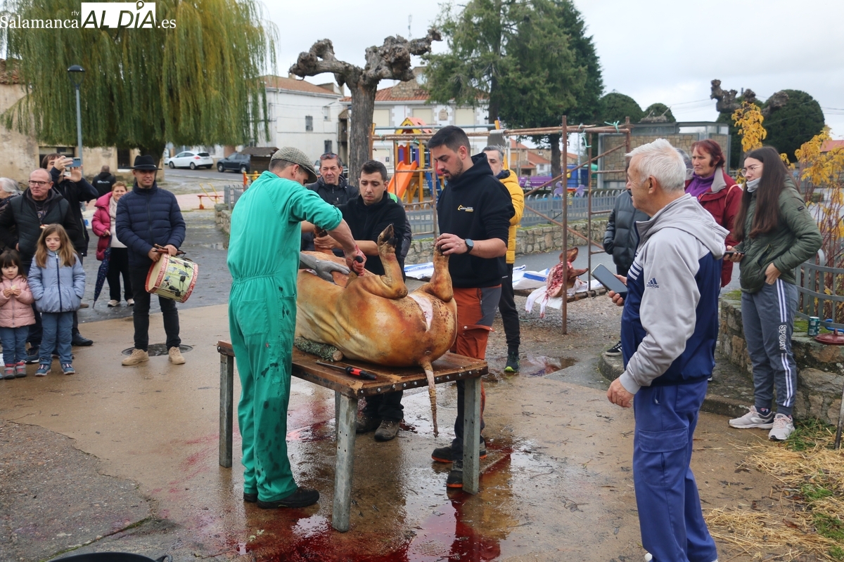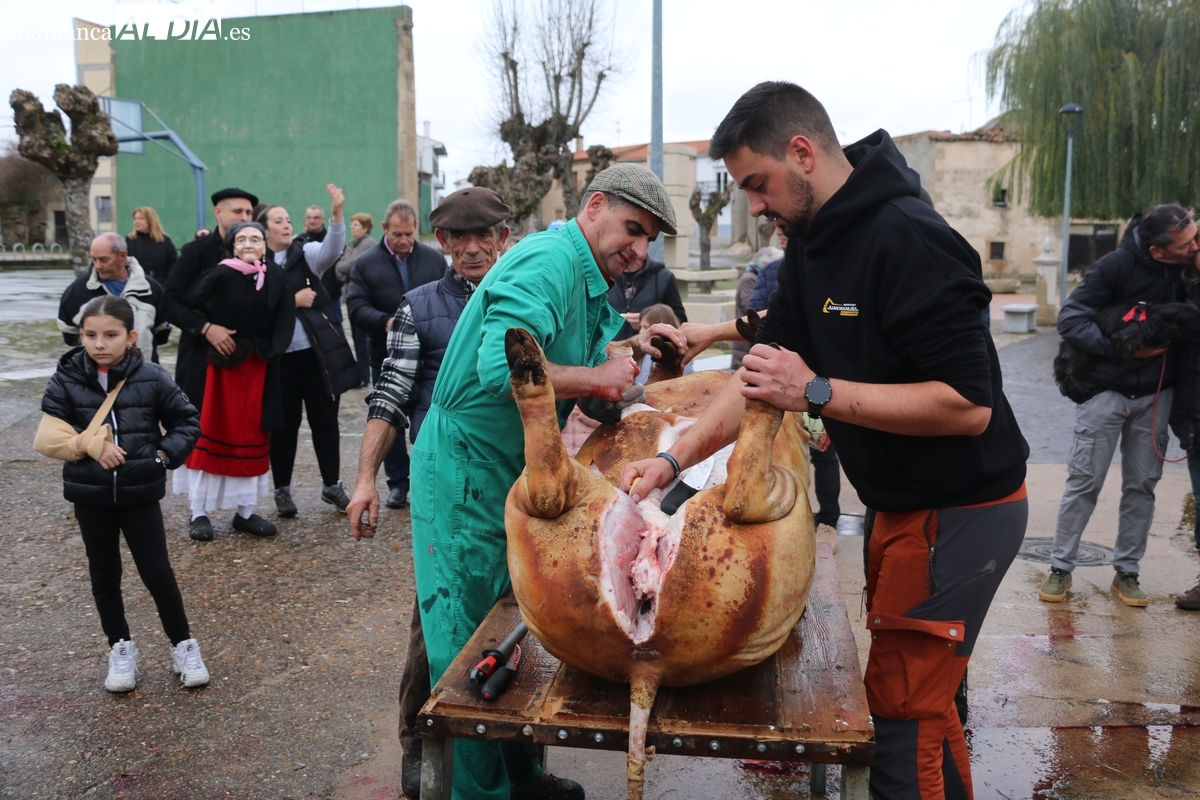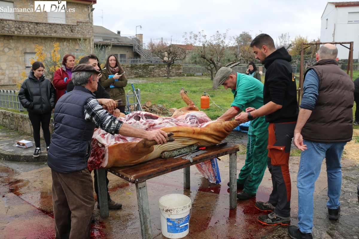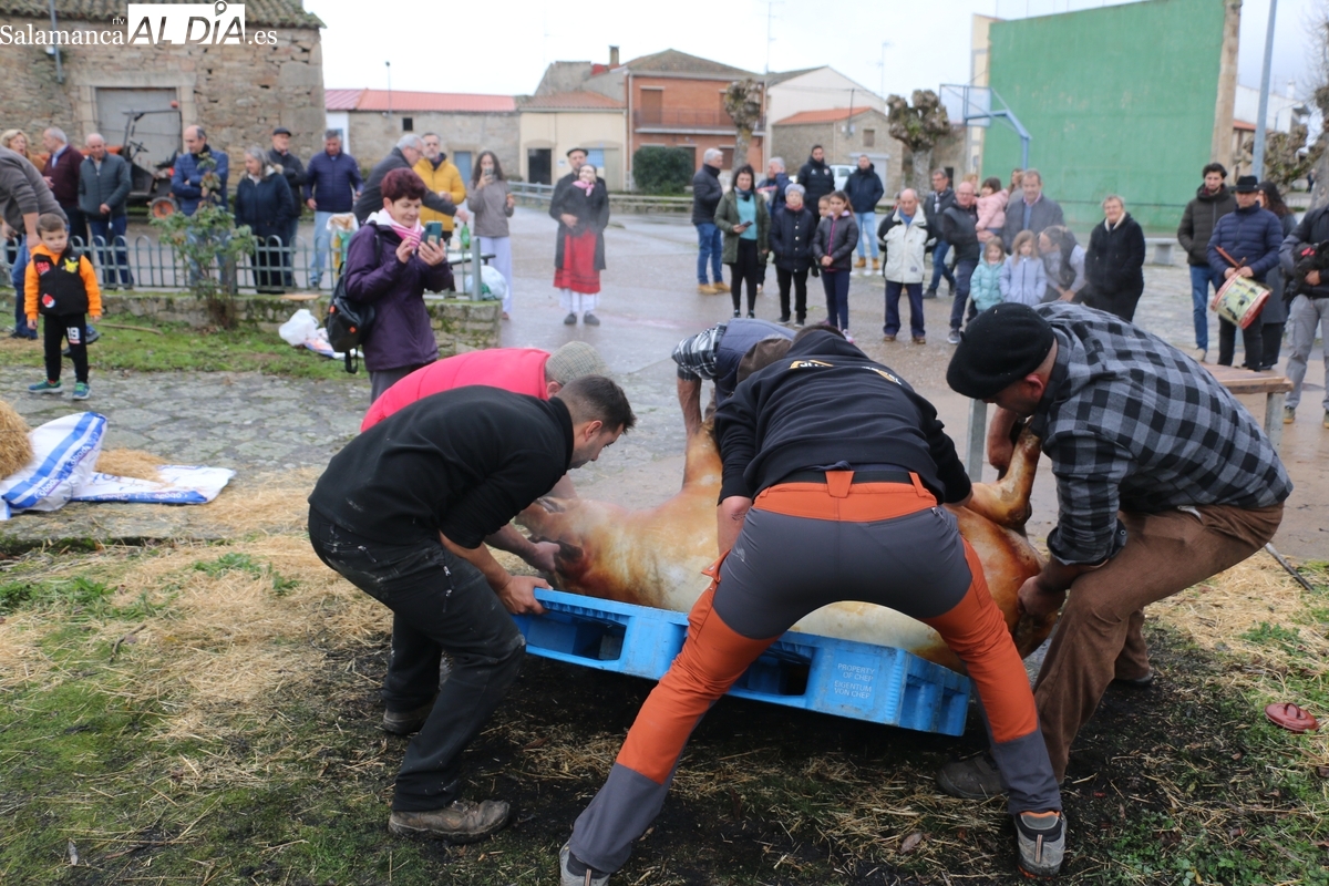 Incluida en el circuito de matanzas de la Diputación de Salamanca, la jornada se centró en el sacrificio y despiece del cerdo, combinando el rito matancero con actividades de folclore, teatro y una comida popular para todos los vecinos