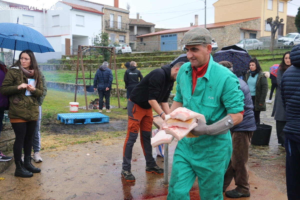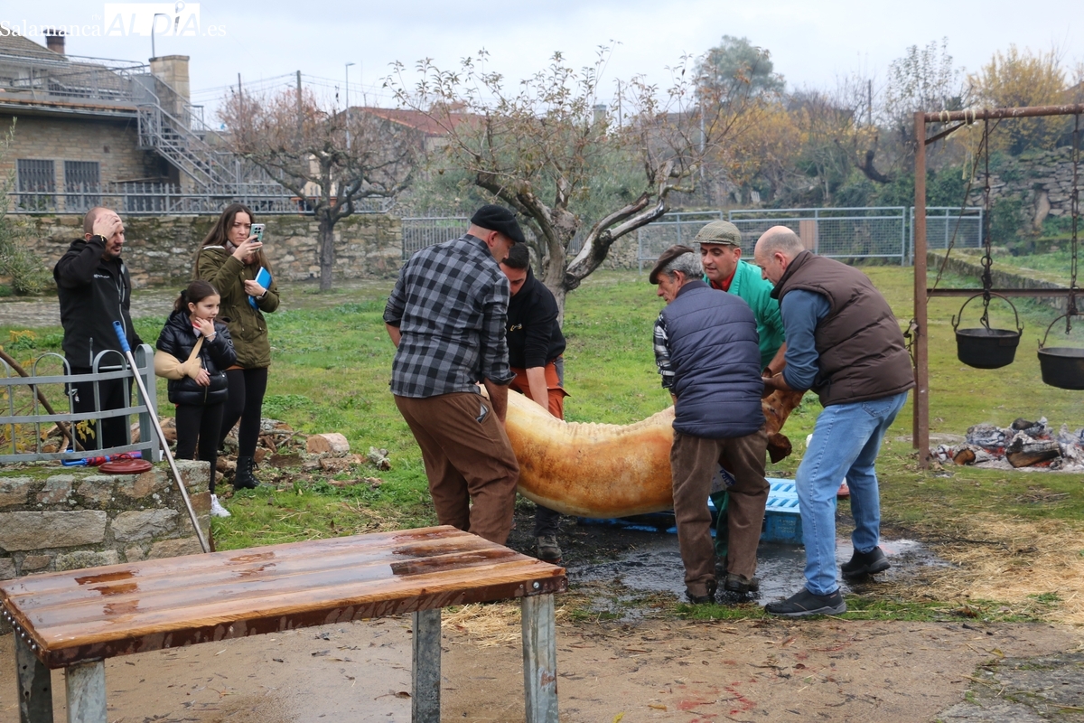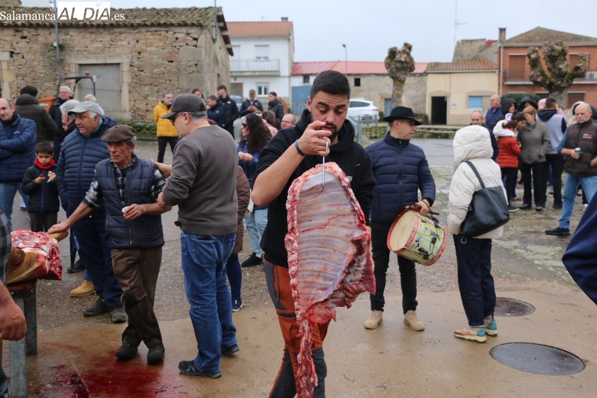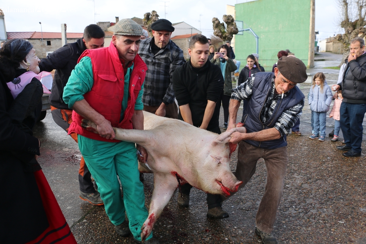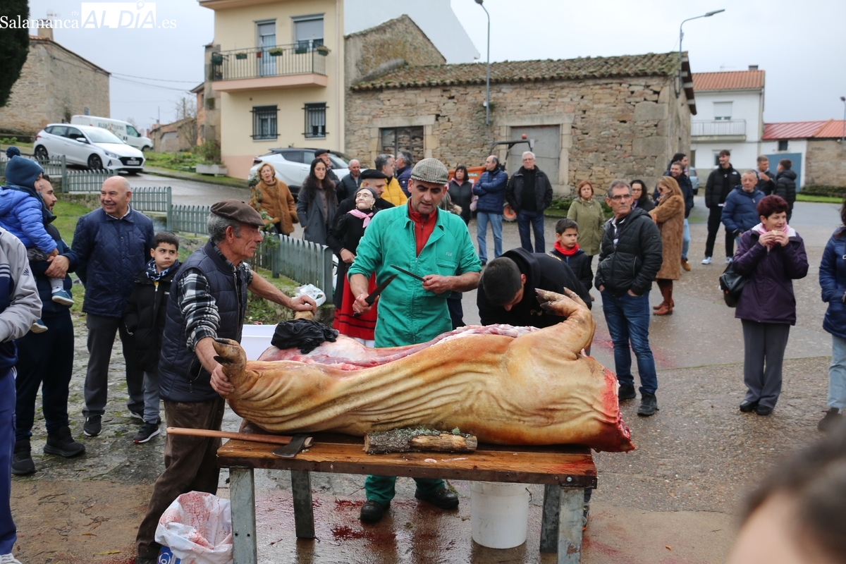 Incluida en el circuito de matanzas de la Diputación de Salamanca, la jornada se centró en el sacrificio y despiece del cerdo, combinando el rito matancero con actividades de folclore, teatro y una comida popular para todos los vecinos