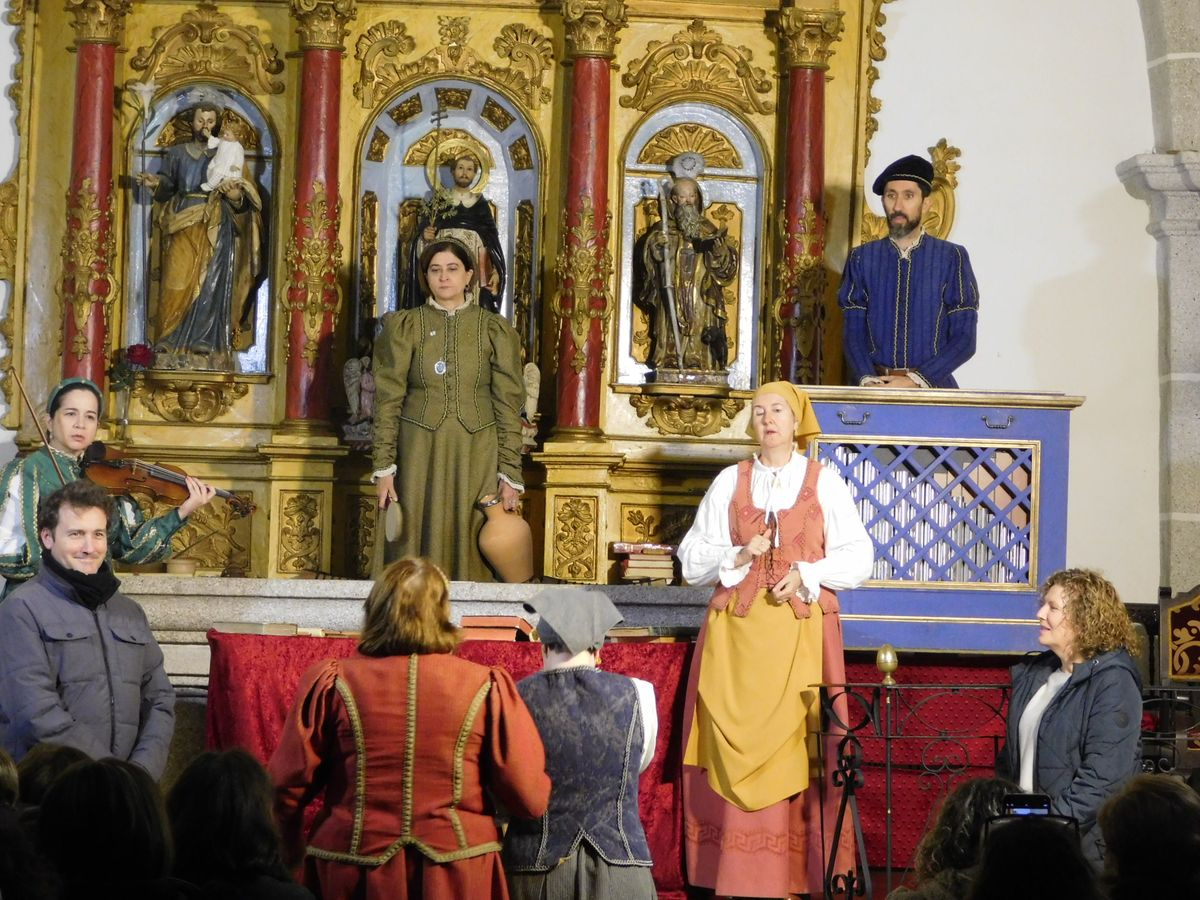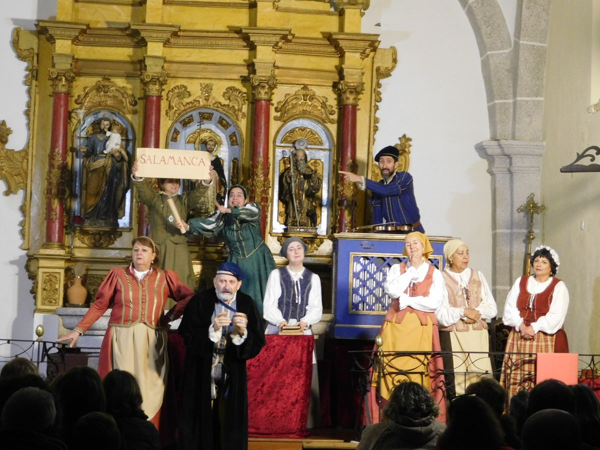 Gracias a la complicidad entre el Área de Cultura de la Diputación, el Ayuntamiento y el párroco del lugar, el Día de la Constitución tuvo Peromingo teatro en su iglesia, y presenció no solo una obra que ha recorrido casi cada pueblo de la provincia Salmantina, además de otros lugares de 6 comunidades autónomas, sino que, siendo la función 298 de 'Buscando a Nebrija', también era la antepenúltima que realiza el grupo Lazarillo de Tormes pues, faltando el domingo 7 en Sanchotello y el lunes 8 en Navasfrías, finalizan las representaciones de esta obra de Denis Rafter, y eso es algo que, con orgullo, cierta nostalgia anticipada y mucha emoción contenida, dejaron ver las actrices, actores y músicos en el escenario, porque de eso va la actuación, de vivir el teatro en carne propia, y hoy, los habitantes de Peromingo, fueron testigos de ello y, con la emoción contagiada, despidieron a los artistas con una sonora y larga ovación.