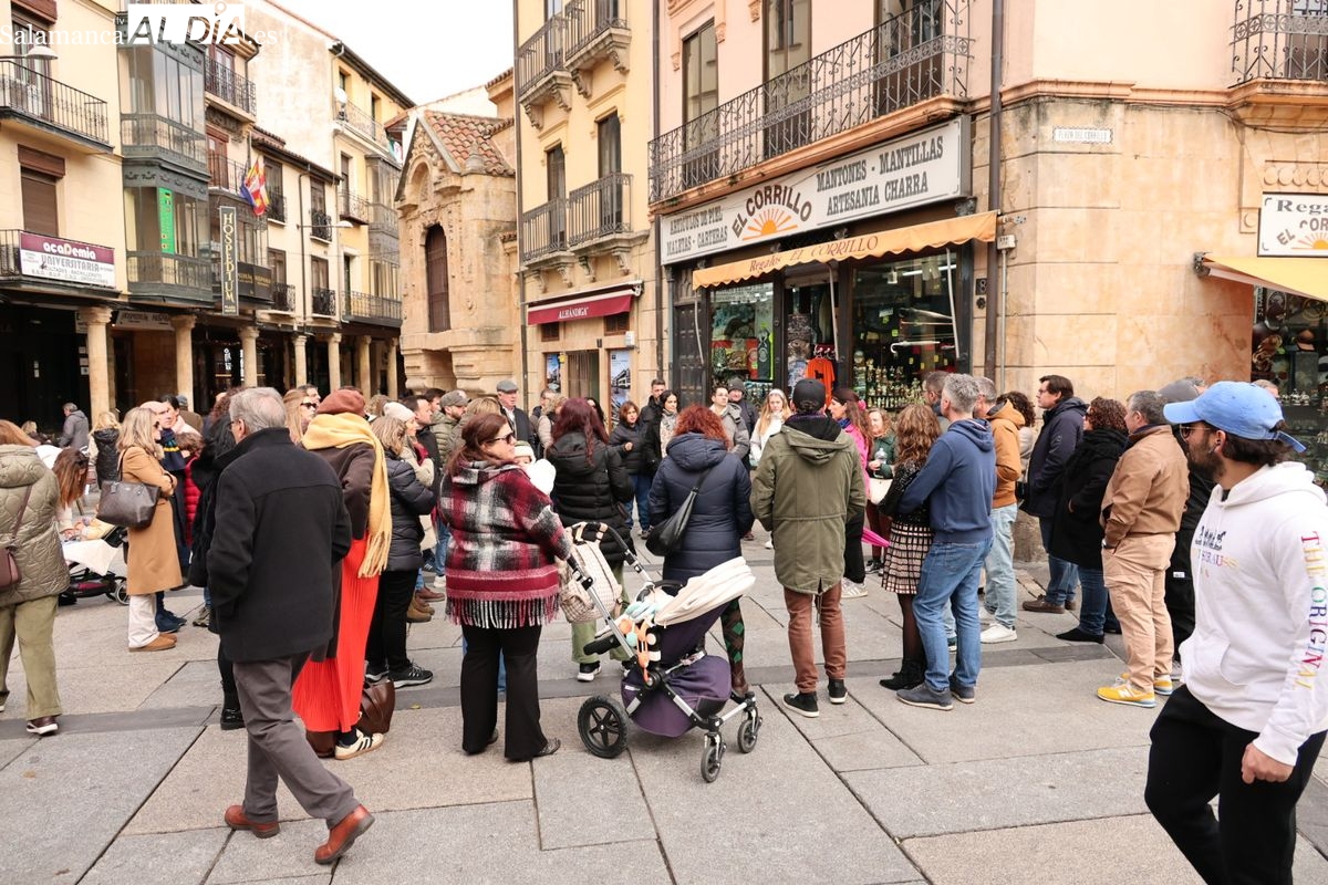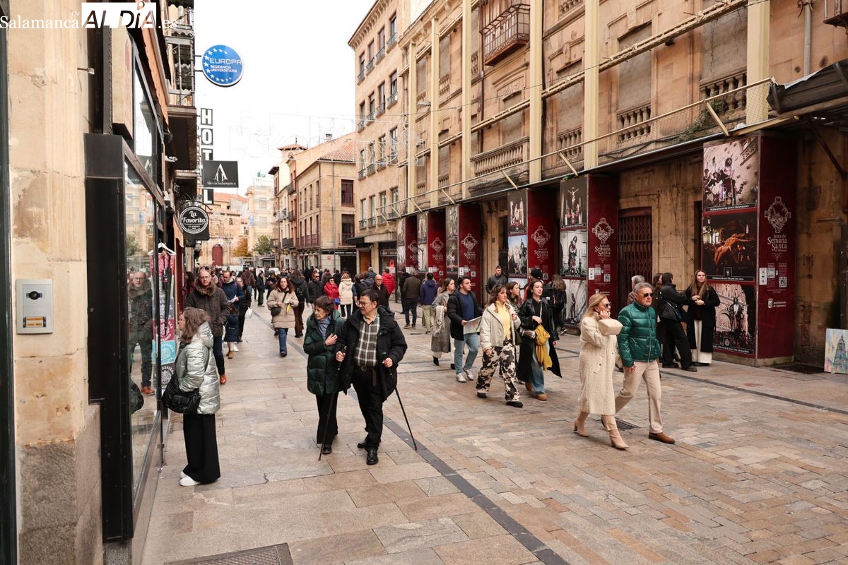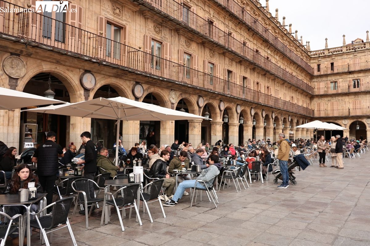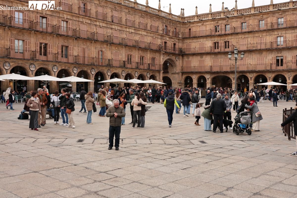 A la llegada de visitantes se suma la presencia de numerosos vecinos de Salamanca. Los salmantinos han aprovechado el día festivo para salir al centro, realizar compras o disfrutar de la gastronomía local o simplemente pasear, contribuyendo a la sensación de lleno que se respira en la zona histórica.