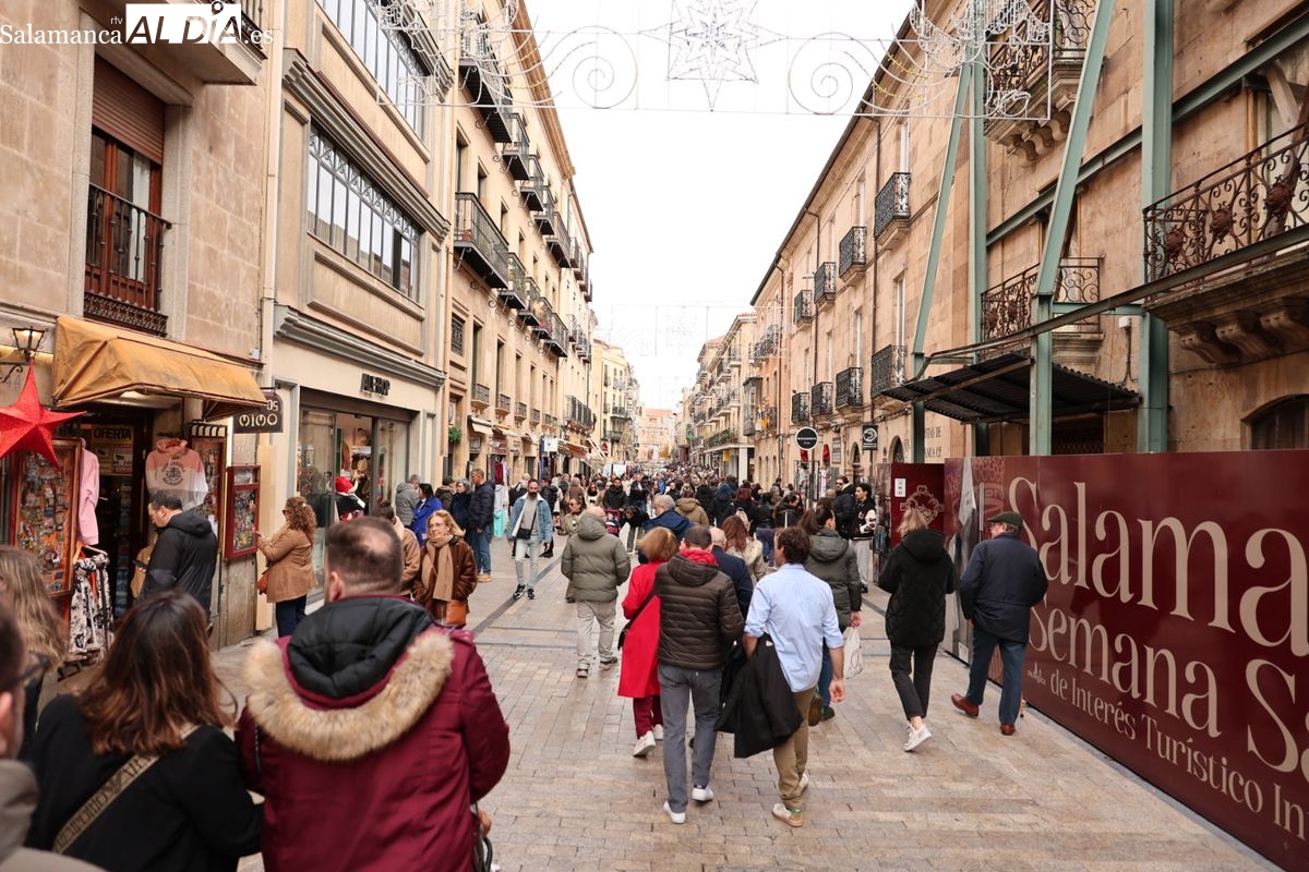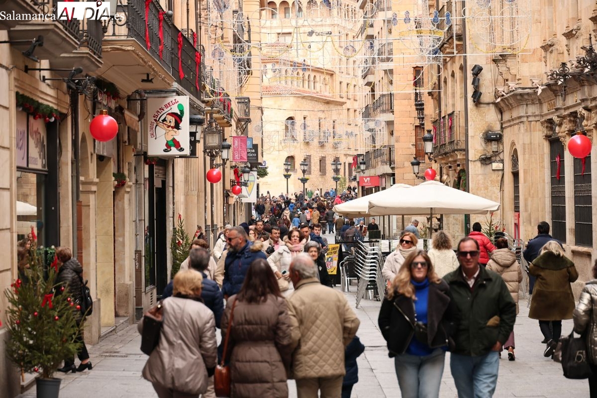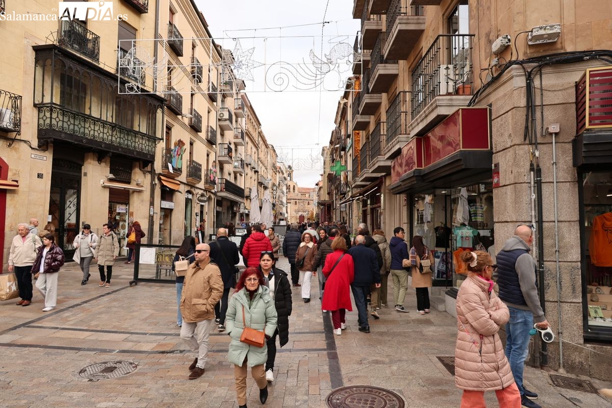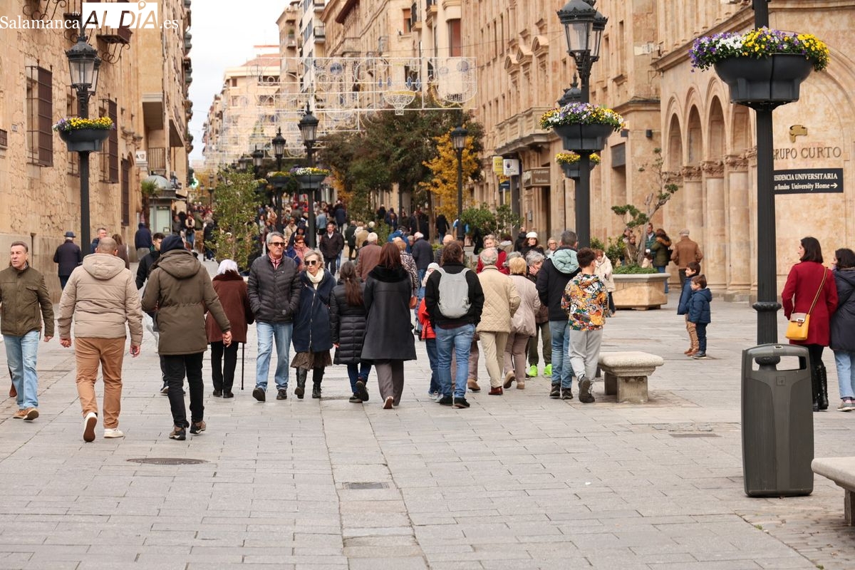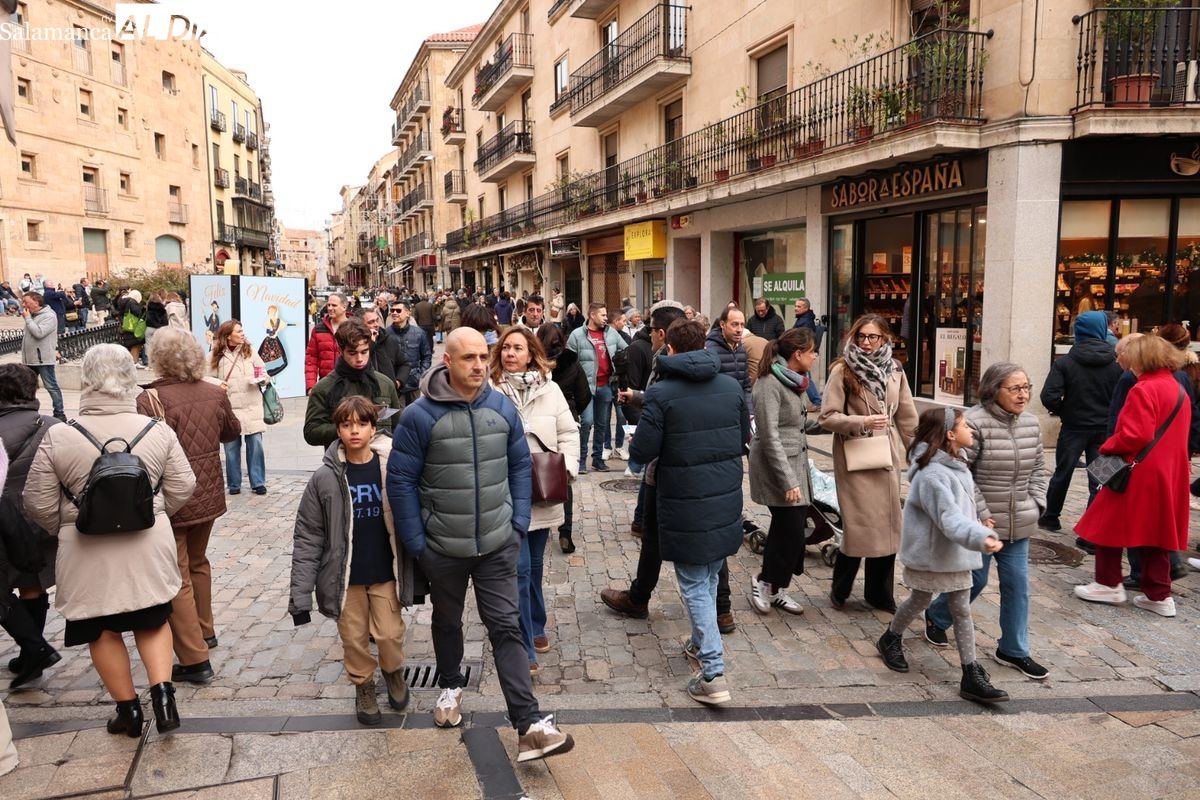 La capital del Tormes vive este domingo, 7 de diciembre, una de las jornadas con mayor afluencia de público. El centro de Salamanca presenta una imagen de calles abarrotadas y un ambiente multitudinario, fruto de la coincidencia de tres días festivos consecutivos que han convertido a la ciudad en un destino preferente para el turismo de interior.