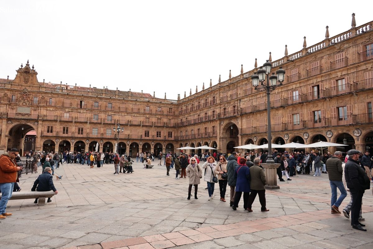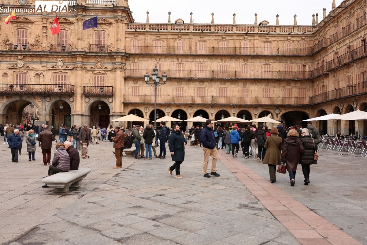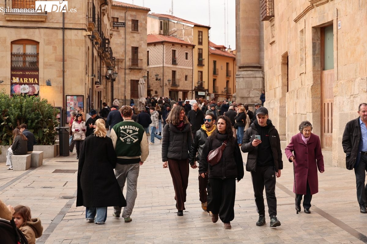 Turistas y salmantinos abarrotan este domingo las calles y los hoteles han alcanzado una alta ocupación, en un día frío pero sin precipitaciones