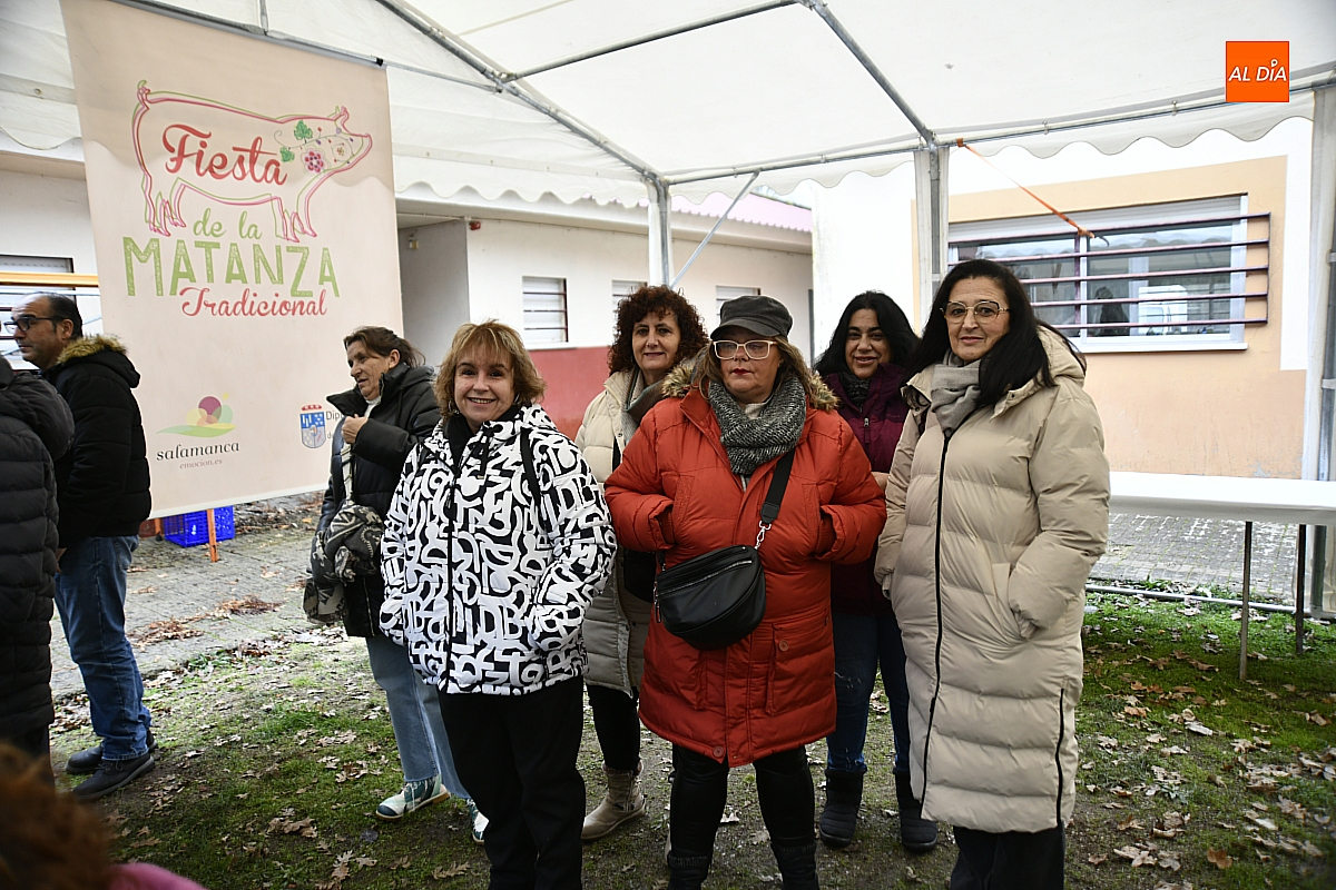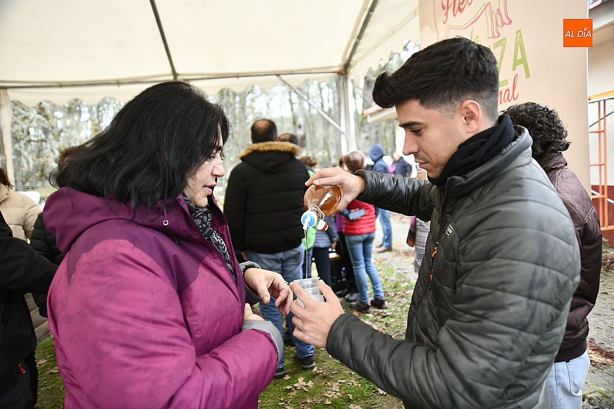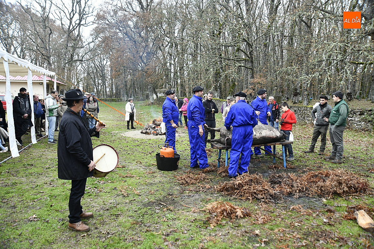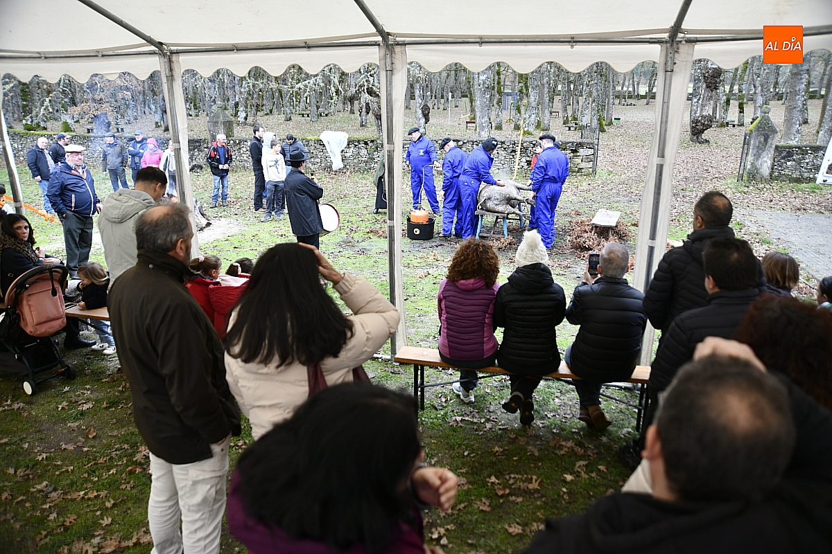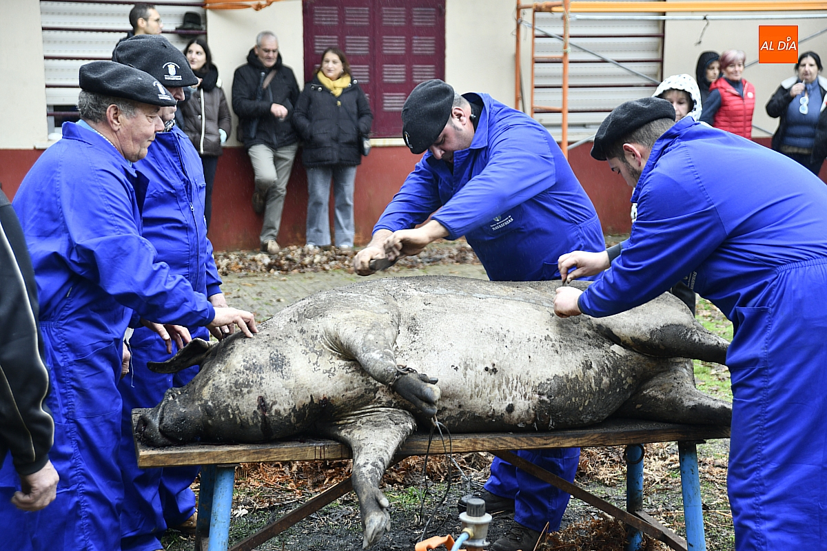 A pesar de la ligera lluvia que durante la mañana cayó sobre todo El Rebollar, vecinos, oriundos y visitantes portugueses fueron acercándose al recinto, donde la música de gaita y tamboril, junto con licores y aguardientes de la zona, animó el ambiente. El Matancero de Honor, Agapito Mateos, y los expertos Juan Miguel, Jorge, Rubén y Paco avanzaron las labores entre la atenta mirada de numerosos niños, que en ocasiones se animaron a colaborar.