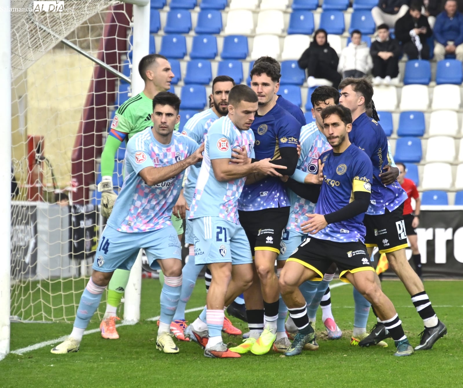 Los salmantinos se han puesto con un 0-2 en contra antes de la media hora de juego, pero Olmedo y Gastón, que ha terminado expulsado, han igualado