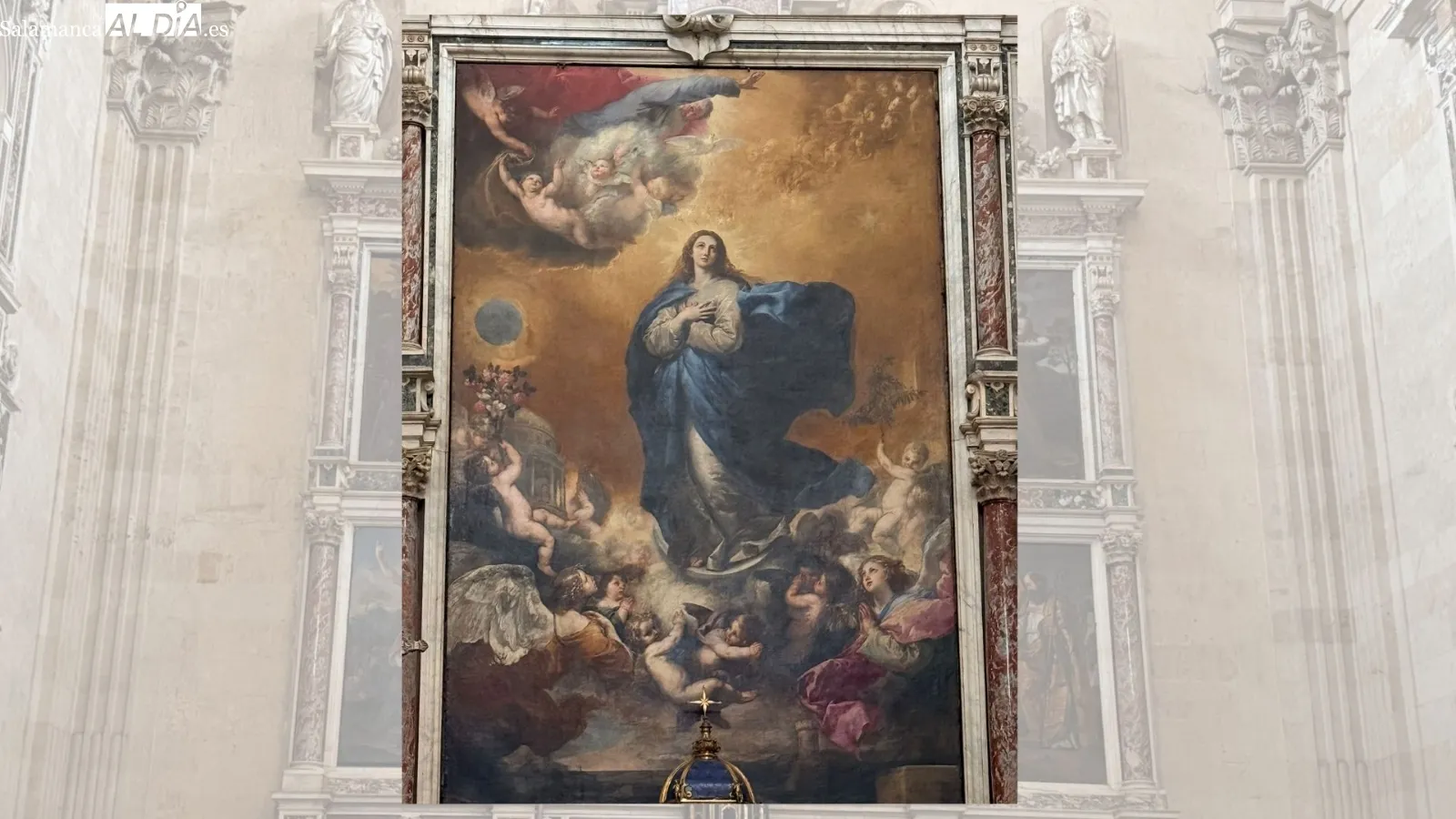 En el vasto catálogo artístico de la Diócesis de Salamanca, una obra brilla con luz propia —literal y figuradamente— en el altar mayor de la iglesia de La Purísima. Se trata de la "Inmaculada Concepción", pintada por José de Ribera en 1635. Según explica el responsable del Servicio Diocesano de Patrimonio, Tomás Jesús Gil, estamos ante "una de las obras más emblemáticas y de primera calidad" que atesora la ciudad, fruto del mecenazgo de don Gaspar de Zúñiga y Fonseca, conde de Monterrey y virrey de Nápoles.