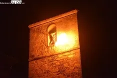 El acto central de la noche volvió a ser la quema de los capachos, esteras de esparto que antiguamente se utilizaban para prensar la pasta de aceituna tras su molturado. Y es que esta costumbre convierte el campanario de la iglesia en un escenario único.
