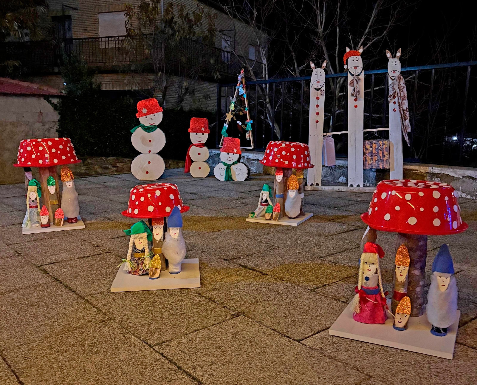 Las calles de La Atalaya lucen desde este fin de semana adornos navideños que los vecinos han elaborado con materiales reciclados. El trabajo manual ha servido para confraternizar entre paisanos y a la vez crear un ambiente navideño en el casco urbano, que luce especialmente en la noche con su iluminación.