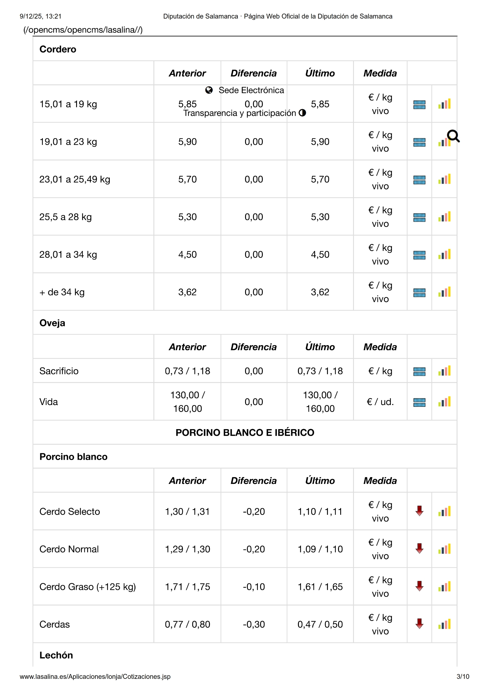 Acuerdos insólitos a 15 días de la Navidad en la lonja de Salamanca. En la sesión de este martes, aplazada por la festividad de la Inmaculada ayer lunes, se acordaba la repetición de precios para lechazos y corderos, además de la bajada de los tostones y resto de categorías de porcino blanco. El vacuno sigue poniendo récord a los precios, tanto en cebo como en sacrificio, y el cereal mantiene la tendencia a la baja de las cotizaciones.