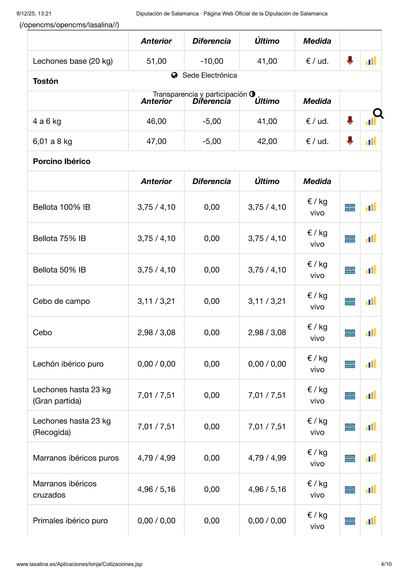 En la Mesa de Porcino blanco los tostones bajan -5,00 €/ud., por lo que el precio oscila entre los 41 y 42 euros dependiendo del tamaño. Los lechones bajan -10,00 €/ud. y se ponen a precio de tostón (41 €/ud.). Por otro lado, las cerdas bajan -0,30 €/kg, -0,20 €/kg el cerdo normal y y el selecto y -0,10 el graso. En ibérico también bajan los tostones más pequeños -5,00 €/ud., para quedarse entre los 30 y 32 €/ud. los de entre 5 y 8 kg.