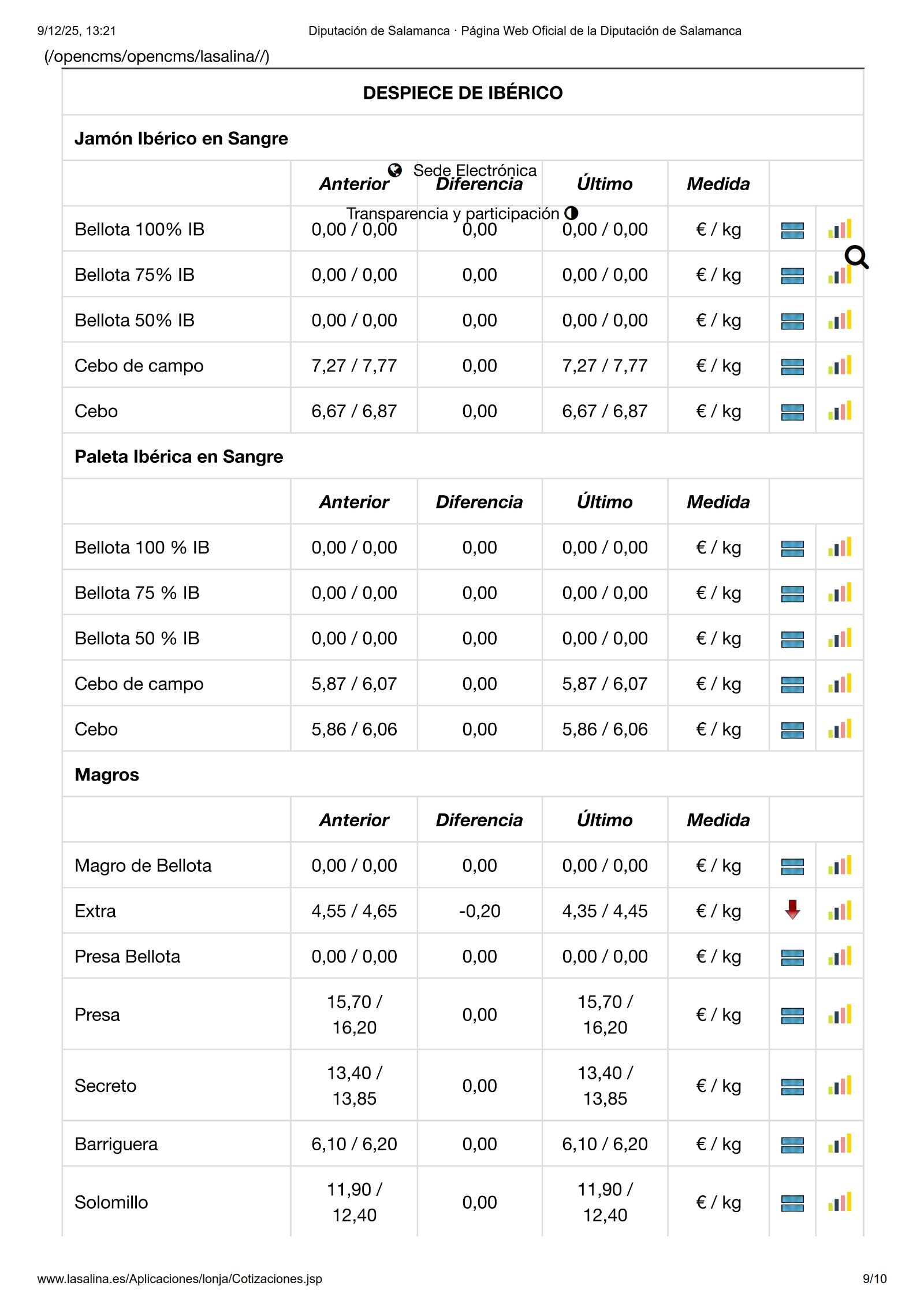 En la Mesa de Despiece de Ibérico solo se mueve el magro extra, que baja -020 €/kg.