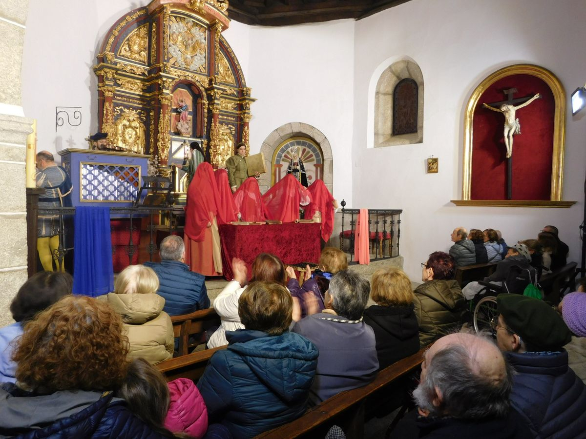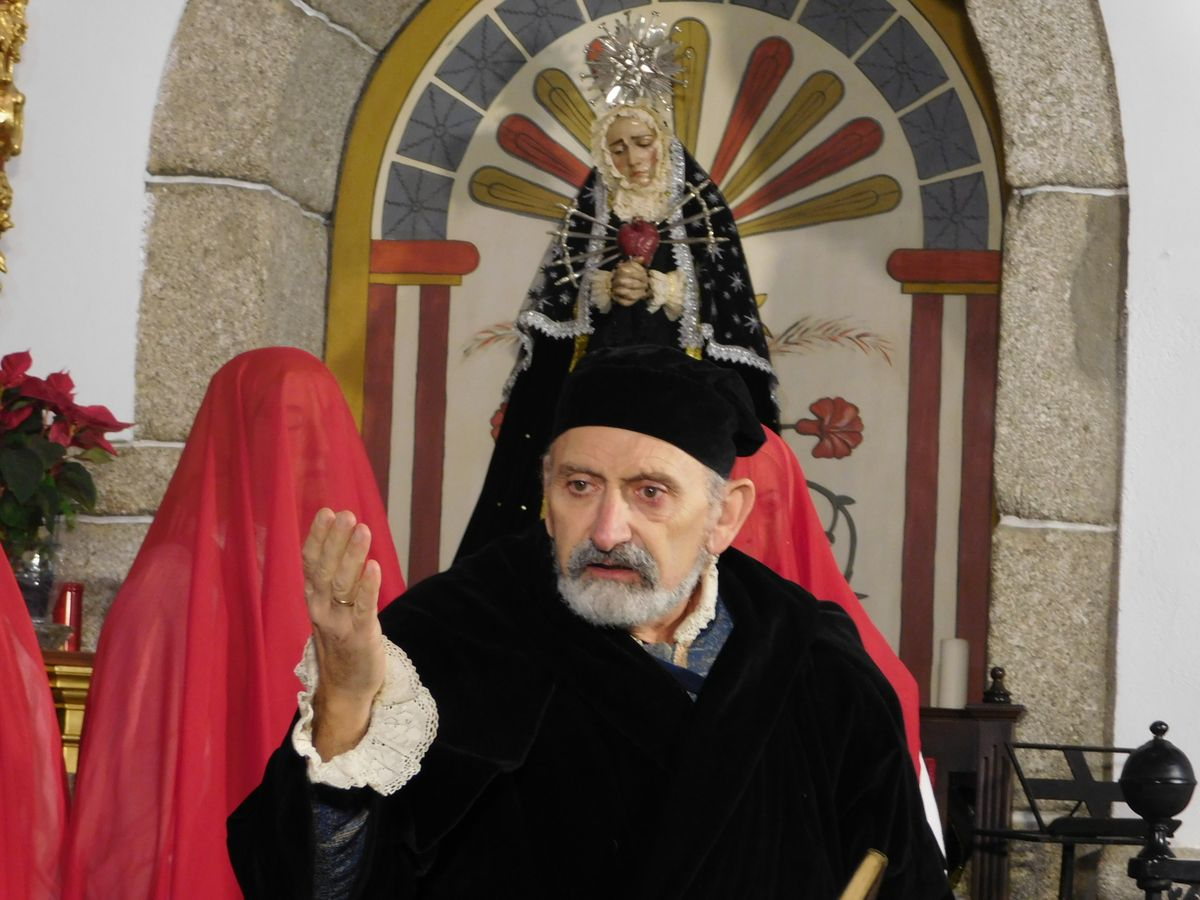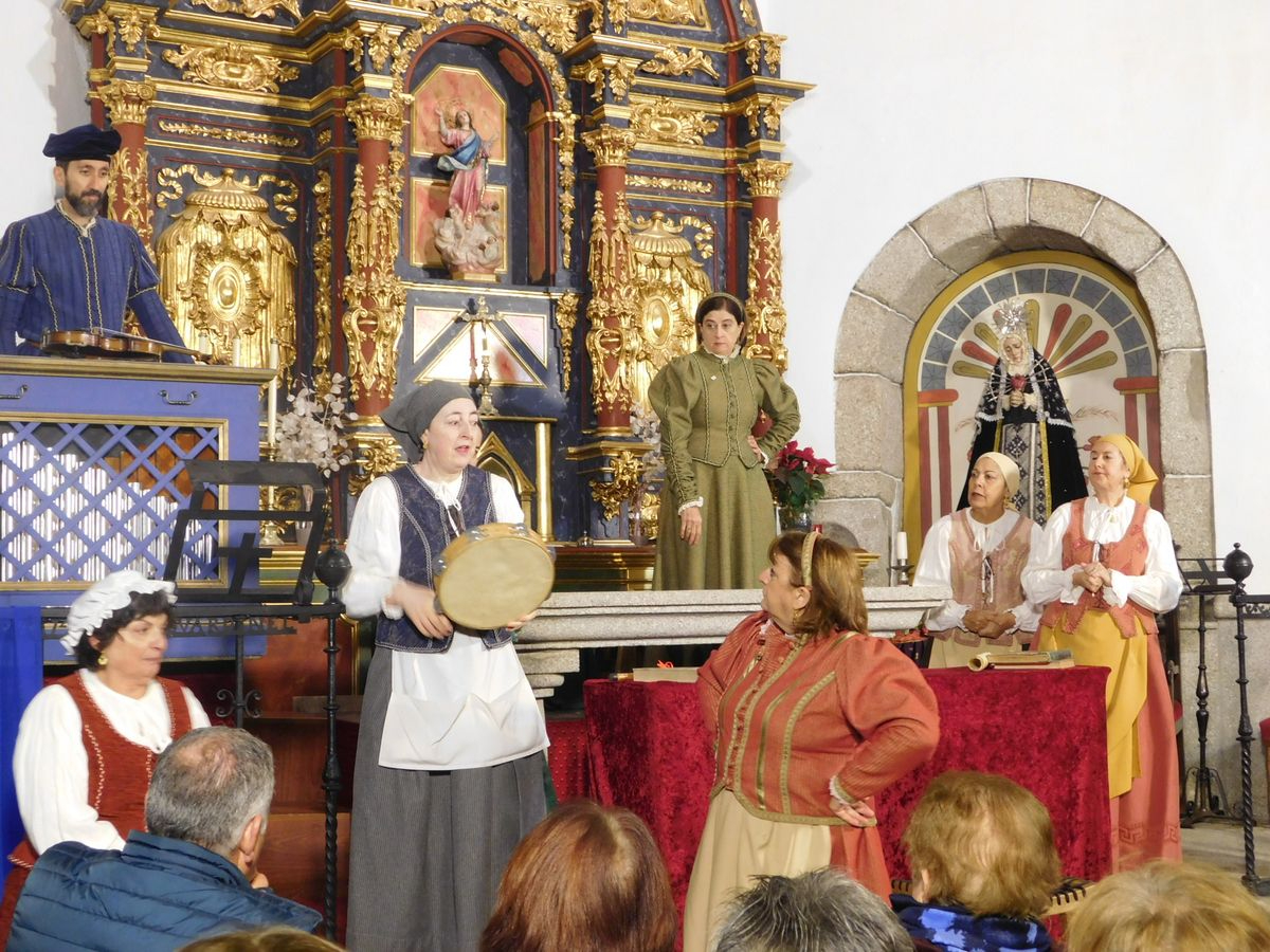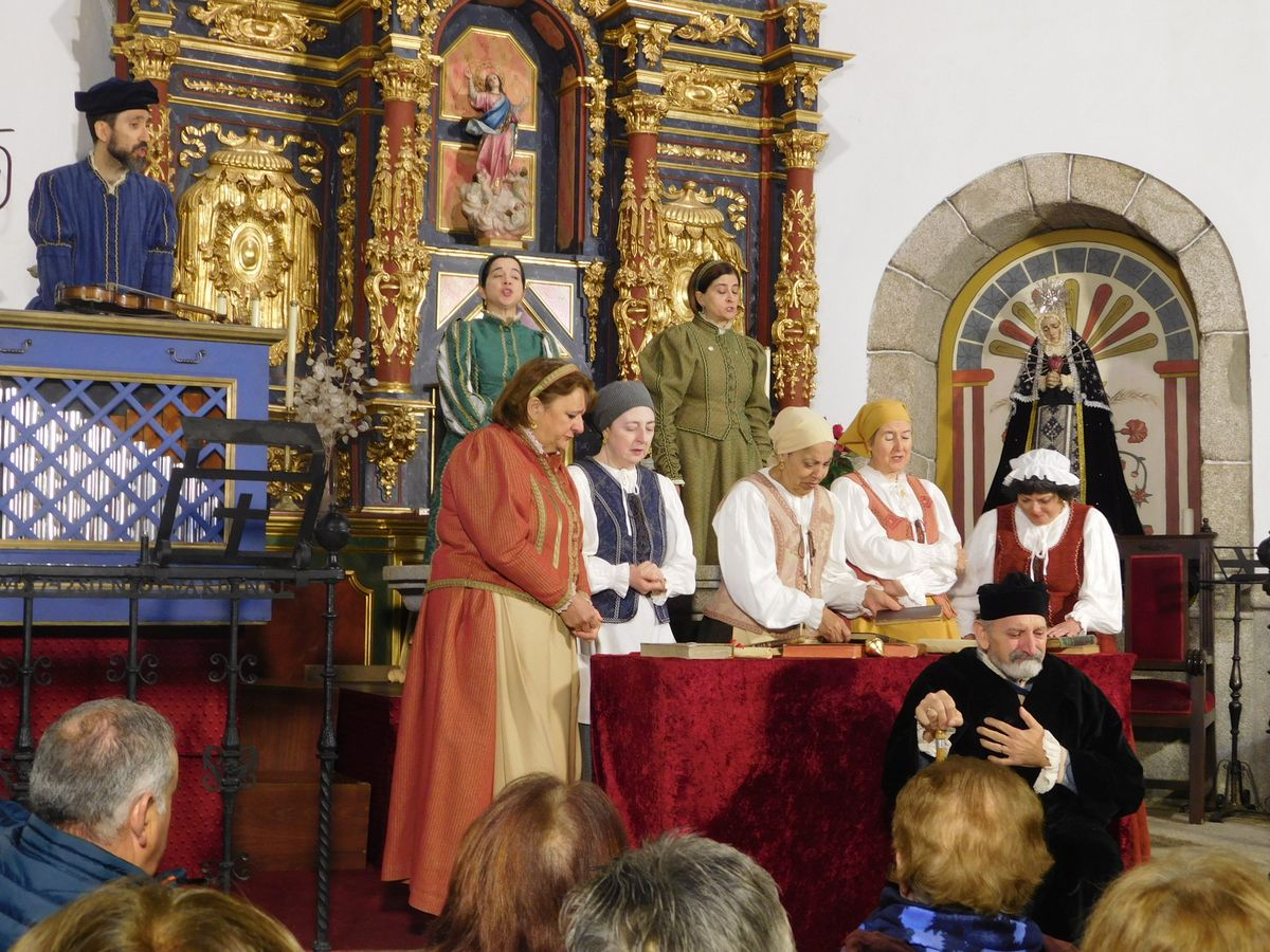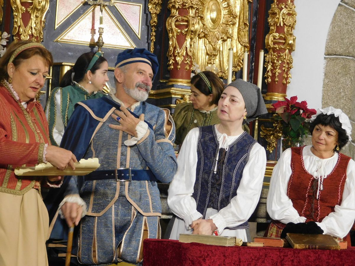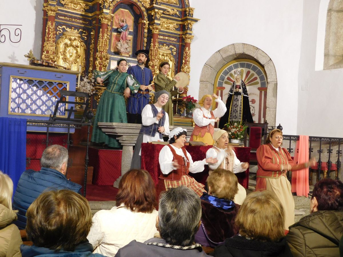 La iglesia de Nuestra Señora de la Asunción abrió sus puertas para que los vecinos de Sanchotello disfrutaran de una tarde inolvidable y es que, en su penúltima representación, la 299, el elenco del grupo “Lazarillo de Tormes” puso todo su arte en escena para demostrarle a un público entregado que, lejos de decaer, la ilusión por representar su montaje “Buscando a Nebrija” seguía intacta, como si de la primera actuación se tratara.