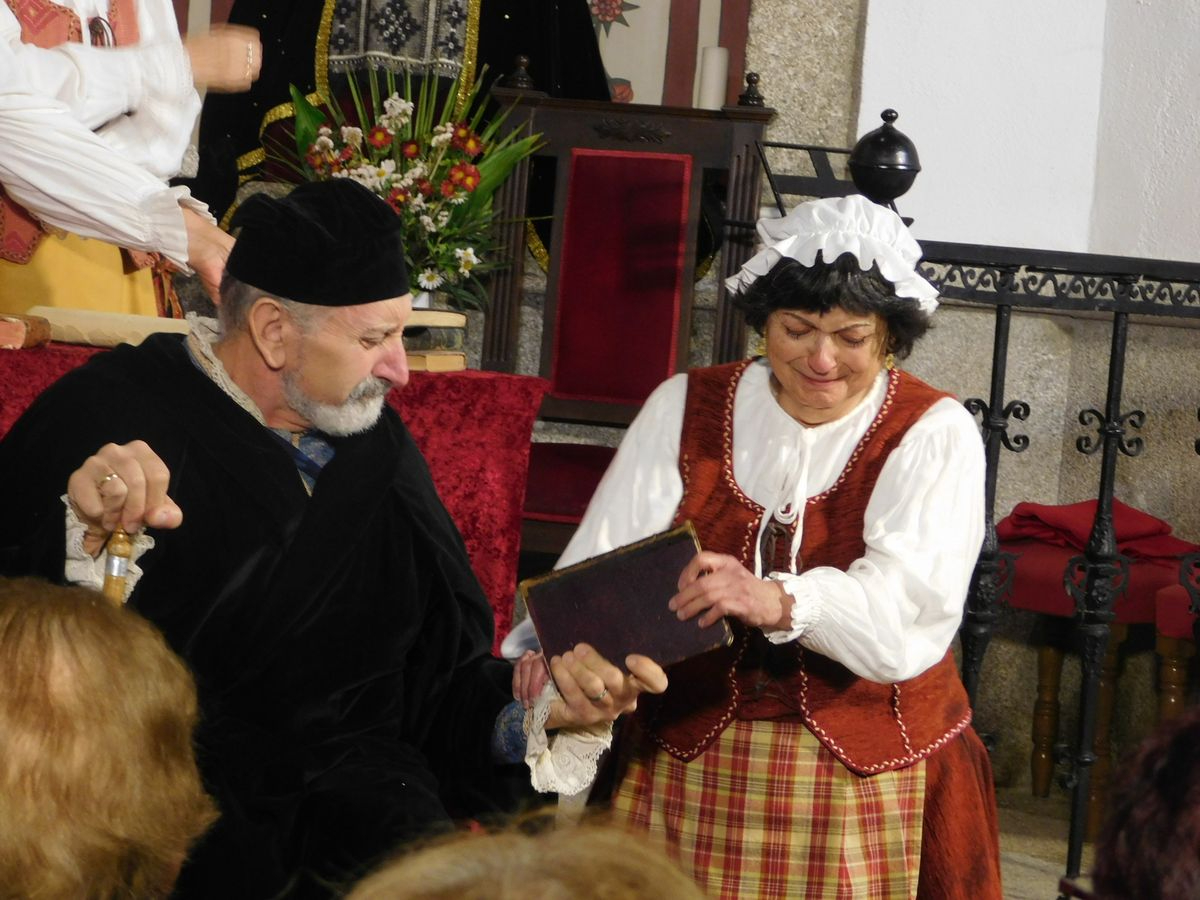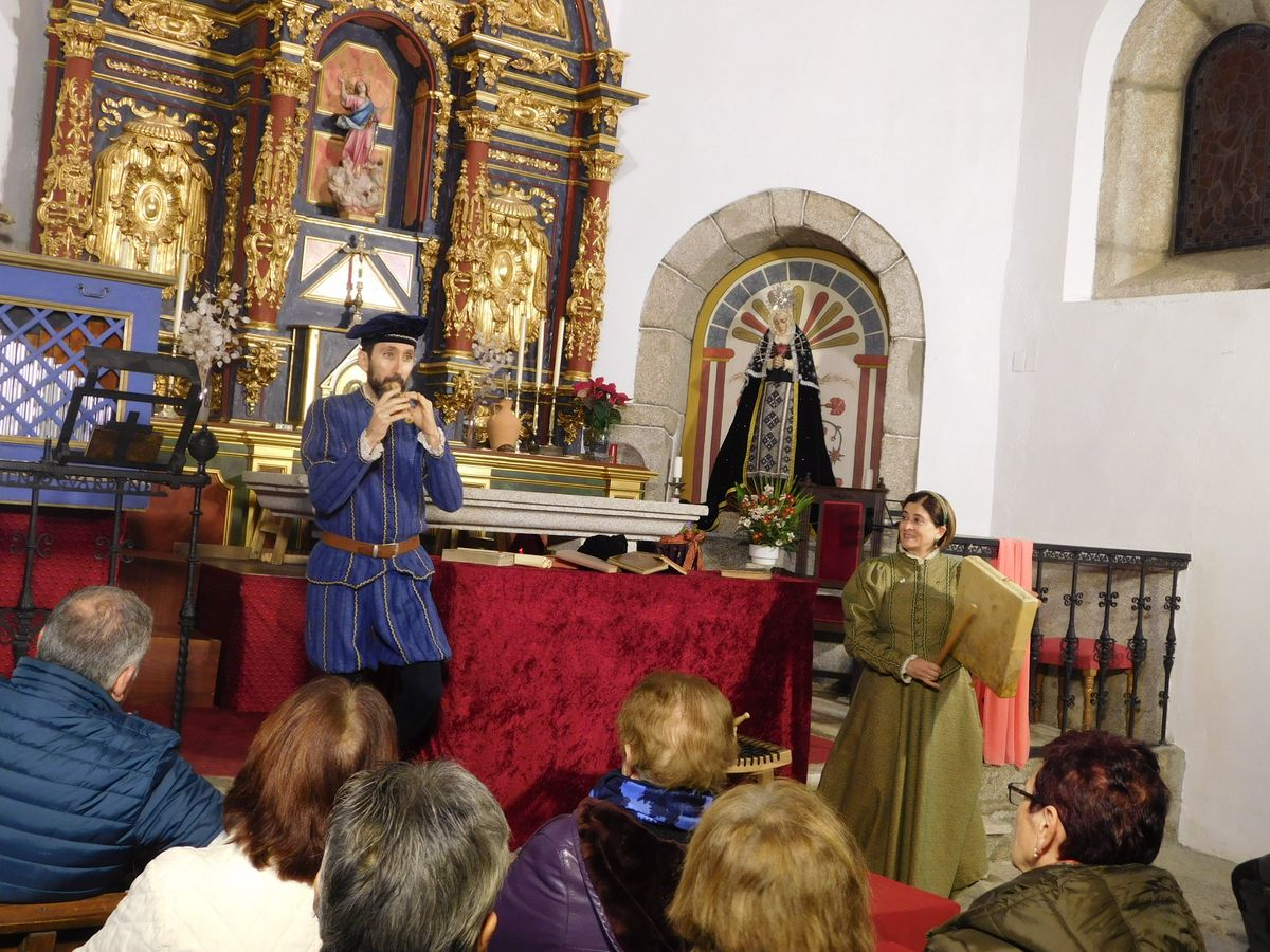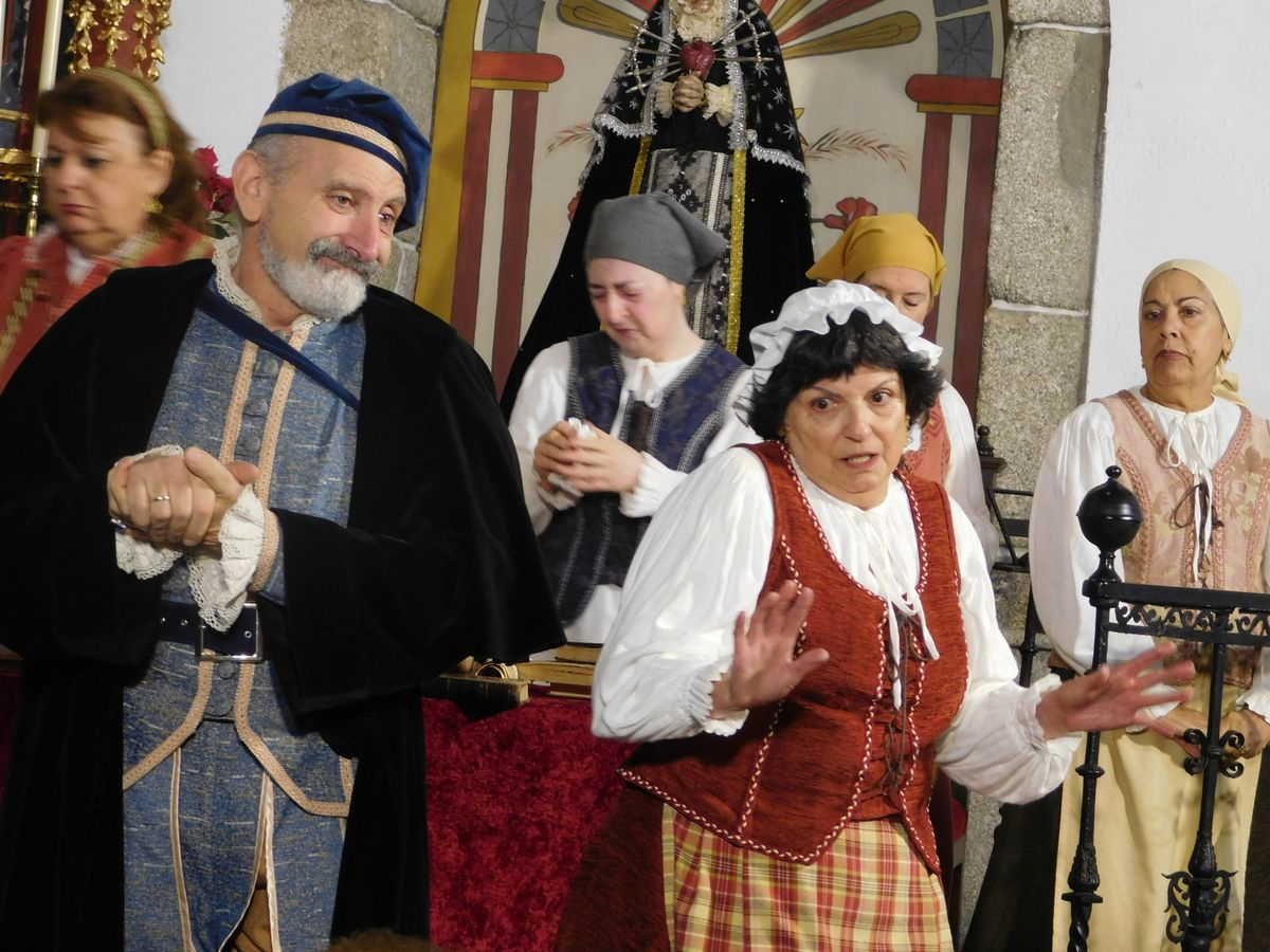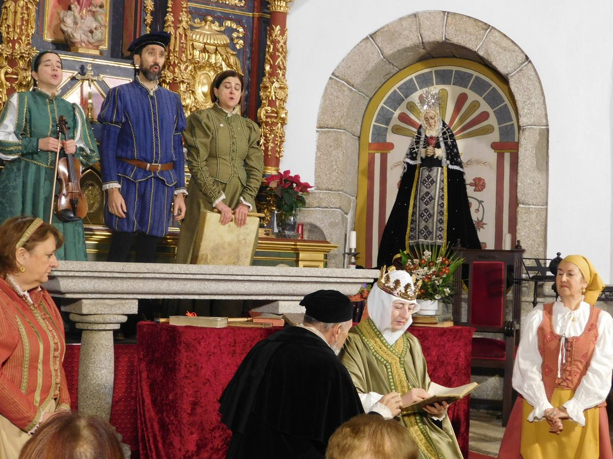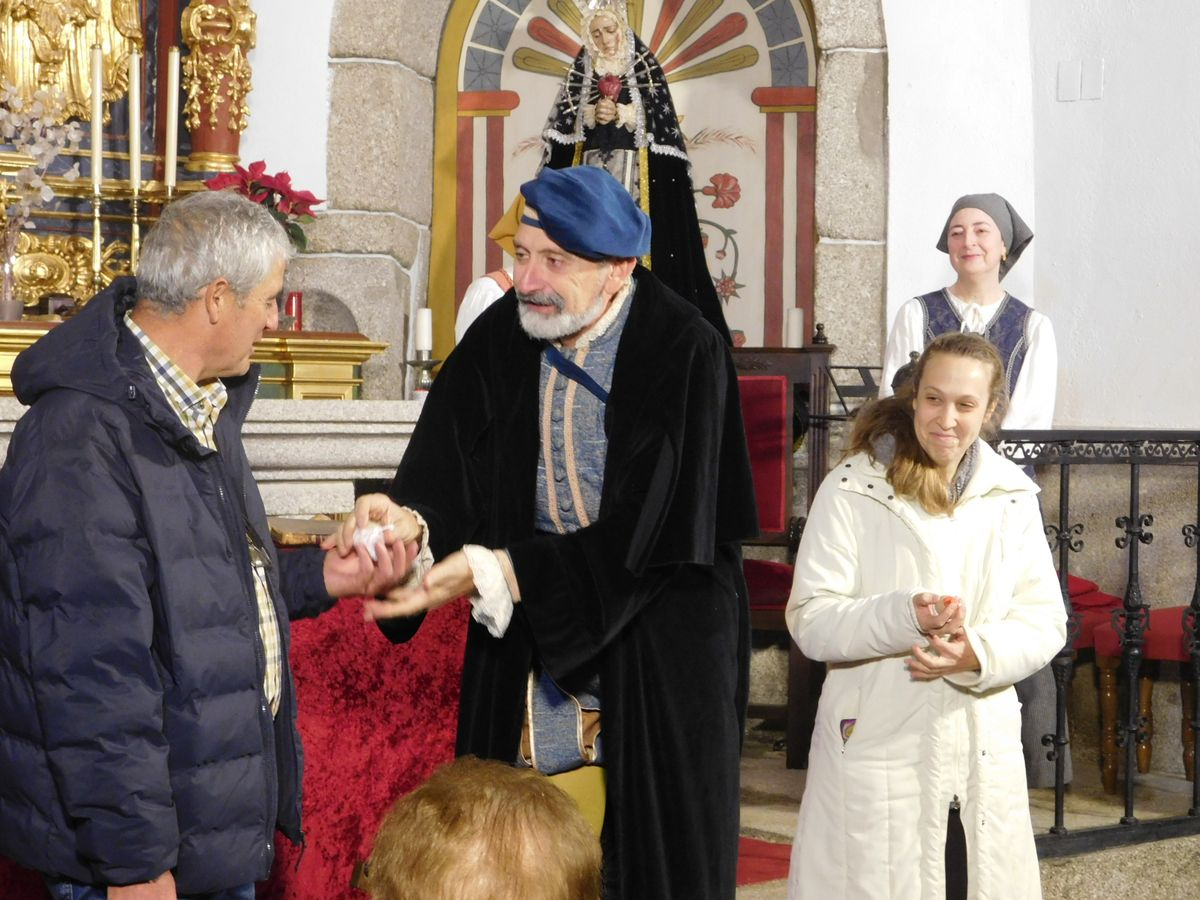 La iglesia de Nuestra Señora de la Asunción abrió sus puertas para que los vecinos de Sanchotello disfrutaran de una tarde inolvidable y es que, en su penúltima representación, la 299, el elenco del grupo “Lazarillo de Tormes” puso todo su arte en escena para demostrarle a un público entregado que, lejos de decaer, la ilusión por representar su montaje “Buscando a Nebrija” seguía intacta, como si de la primera actuación se tratara.