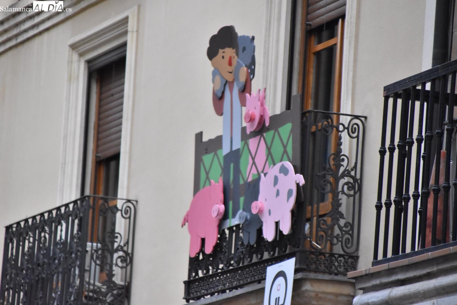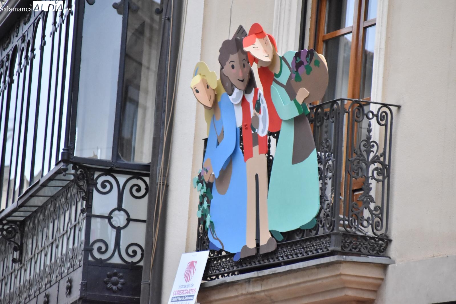 La iniciativa no solo mira hacia la ciudad, sino que también rinde homenaje a la riqueza de la provincia. En varios balcones se pueden leer leyendas que hacen referencia a las denominaciones de origen más representativas, como Guijuelo, Arribes o Sierra de Salamanca, un guiño que ha sido posible gracias al apoyo de la Diputación Provincial y de empresas y particulares de la zona.