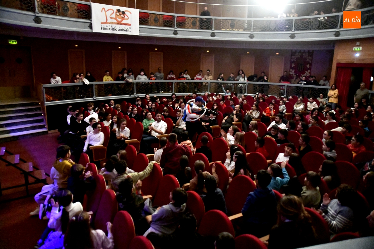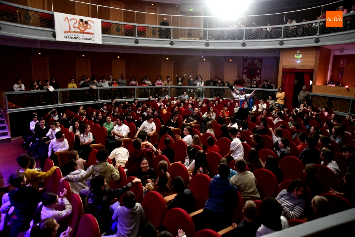 El Teatro Nuevo Fernando Arrabal de Ciudad Rodrigo ha abierto sus puertas este miércoles, 10 de diciembre, para recibir a un público muy especial. Dentro de los actos conmemorativos de su 125 aniversario, el espacio escénico ha acogido a los estudiantes de los centros rurales agrupados (CRA) de la comarca para una jornada que ha combinado las artes escénicas con el aprendizaje didáctico.