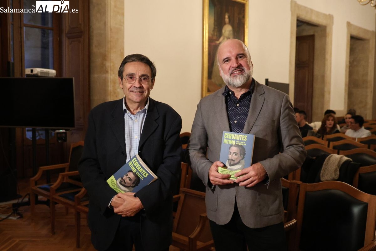 Bajo el título del conversatorio, los ponentes han abordado la necesidad de acercarse a un Cervantes alejado de la idealización histórica. La obra 'Cervantes íntimo' propone precisamente ese viaje hacia la privacidad del autor, explorando sus silencios, sus contradicciones y sus vivencias personales más allá de su producción literaria, un enfoque que esta tarde ha sido el eje central del debate en la universidad salmantina.