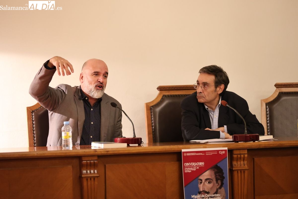 La Facultad de Filología de la Universidad de Salamanca ha acogido esta tarde un encuentro literario y cinematográfico de primer nivel centrado en la figura del autor del Quijote. El Aula Magna del centro académico ha sido el escenario del conversatorio titulado 'Miguel de Cervantes: el hombre al desnudo', una cita que ha servido para profundizar en los aspectos menos explorados de la biografía del escritor complutense.